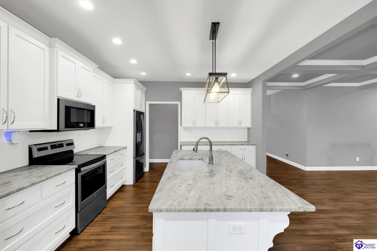 Realtor's notes: Welcome home to this beautiful 4 bedroom, 3 full bath residence in the highly desirable Hardwood Forest subdivision, where space, comfort, and thoughtful upgrades come together seamlessly. A short distance to Waverly Park, the home offers easy access to walking trails, fishing areas, and a nearby dog run, creating a rare blend of privacy and outdoor living. With nearly 3,000 square feet of finished space and a full walkout basement, this ranch provides room to spread out while maintaining a warm, inviting feel. The spacious kitchen features granite countertops and stainless steel appliances, and all bathrooms have been fully updated with modern finishes. The spacious primary suite and laundry are conveniently located on the main floor for everyday ease. The walkout basement includes a bar and living area, making it ideal for relaxing or entertaining with friends and family, along with approximately 700 square feet of additional storage and a concrete storm shelter. Outside, enjoy the covered deck and aluminum fenced in back yard. Truly move in ready, this home offers comfort, quality, and confidence from day one.