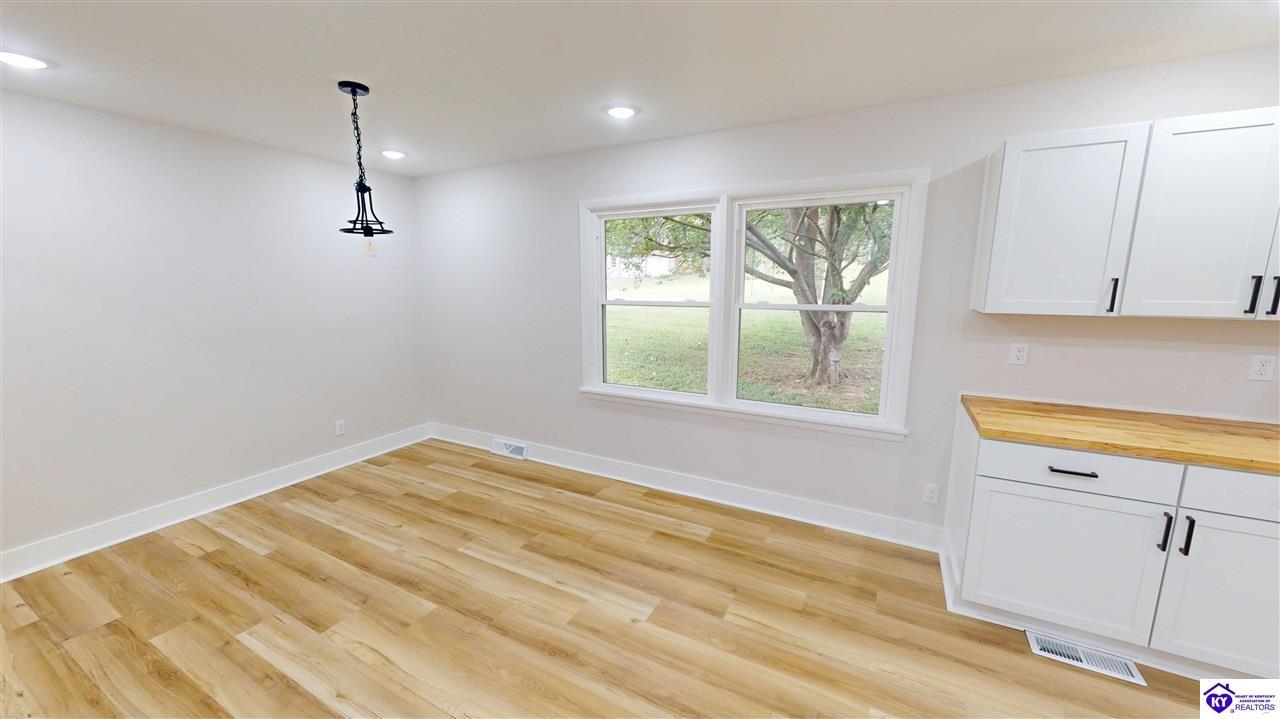 Realtor's notes: Welcome to this beautifully updated 4-bedroom, 3-bathroom brick ranch home offering modern style, flexible living space, and major recent improvements, including all new windows, a new roof, and a new A/C unit, not to mention new doors, floors, light fixtures with LED lighting, plumbing fixtures, and so much more! This move-in-ready home combines classic construction with today’s most desired upgrades. The main level features three bedrooms and two full bathrooms, with bright natural light highlighting the updated luxury vinyl plank and fresh finishes throughout. The primary suite includes a private bath with tiled flooring, a walk-in tiled shower, and sleek glass doors. The remodeled kitchen showcases white cabinetry paired with butcher block countertops, creating a warm and functional space for daily living and entertaining. The finished basement provides excellent versatility for multi-generational living, guests, or extended family. It includes a fourth bedroom, a full bathroom, a cozy fireplace, and a convenient kitchenette, along with a utility room offering laundry hookups and abundant storage. Outdoor living is equally inviting with a spacious backyard ideal for relaxing or hosting gatherings. A deck off the detached garage leads directly to a rear patio, creating a seamless outdoor entertaining area. The property also features a two-car carport for additional covered parking. With its updated interior, flexible floor plan, and major system upgrades, this home is an excellent option for buyers searching for homes for sale with finished basement, updated brick ranch homes, and move-in ready properties. Schedule your private showing today and be sure to take the virtual tour.
