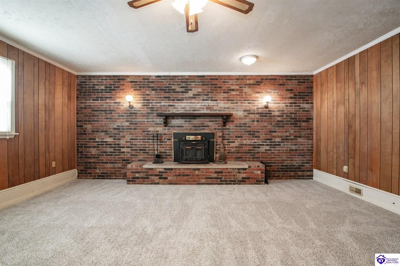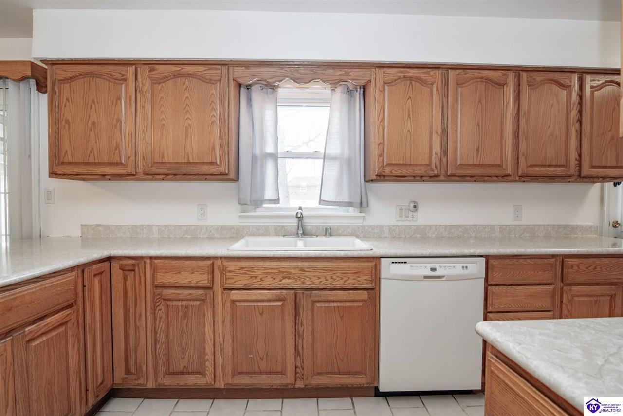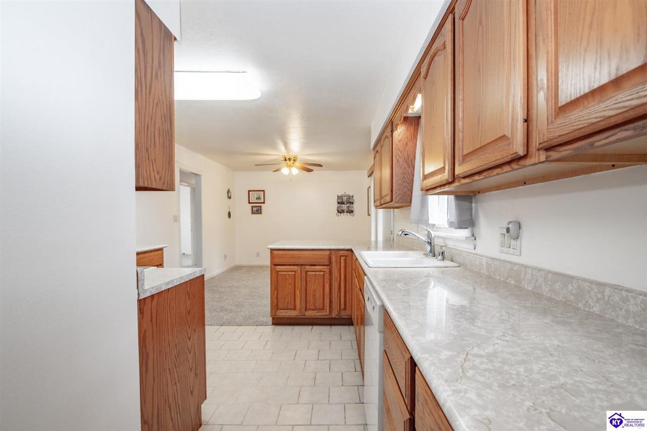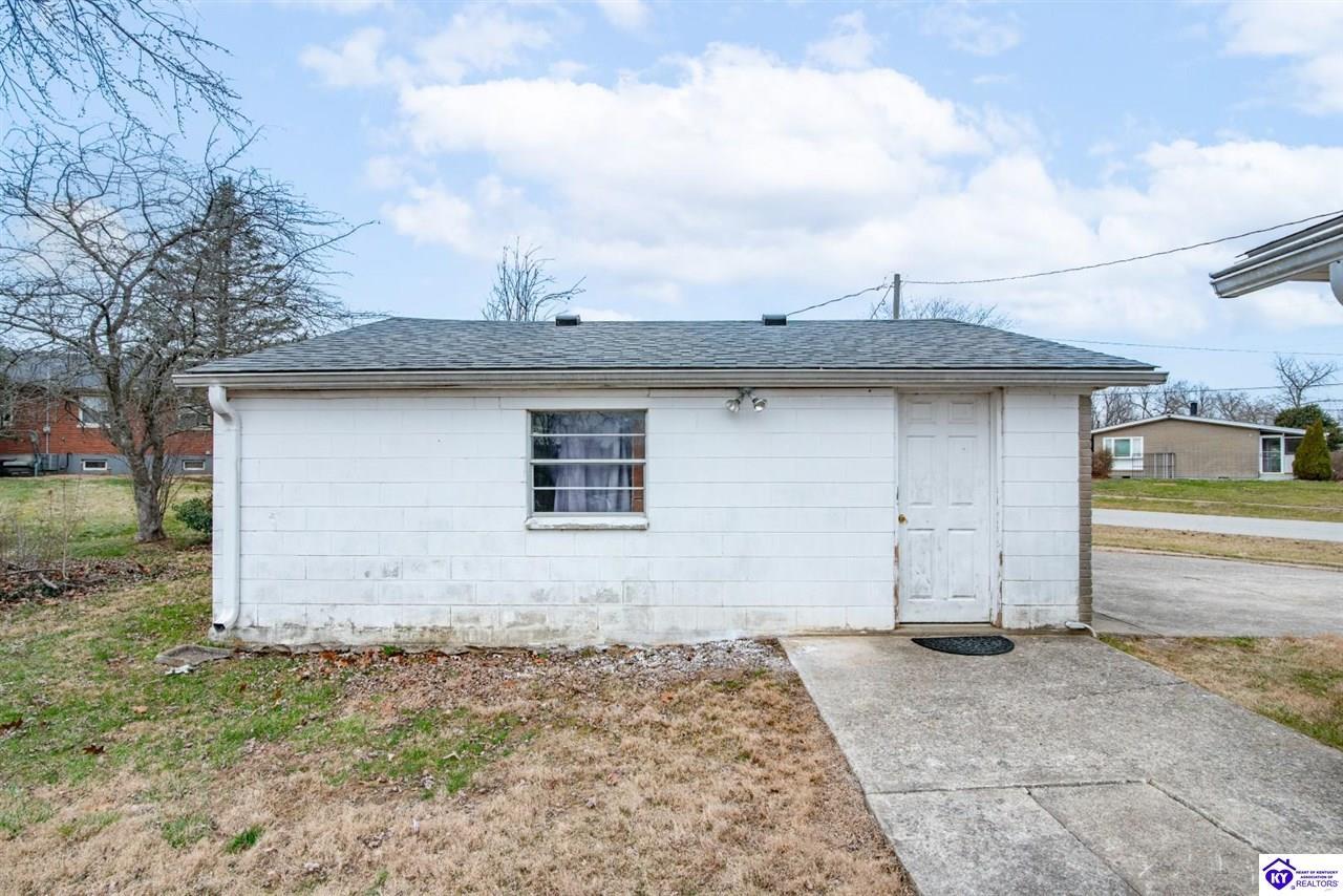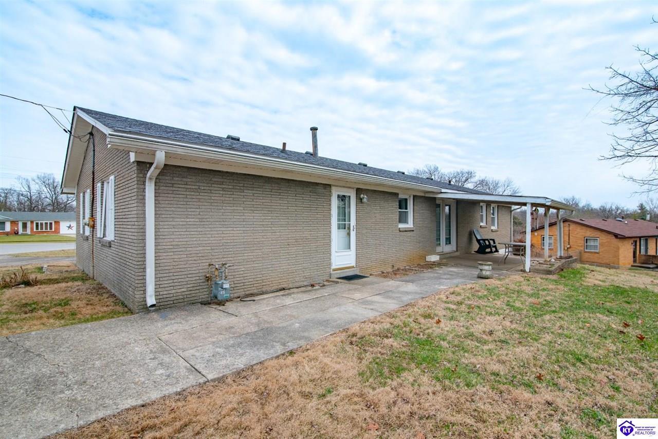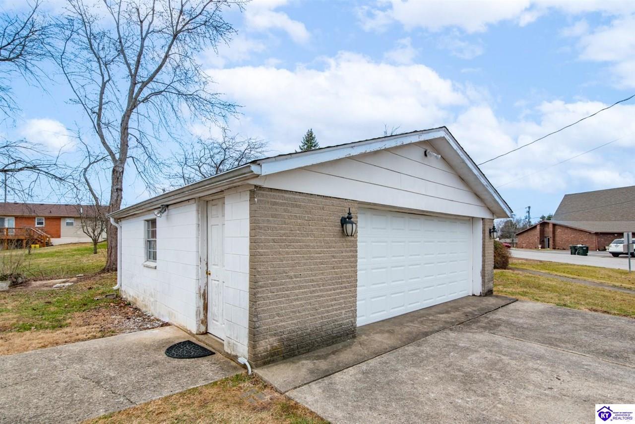 Realtor's notes: Welcome home to this spacious 3 bedroom, 2 bath sprawling ranch perfectly situated on a desirable corner lot! Offering 1,620 square feet of comfortable living space, this home features a huge family room highlighted by a cozy fireplace — the perfect place to relax or gather with friends and family. You’ll love the brand new carpet and fresh paint throughout, giving the home a clean, move-in-ready feel. The spacious eat-in kitchen provides plenty of room for cooking and casual dining, making everyday living both easy and enjoyable. Step outside to a nice backyard complete with a covered patio — ideal for entertaining, grilling, or simply unwinding at the end of the day. A 2-car detached garage adds convenience and extra storage space. Location truly sets this home apart! Just minutes from Fort Knox, Elizabethtown, and Louisville, you’ll enjoy quick access to work, shopping, dining, and entertainment while still having the comfort of a well-established neighborhood. With its generous size, updates, and fantastic location, this home is priced to sell and offers exceptional value. Don’t miss your opportunity to make it yours!