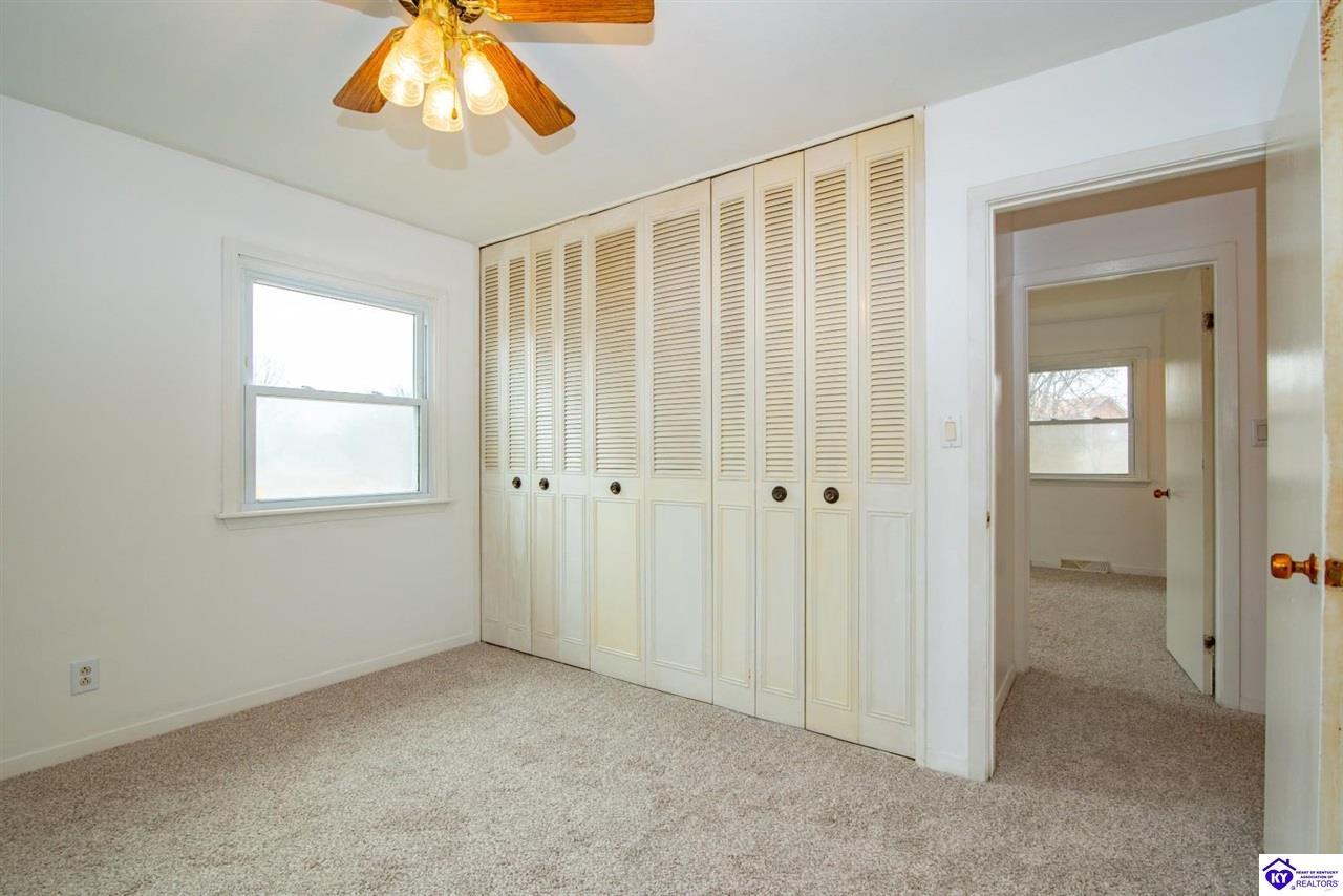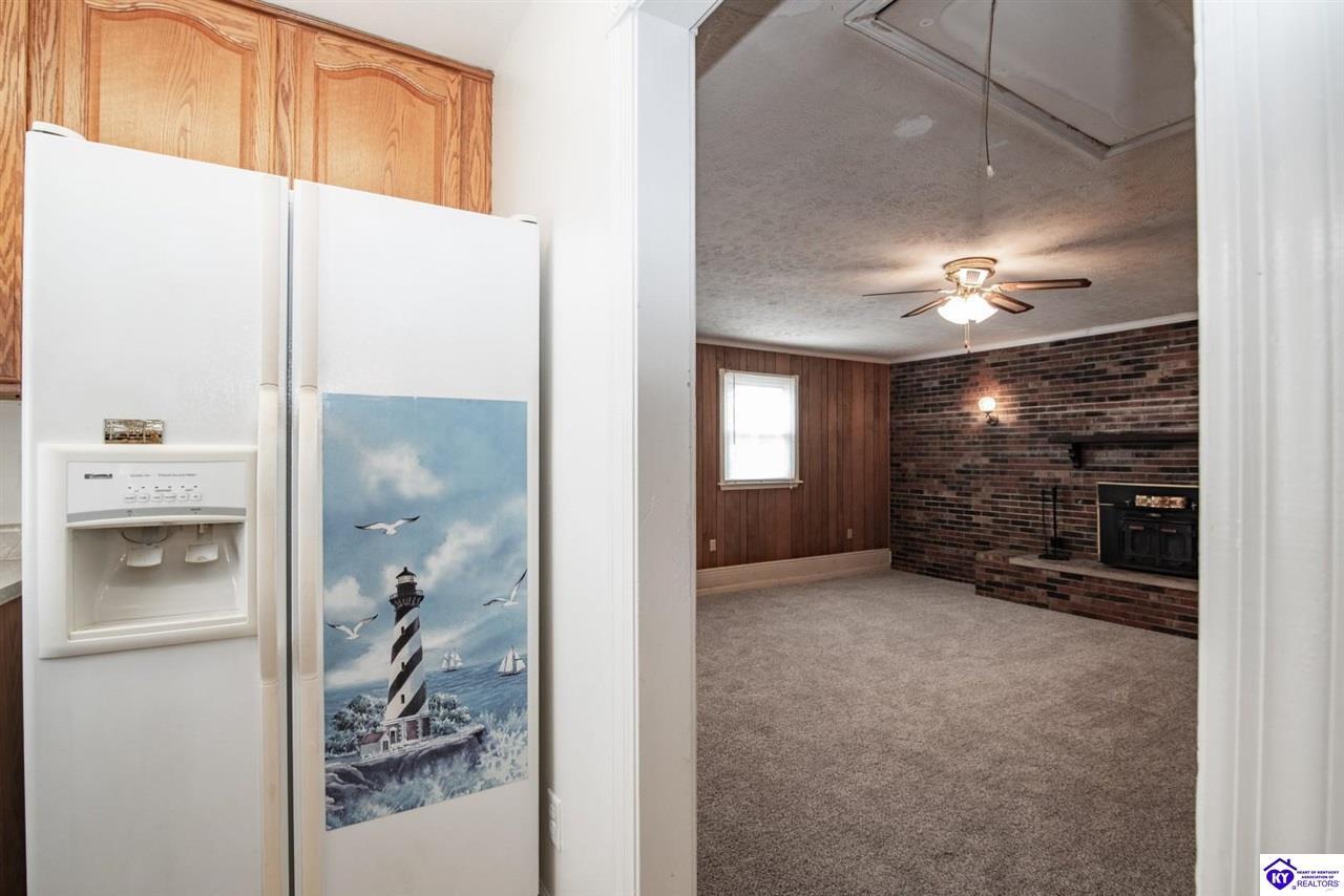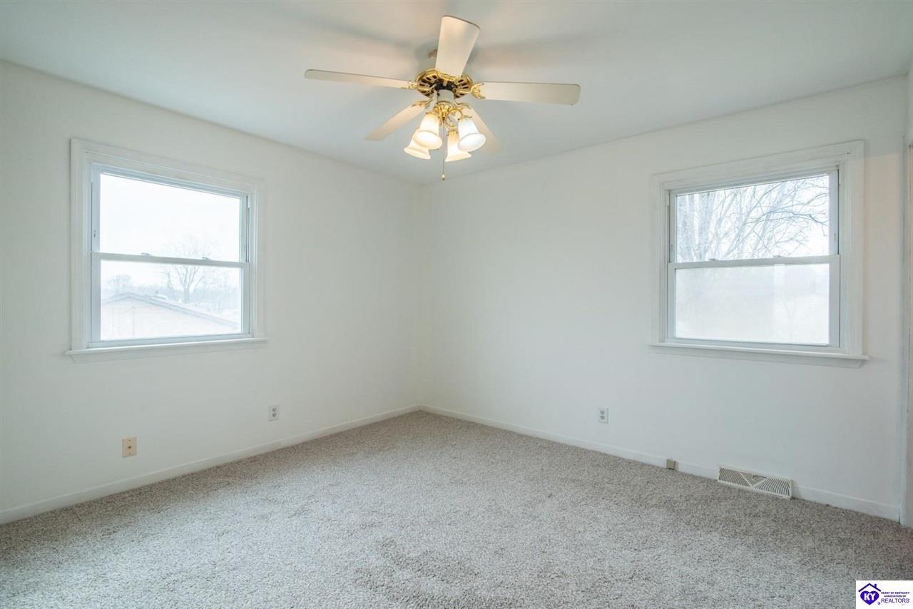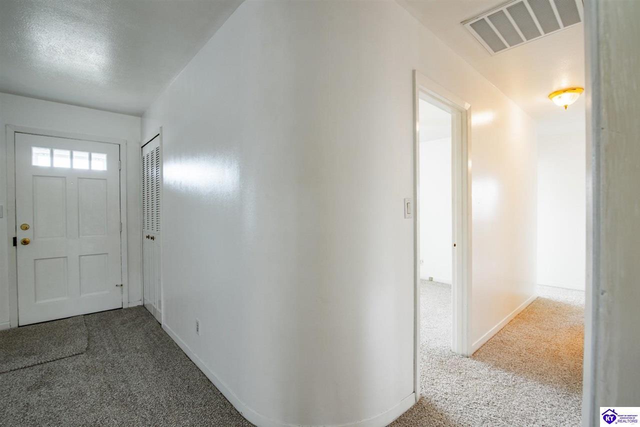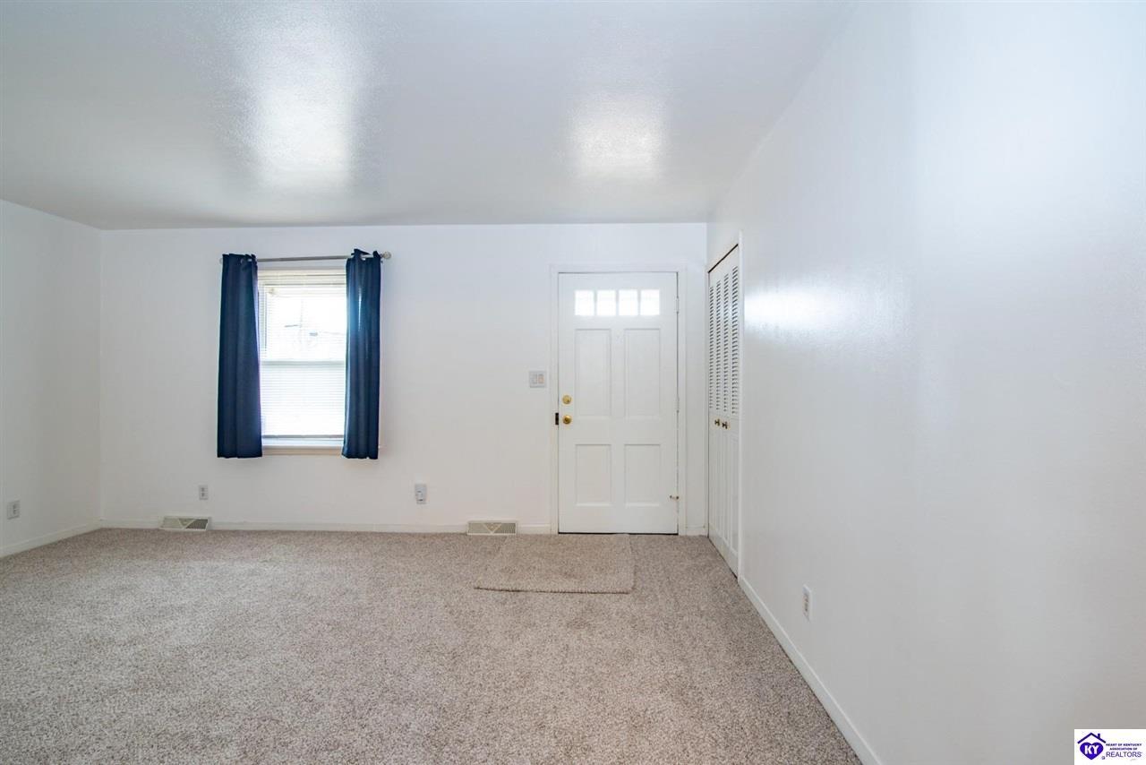 Realtor's notes: Welcome home to this spacious 3 bedroom, 2 bath sprawling ranch perfectly situated on a desirable corner lot! Offering 1,620 square feet of comfortable living space, this home features a huge family room highlighted by a cozy fireplace — the perfect place to relax or gather with friends and family. You’ll love the brand new carpet and fresh paint throughout, giving the home a clean, move-in-ready feel. The spacious eat-in kitchen provides plenty of room for cooking and casual dining, making everyday living both easy and enjoyable. Step outside to a nice backyard complete with a covered patio — ideal for entertaining, grilling, or simply unwinding at the end of the day. A 2-car detached garage adds convenience and extra storage space. Location truly sets this home apart! Just minutes from Fort Knox, Elizabethtown, and Louisville, you’ll enjoy quick access to work, shopping, dining, and entertainment while still having the comfort of a well-established neighborhood. With its generous size, updates, and fantastic location, this home is priced to sell and offers exceptional value. Don’t miss your opportunity to make it yours!