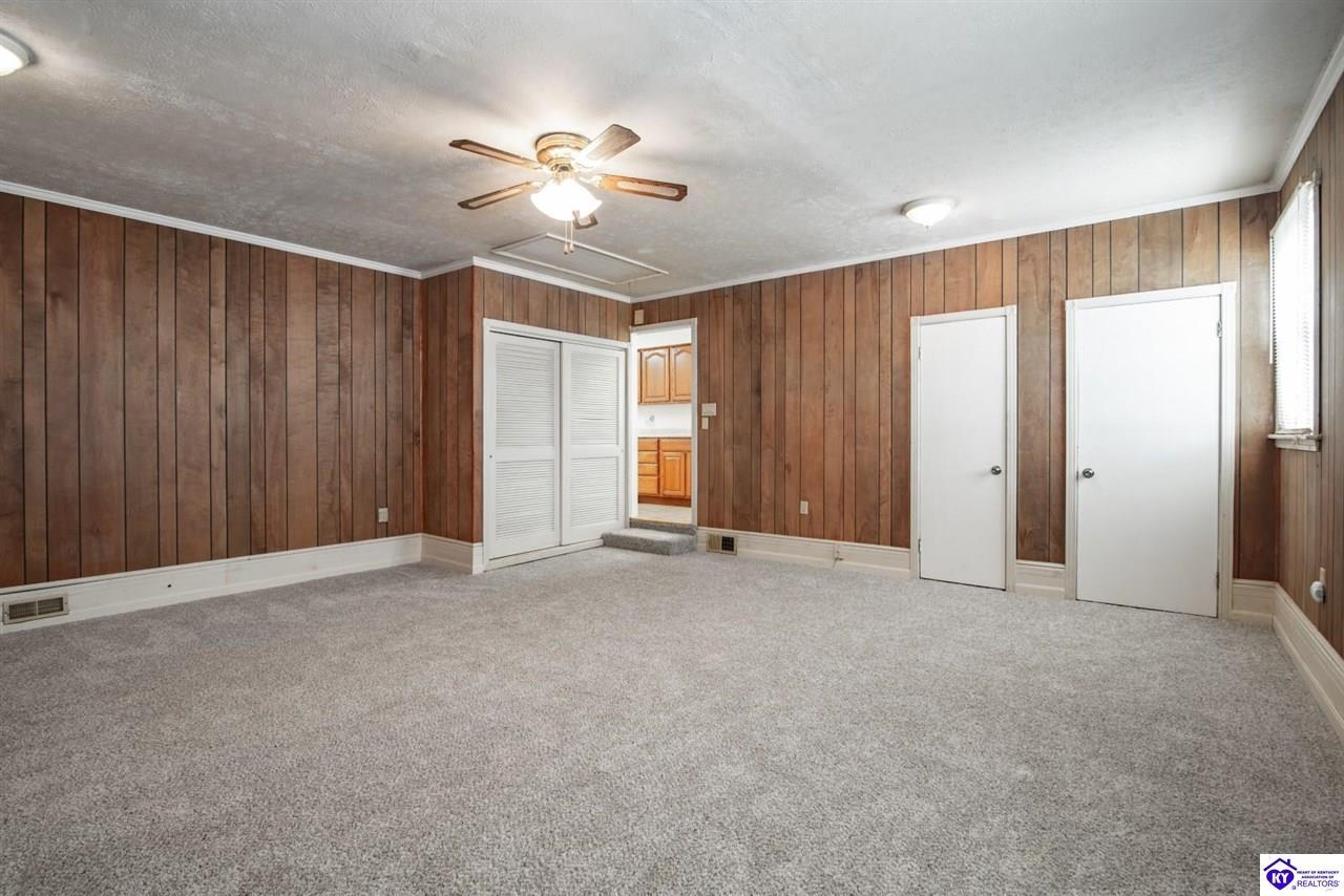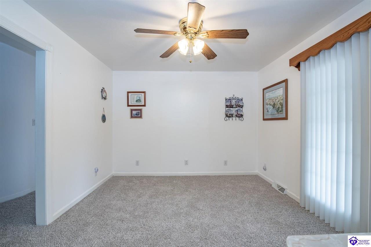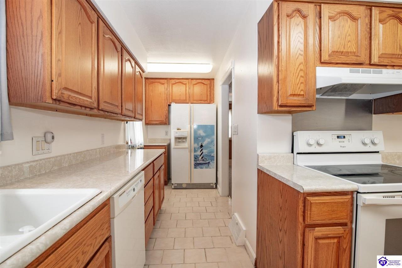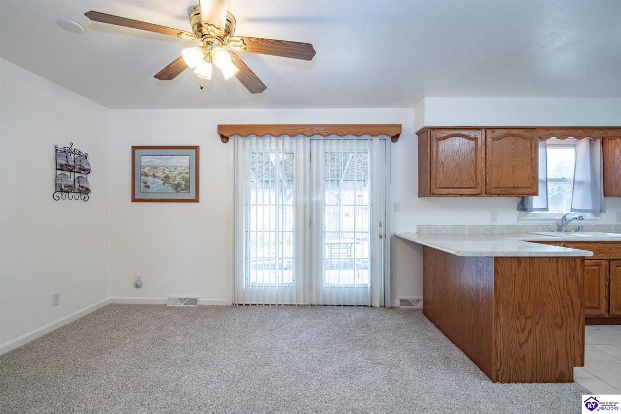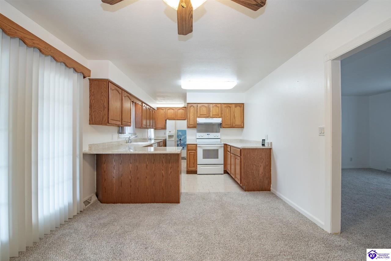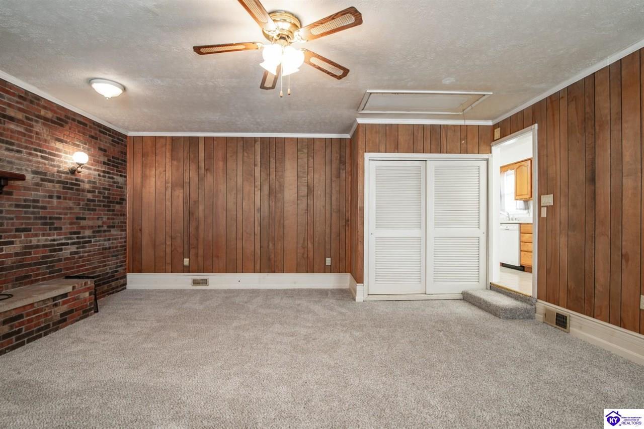 Realtor's notes: Welcome home to this spacious 3 bedroom, 2 bath sprawling ranch perfectly situated on a desirable corner lot! Offering 1,620 square feet of comfortable living space, this home features a huge family room highlighted by a cozy fireplace — the perfect place to relax or gather with friends and family. You’ll love the brand new carpet and fresh paint throughout, giving the home a clean, move-in-ready feel. The spacious eat-in kitchen provides plenty of room for cooking and casual dining, making everyday living both easy and enjoyable. Step outside to a nice backyard complete with a covered patio — ideal for entertaining, grilling, or simply unwinding at the end of the day. A 2-car detached garage adds convenience and extra storage space. Location truly sets this home apart! Just minutes from Fort Knox, Elizabethtown, and Louisville, you’ll enjoy quick access to work, shopping, dining, and entertainment while still having the comfort of a well-established neighborhood. With its generous size, updates, and fantastic location, this home is priced to sell and offers exceptional value. Don’t miss your opportunity to make it yours!