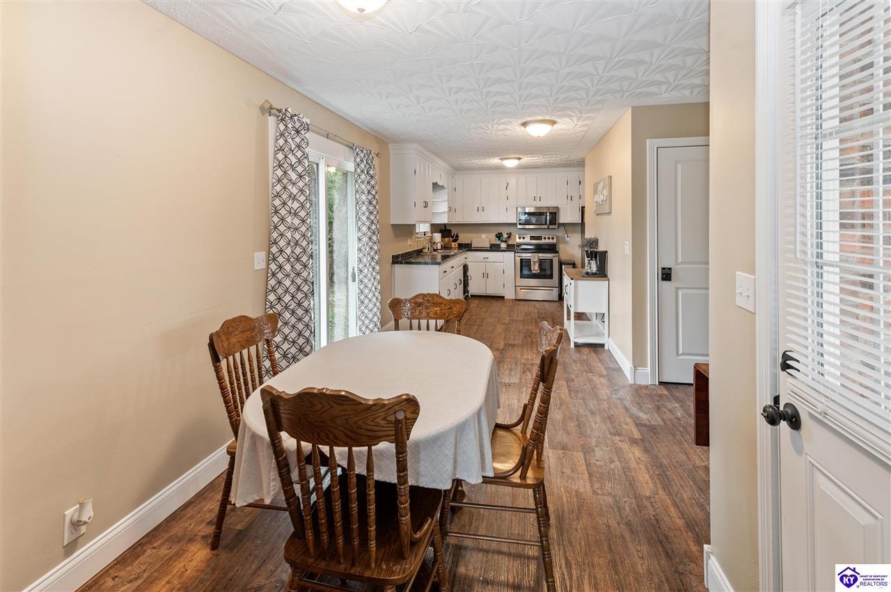 Realtor's notes: Over one acre with commercial zoning, this well-maintained 3 bedroom, 2 bath ranch offers flexibility for residential or business use. The living room with fireplace flows into the dining area and kitchen, creating a comfortable layout. The laundry room is conveniently off the kitchen. Sliding glass doors lead to the rear patio, and a large carport accessible from the kitchen can also serve as a covered patio. Some original hardwood floors remain, adding character to the home. The primary suite features a private bath, with two additional bedrooms and a second full bath on the main level. A walk-up, unfinished basement offers storage or room for future expansion. Recently used as an Airbnb, this property presents an opportunity for continued short-term rental or owner occupancy.