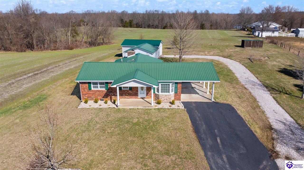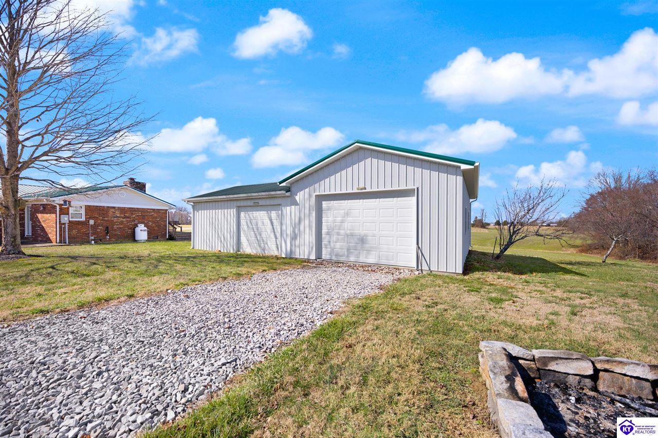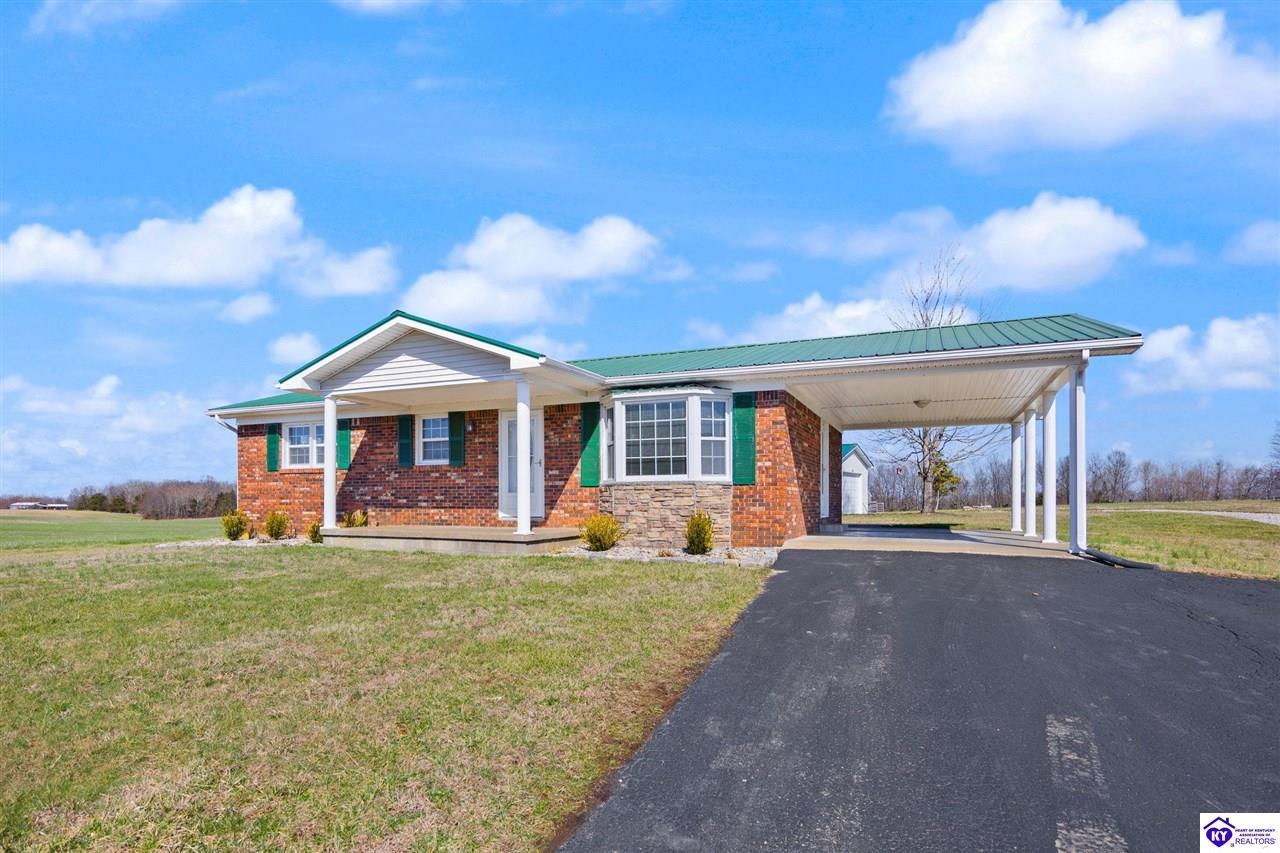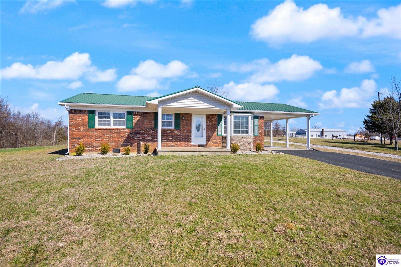 Realtor's notes: Charming brick home nestled in the peaceful countryside of Cub Run, just minutes from beautiful Nolin Lake. This inviting single-family residence offers 2 bedrooms, 1 full bathroom, and approximately 1,350 square feet of comfortable living space, all set on a spacious 1-acre lot. Inside, you’ll find warm hardwood floors and a functional layout designed for easy everyday living. The living and dining areas provide a welcoming atmosphere with plenty of natural light, while the bedrooms offer generous space and comfort. Outside, enjoy the serenity of rural living with room to roam, garden, or simply relax and take in the quiet surroundings. A nice detached garage adds valuable storage and workspace, perfect for hobbies, lake gear, or extra parking. Whether you're looking for a full-time residence, a peaceful retreat near the lake, or a weekend getaway property, this charming home offers country living at its best — with the convenience of Nolin Lake recreation just a short drive away.