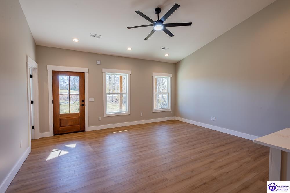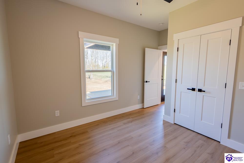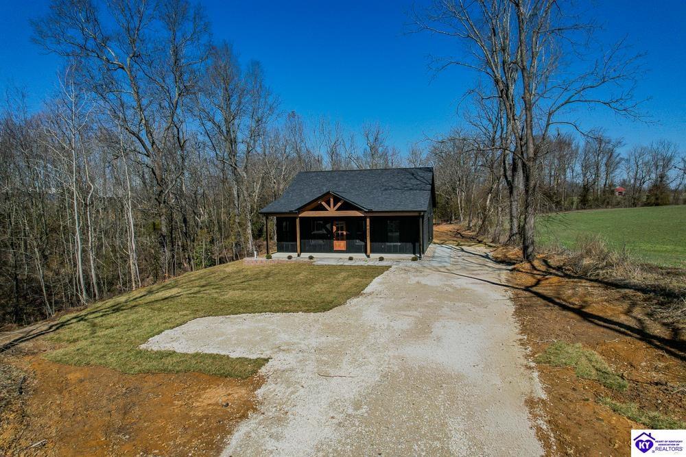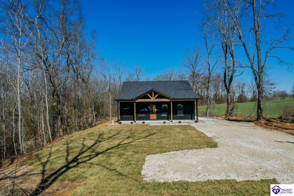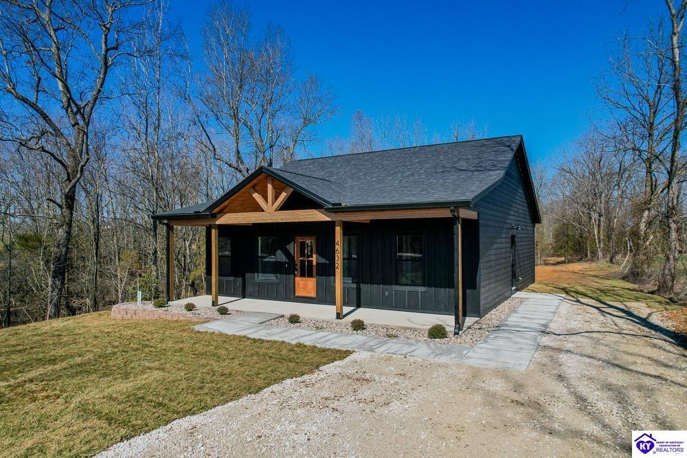 Realtor's notes: Set on 5 secluded acres surrounded by woods and cropland, this 3-bedroom, 2-bath new construction home makes a bold statement with its all-black board and batten exterior, 8” LP SmartSide lap siding, and rich wood-tone accents. A tongue-and-groove ceiling highlights the covered front porch, setting the tone for the craftsmanship found throughout built by NEWTrend Homes, LLC. Inside, cathedral ceilings frame an open-concept layout. The kitchen features two-toned cabinetry, quartz countertops throughout, a spacious pantry and brand new stainless steel appliances, LVP/LVT flooring, bullnose drywall corners, premium insulation and an encapsulated crawl space. The primary suite offers a walk-in closet, double vanity, and a tiled shower. The back deck is a great place to relax with country views and complete with overhead outlets for string lighting. A .25-acre clearing near the back and small creek along the boundary add to the property’s natural appeal and make it a hotspot for deer and wild turkey. The land gives you plenty of room to add a detached garage or shop if needed. Call for a tour today!