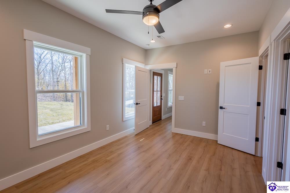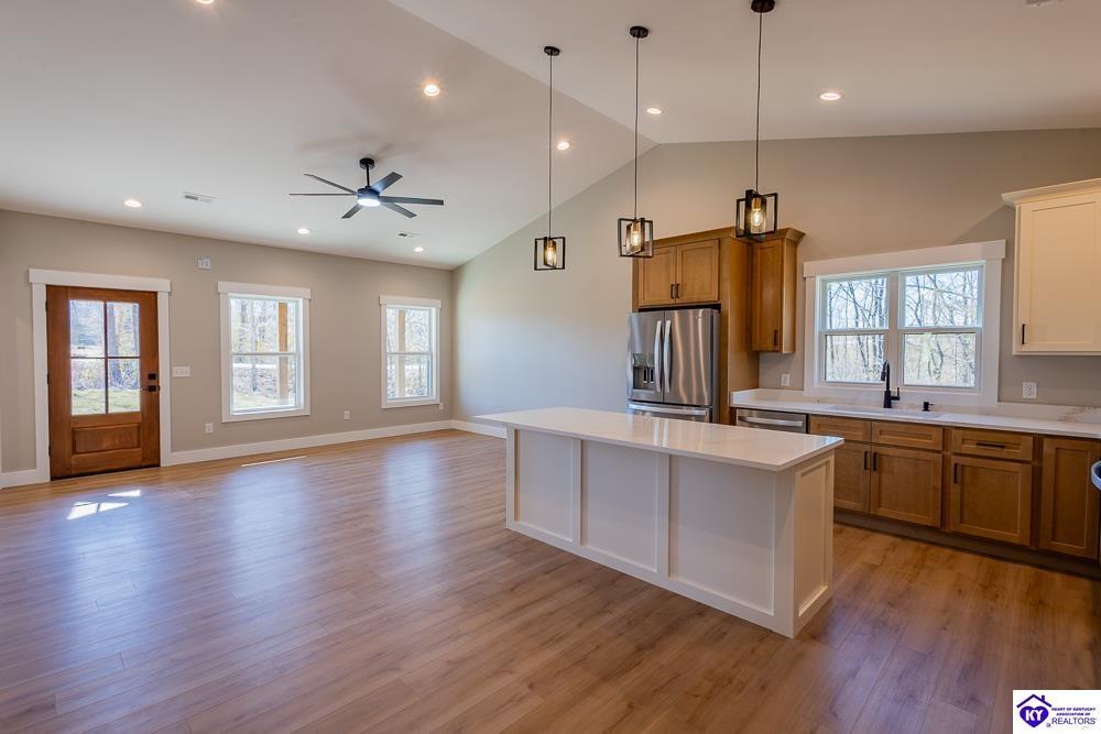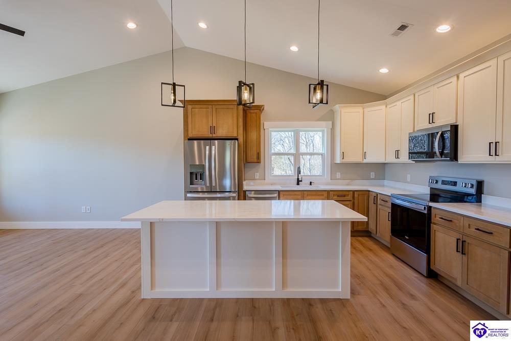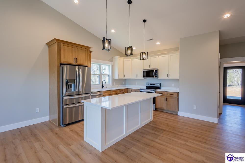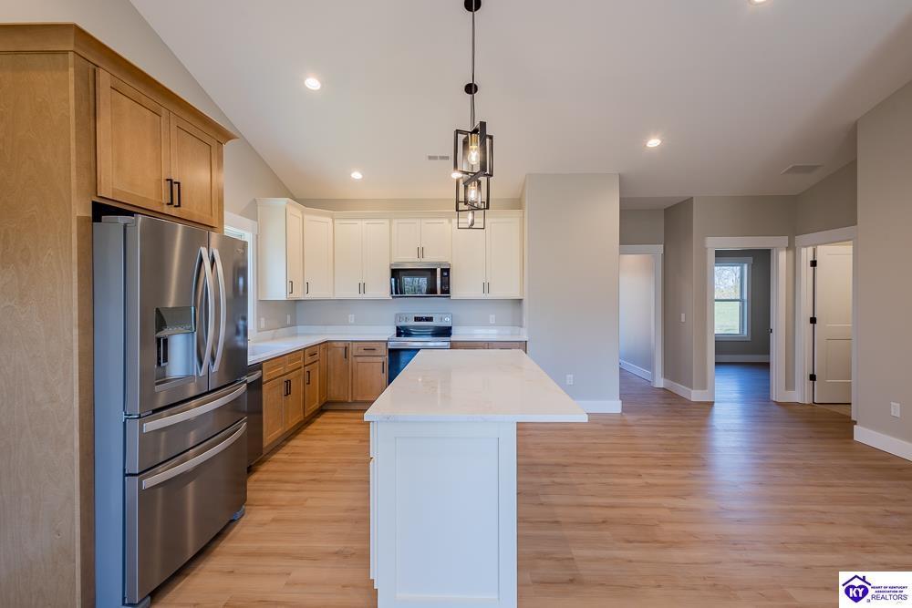 Realtor's notes: Set on 5 secluded acres surrounded by woods and cropland, this 3-bedroom, 2-bath new construction home makes a bold statement with its all-black board and batten exterior, 8” LP SmartSide lap siding, and rich wood-tone accents. A tongue-and-groove ceiling highlights the covered front porch, setting the tone for the craftsmanship found throughout built by NEWTrend Homes, LLC. Inside, cathedral ceilings frame an open-concept layout. The kitchen features two-toned cabinetry, quartz countertops throughout, a spacious pantry and brand new stainless steel appliances, LVP/LVT flooring, bullnose drywall corners, premium insulation and an encapsulated crawl space. The primary suite offers a walk-in closet, double vanity, and a tiled shower. The back deck is a great place to relax with country views and complete with overhead outlets for string lighting. A .25-acre clearing near the back and small creek along the boundary add to the property’s natural appeal and make it a hotspot for deer and wild turkey. The land gives you plenty of room to add a detached garage or shop if needed. Call for a tour today!