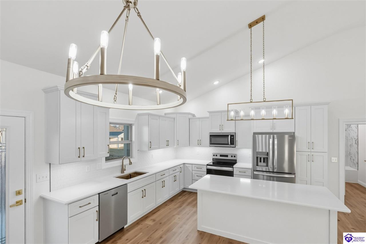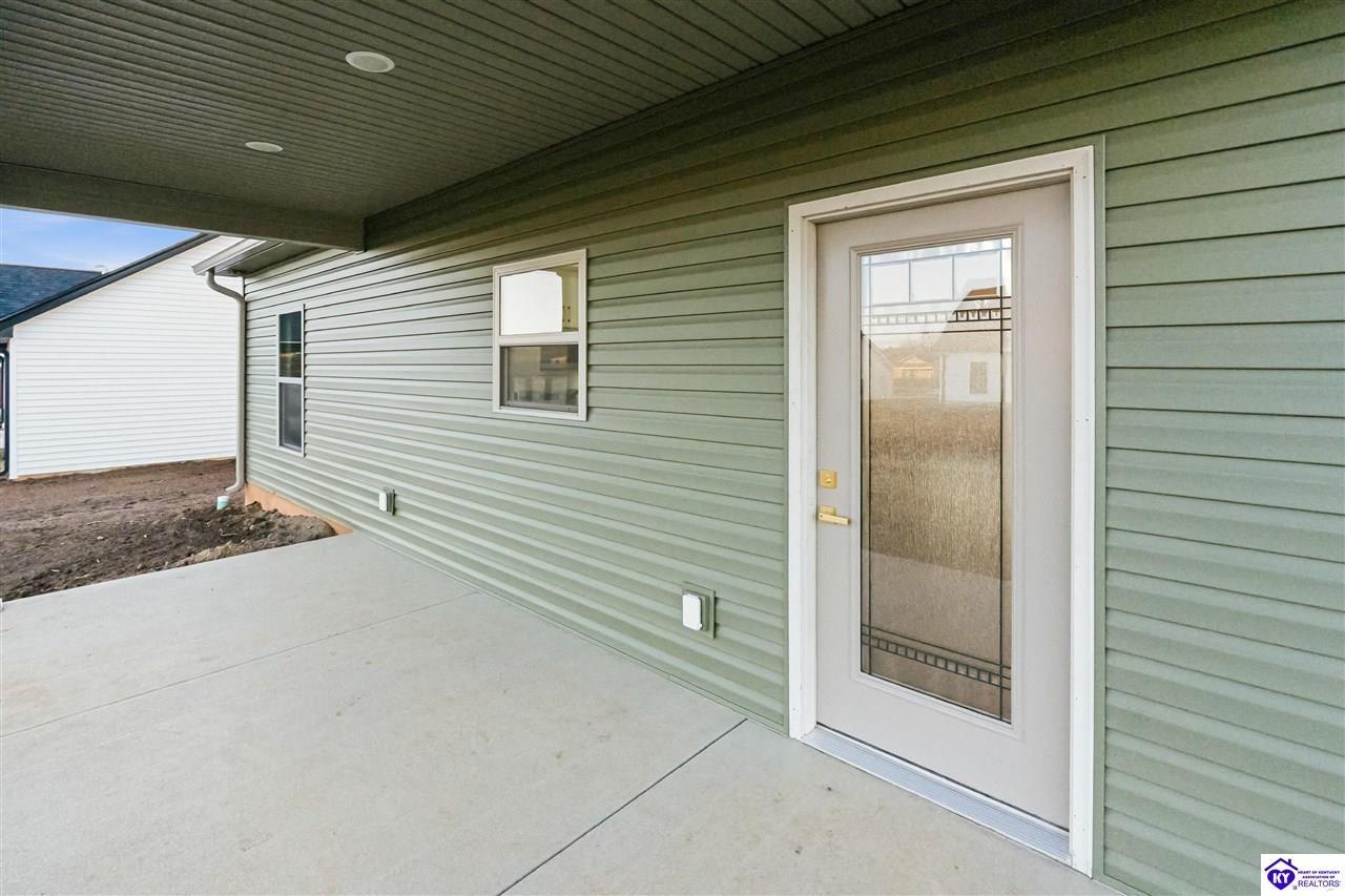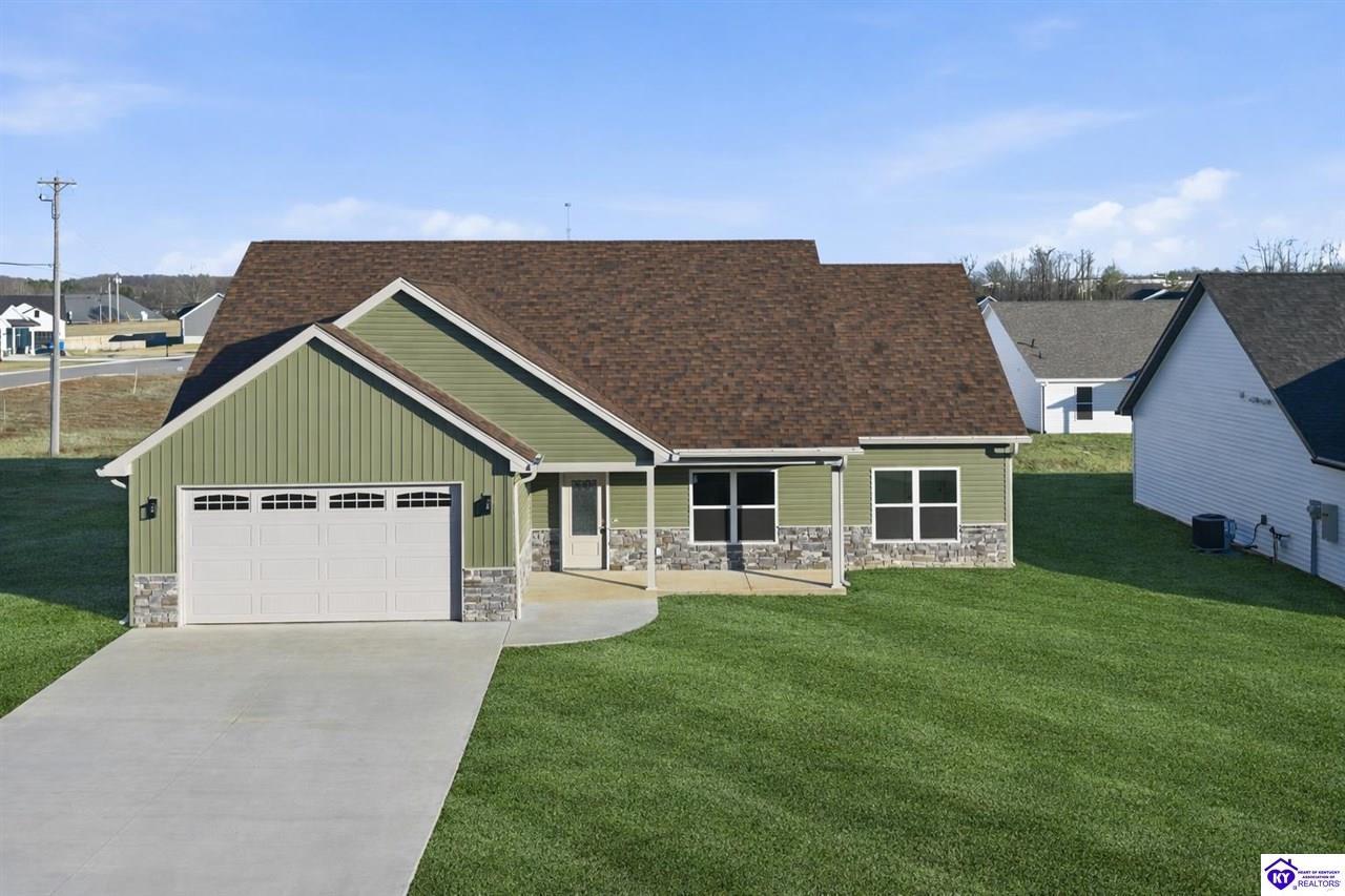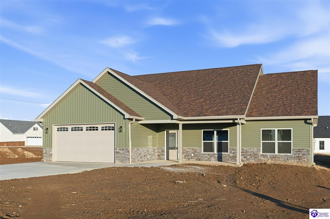 Realtor's notes: Welcome to this beautiful home located in the desirable Miller Woods Subdivision, conveniently situated within the city limits of Brandenburg. This 3 bedroom, 2 bathroom home offers 1,579 sq ft of living space with a spacious open floor plan designed for comfortable living and entertaining. The main living area flows seamlessly into the kitchen and dining space, featuring gorgeous cabinetry and plenty of room to gather with family and friends. Step outside and enjoy both a covered front porch and a covered patio, perfect for relaxing, entertaining, or enjoying your morning coffee. With its thoughtful layout and inviting outdoor spaces, this home offers the perfect blend of comfort and functionality. Enjoy the convenience of being close to local schools, shopping, dining, and everything Brandenburg has to offer while still enjoying the peaceful setting of a well-established neighborhood.