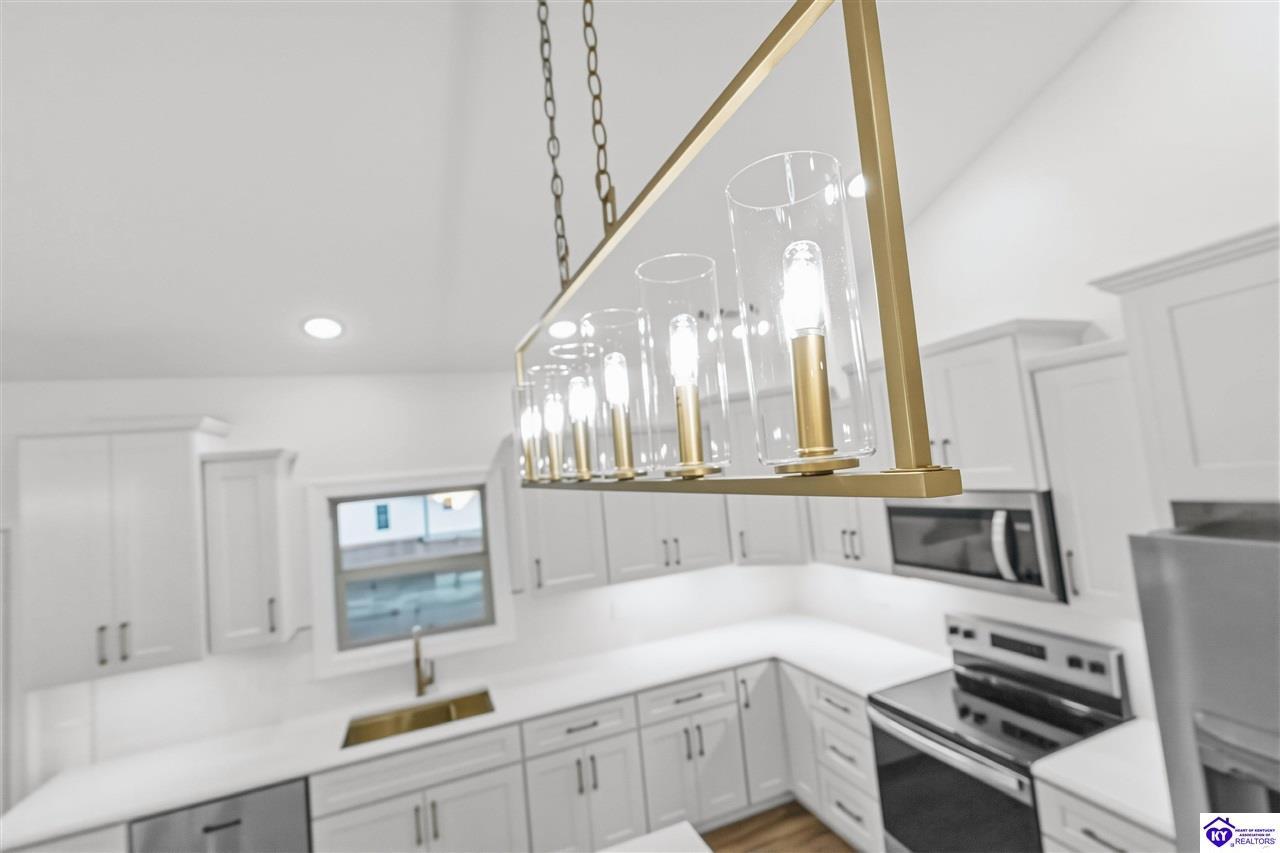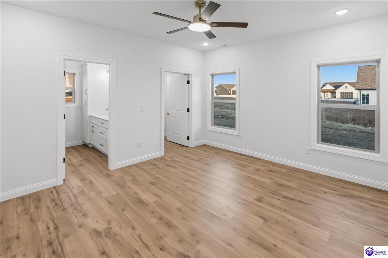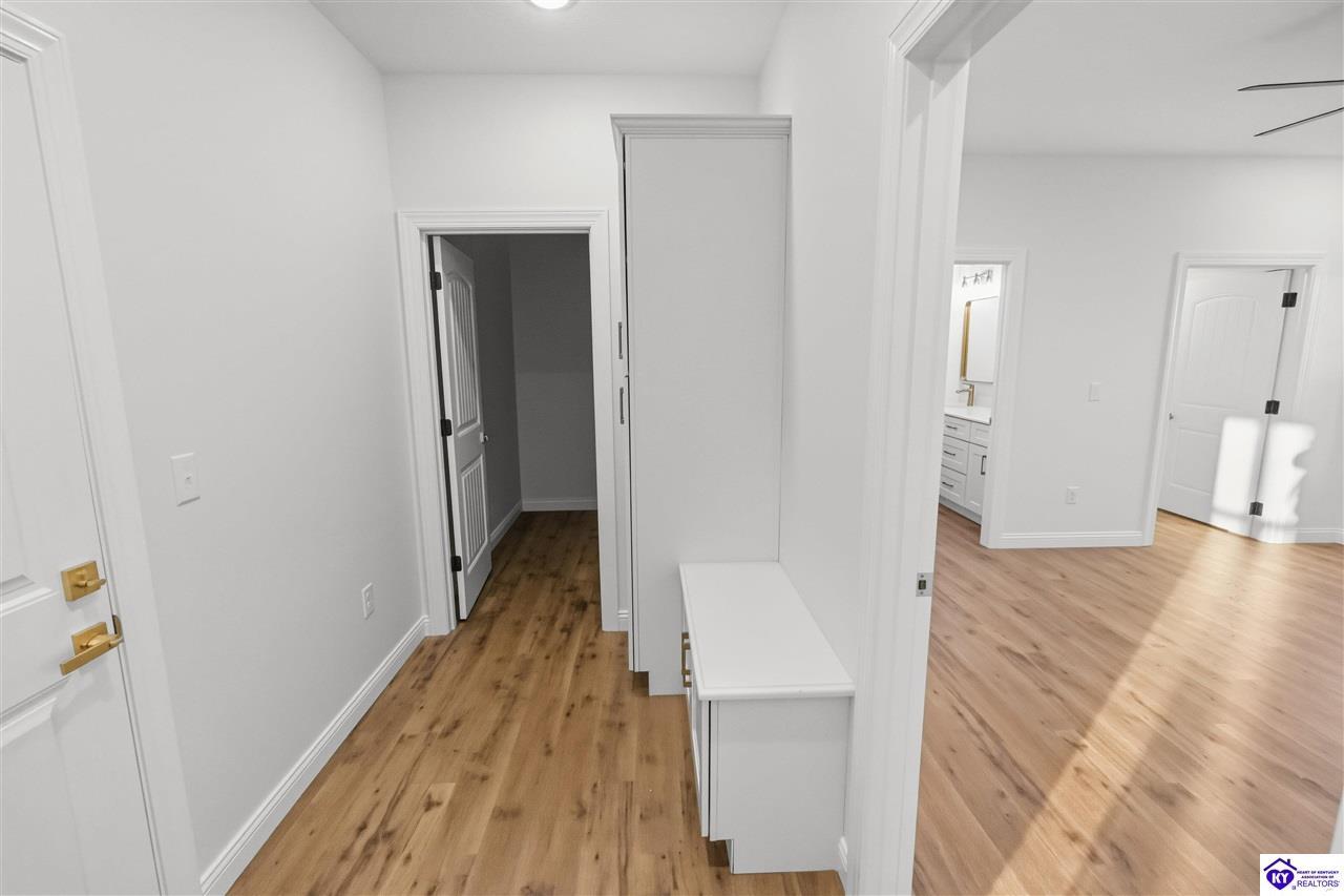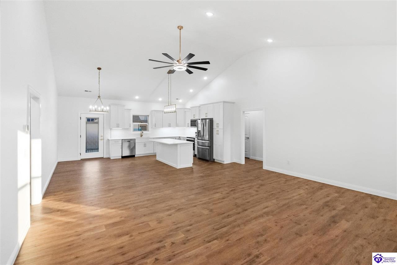 Realtor's notes: Welcome to this beautiful home located in the desirable Miller Woods Subdivision, conveniently situated within the city limits of Brandenburg. This 3 bedroom, 2 bathroom home offers 1,579 sq ft of living space with a spacious open floor plan designed for comfortable living and entertaining. The main living area flows seamlessly into the kitchen and dining space, featuring gorgeous cabinetry and plenty of room to gather with family and friends. Step outside and enjoy both a covered front porch and a covered patio, perfect for relaxing, entertaining, or enjoying your morning coffee. With its thoughtful layout and inviting outdoor spaces, this home offers the perfect blend of comfort and functionality. Enjoy the convenience of being close to local schools, shopping, dining, and everything Brandenburg has to offer while still enjoying the peaceful setting of a well-established neighborhood.