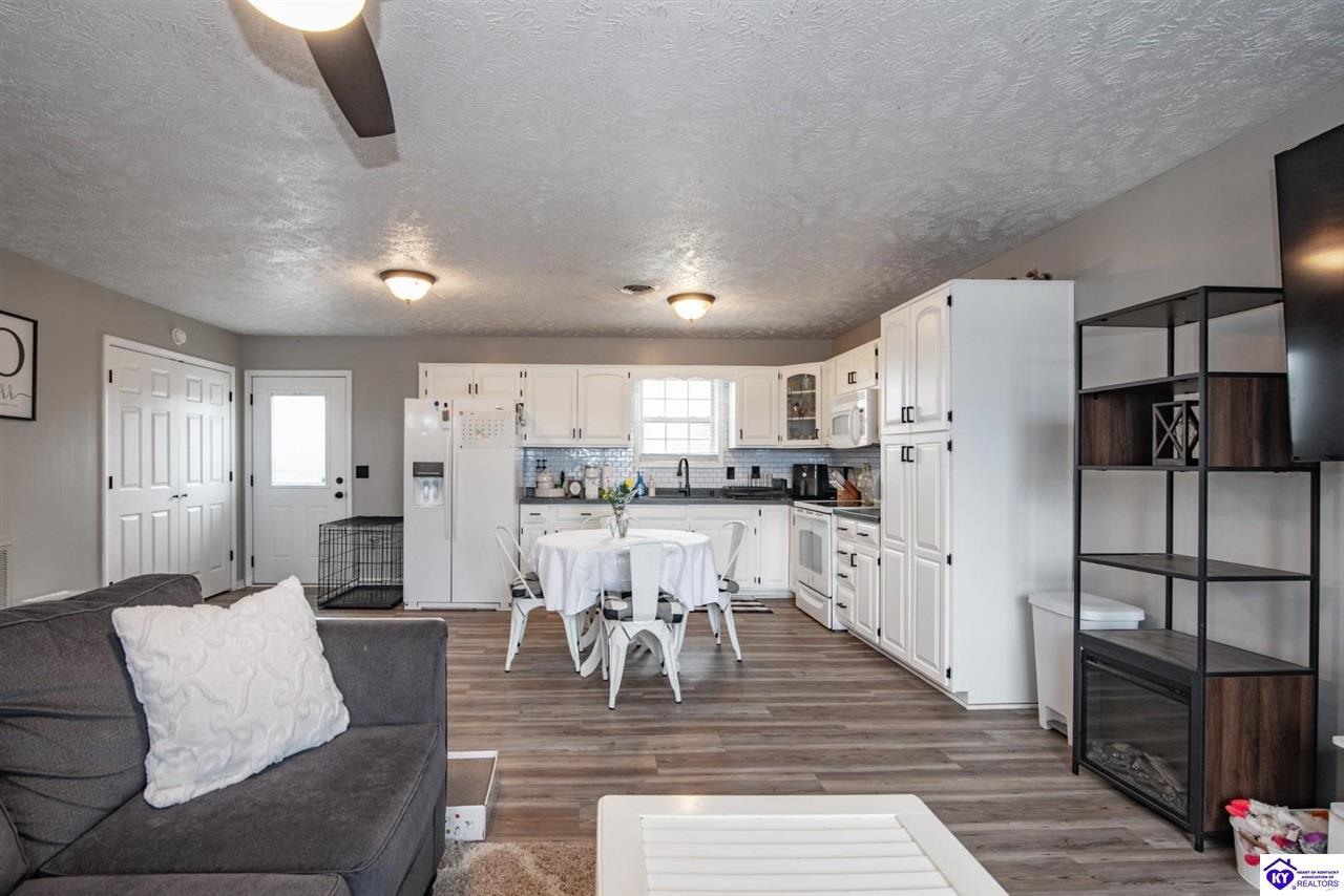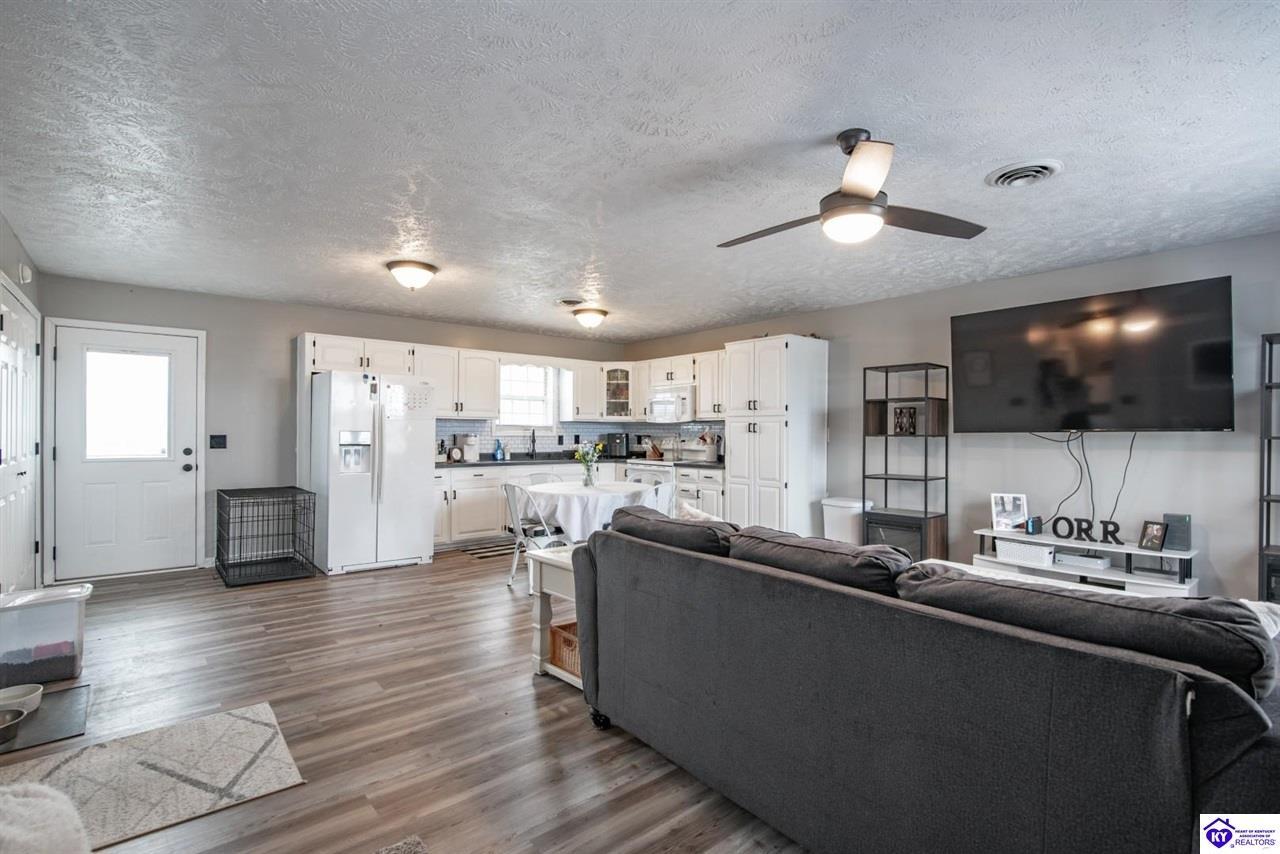 Realtor's notes: Recently updated home set in the peaceful countryside and surrounded by idyllic farm views in every direction. This charming 2-bedroom, 1-bath home features an inviting open floor plan and newly replaced hard-surface flooring throughout. The spacious kitchen offers room for a dining table or the option to add an island or bar seating. Enjoy the quiet of country living while relaxing under the existing pergola at the back corner of the property—an ideal spot to unwind and take in the surrounding views. The property also includes a storage building for additional space and convenience. Well maintained, updated, and ready for its next owner.