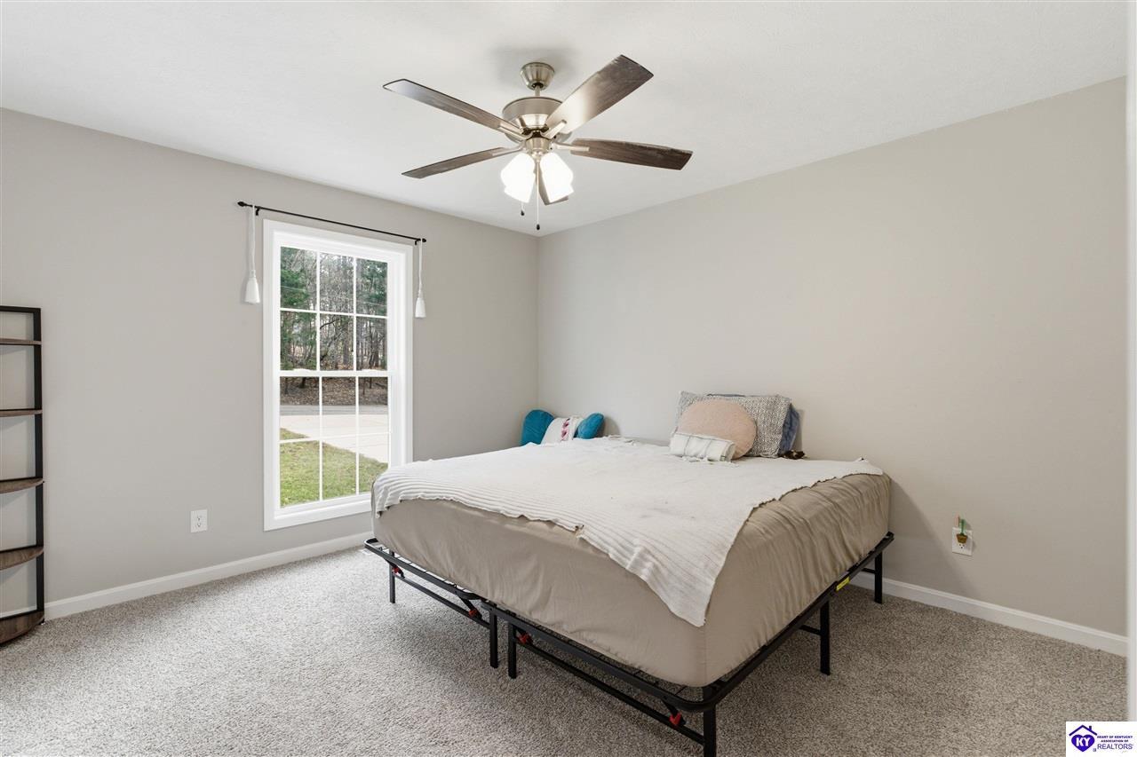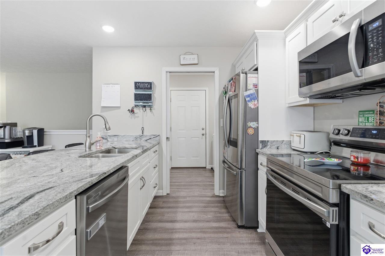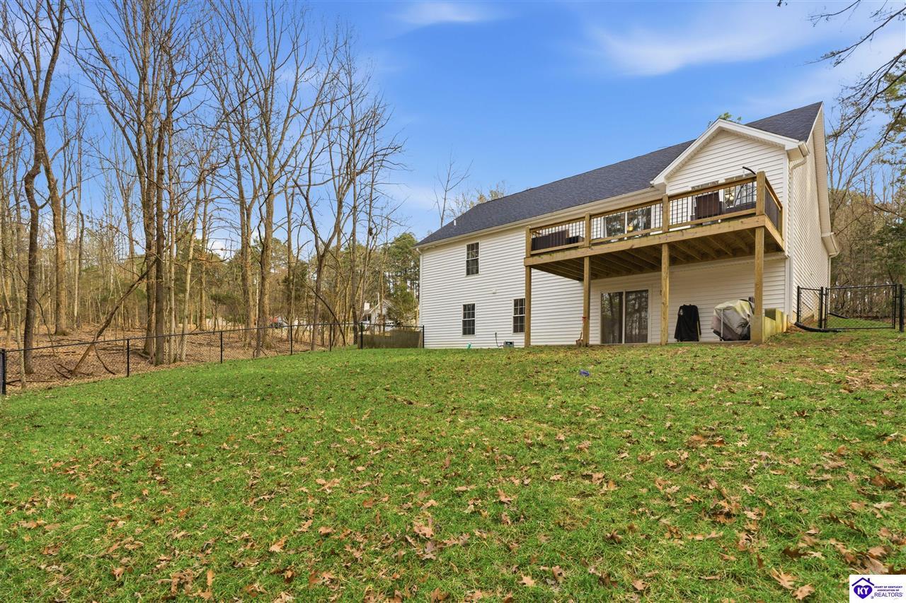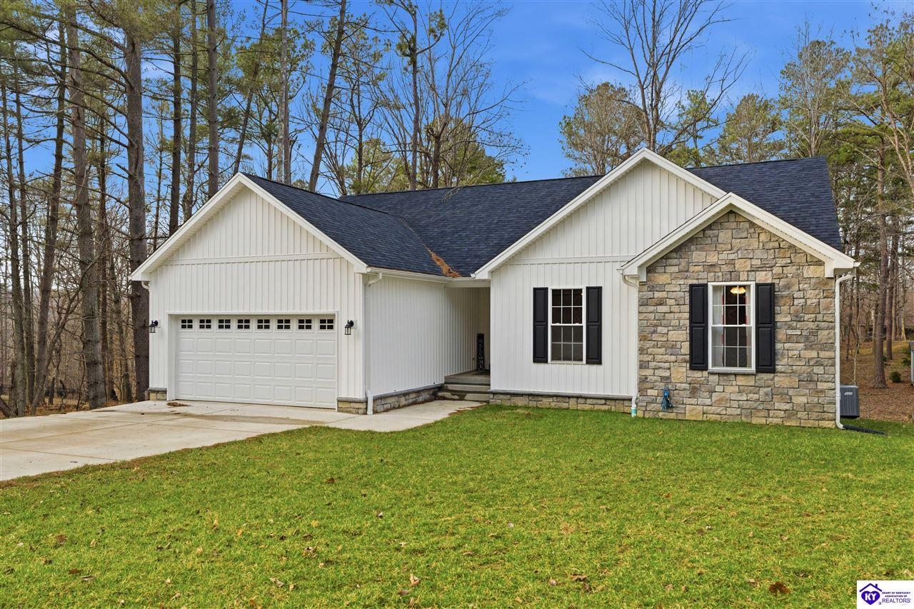 Realtor's notes: Doe Valley • 2023 build • 4BR 3BA • Finished walkout with 4th bedroom and full bath • Granite kitchen • Samsung stainless • Rear deck • 2-car attached garage • Main-floor laundry • Bar sink rough-in Located in the gated Doe Valley community in Brandenburg, Meade County, 110 Ridge Pole Rd offers a clean, modern layout with an open main level built for everyday living and easy entertaining. The granite kitchen features Samsung stainless appliances, ample cabinet space, and an easy flow into the spacious living room. Step out to the rear deck for grilling, outdoor dining, or relaxing with a view of the backyard. The oversized primary suite includes a double vanity, soaking tub, and tile shower, and the laundry room is conveniently on the main floor. Two additional main-level bedrooms and a full bath add flexible space for guests, hobbies, or a home office. Downstairs, the finished walkout basement expands your options with a large second living area, an open storage space, plus a private fourth bedroom and full bath. Plumbing is already in place for a future bar sink (no sink installed), ideal for a game day setup or refreshment station. Enjoy year-round Doe Valley amenities including golf, lake and marina access, swim and tennis options, tennis courts, and a beach area. Convenient to Brandenburg shopping and dining, with an easy drive toward Fort Knox and Elizabethtown, and approximately 37 miles to Louisville International Airport.
