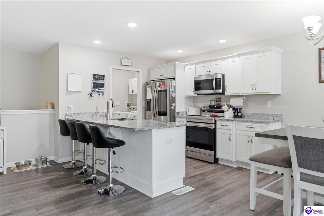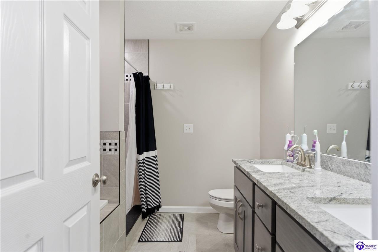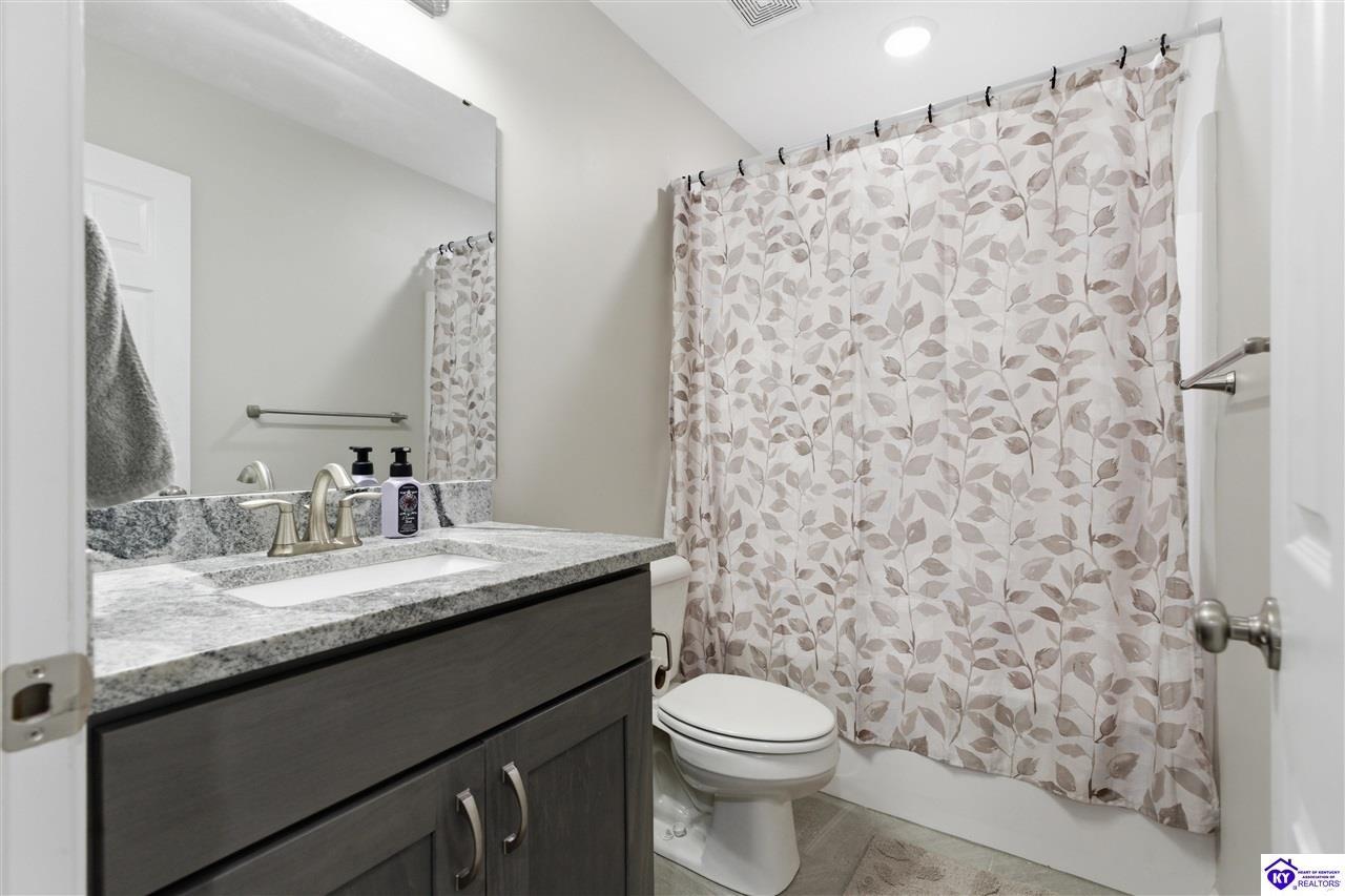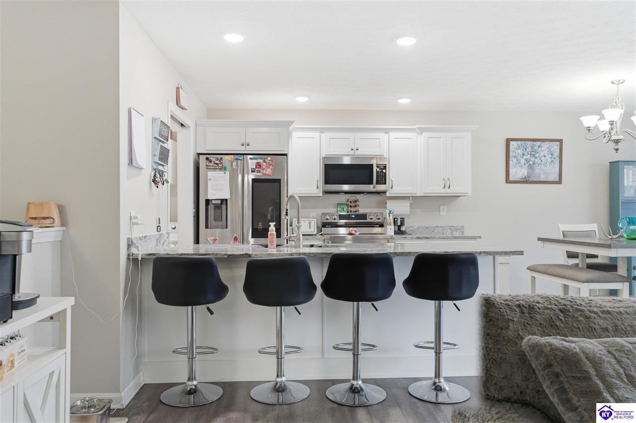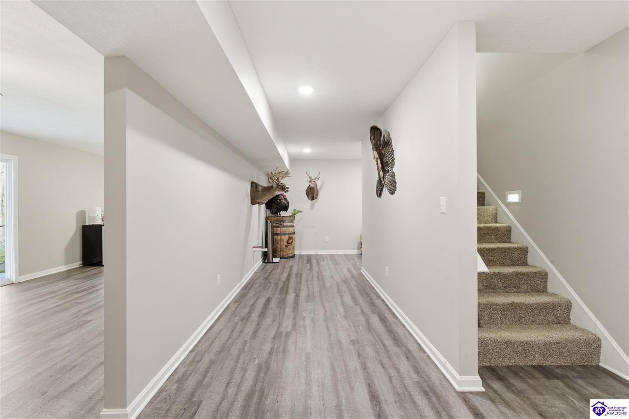Realtor's notes: Doe Valley • 2023 build • 4BR 3BA • Finished walkout with 4th bedroom and full bath • Granite kitchen • Samsung stainless • Rear deck • 2-car attached garage • Main-floor laundry • Bar sink rough-in Located in the gated Doe Valley community in Brandenburg, Meade County, 110 Ridge Pole Rd offers a clean, modern layout with an open main level built for everyday living and easy entertaining. The granite kitchen features Samsung stainless appliances, ample cabinet space, and an easy flow into the spacious living room. Step out to the rear deck for grilling, outdoor dining, or relaxing with a view of the backyard. The oversized primary suite includes a double vanity, soaking tub, and tile shower, and the laundry room is conveniently on the main floor. Two additional main-level bedrooms and a full bath add flexible space for guests, hobbies, or a home office. Downstairs, the finished walkout basement expands your options with a large second living area, an open storage space, plus a private fourth bedroom and full bath. Plumbing is already in place for a future bar sink (no sink installed), ideal for a game day setup or refreshment station. Enjoy year-round Doe Valley amenities including golf, lake and marina access, swim and tennis options, tennis courts, and a beach area. Convenient to Brandenburg shopping and dining, with an easy drive toward Fort Knox and Elizabethtown, and approximately 37 miles to Louisville International Airport.