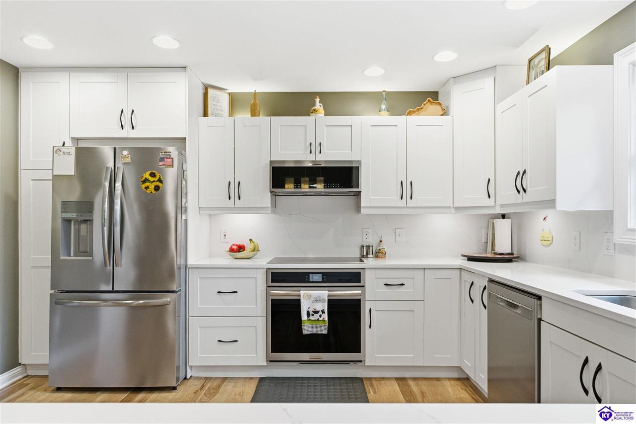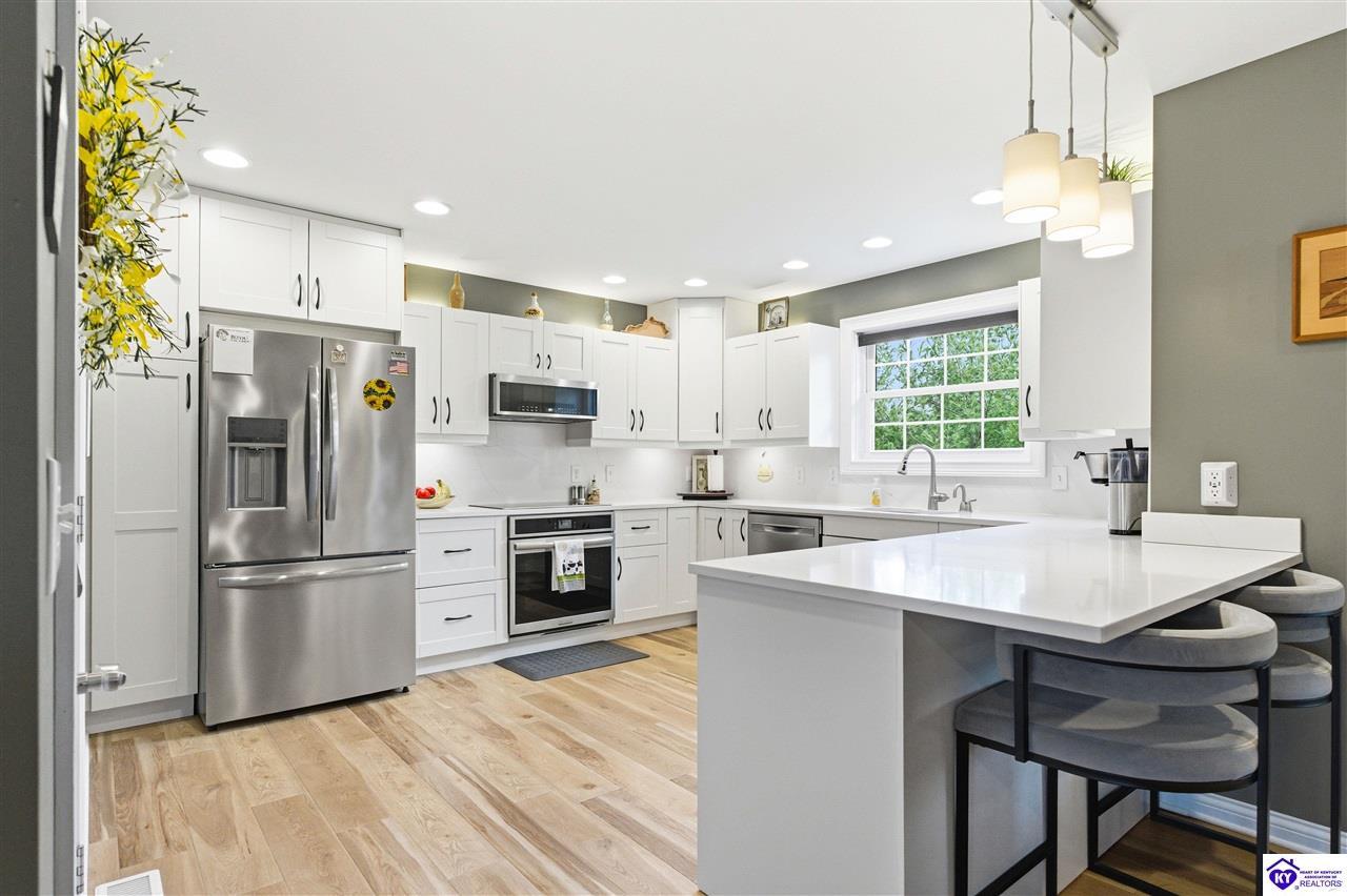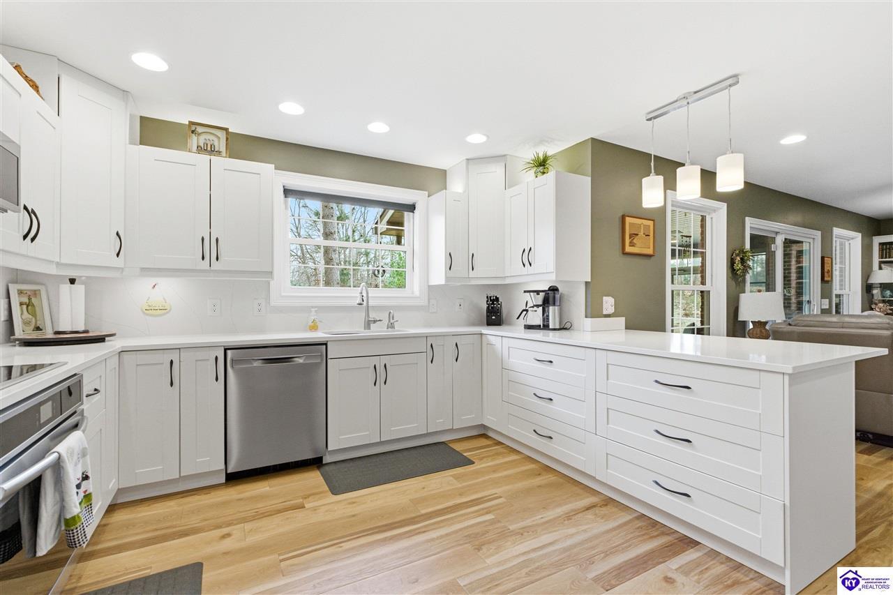 Realtor's notes: Welcome to 87 Glenn Eagle Road in the beautiful Doe Valley Subdivision! This spacious home offers 4 bedrooms and 3 full bathrooms in one of Brandenburg’s most sought-after gated communities. The remodeled kitchen features new cabinetry, updated appliances, and new flooring, creating a fresh and functional space for cooking and entertaining. The home also boasts two fireplaces, providing warmth and charm to the living areas. Enjoy relaxing in the sunroom overlooking the gorgeous half-acre lot, offering plenty of space for outdoor enjoyment and privacy. Located within Doe Valley, residents enjoy access to outstanding amenities including a gated entrance, golf course, lake, and clubhouse, creating a true resort-style community atmosphere. Don’t miss the opportunity to enjoy comfort, space, and community living all in one property.