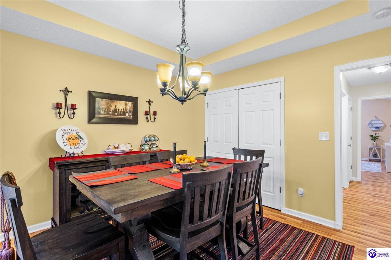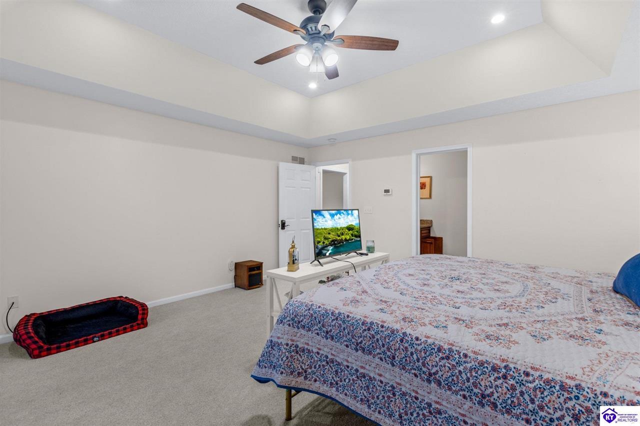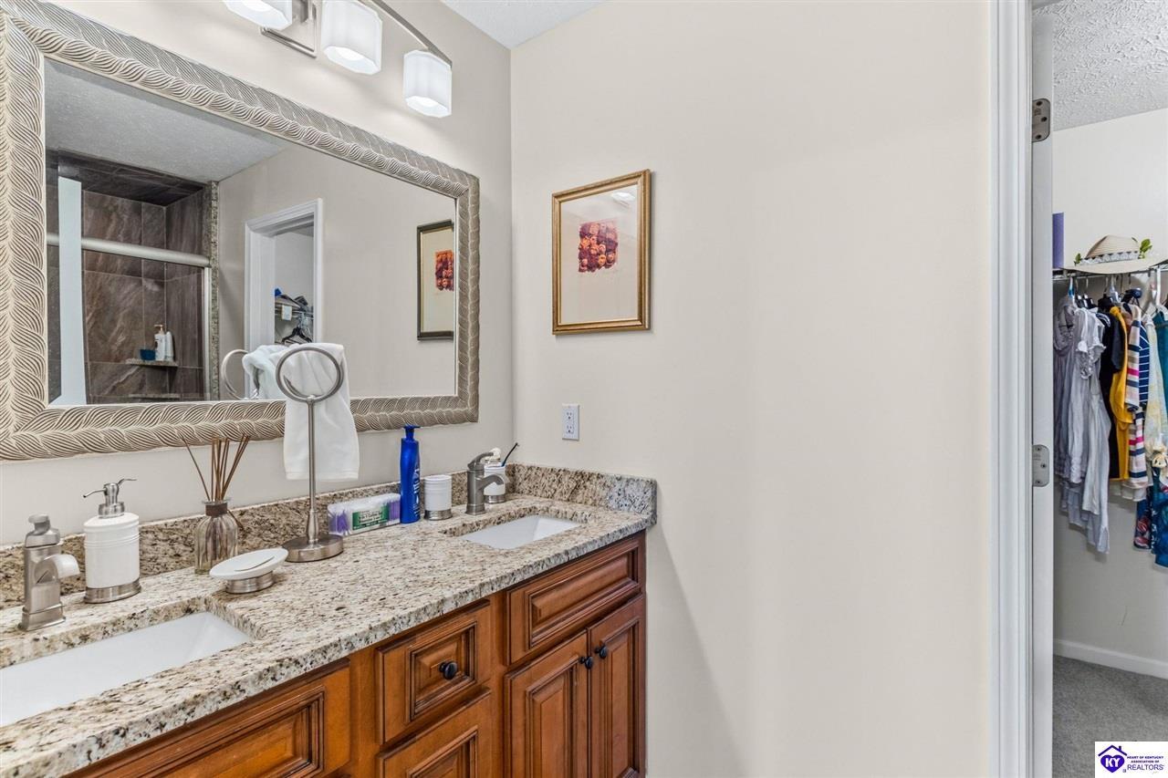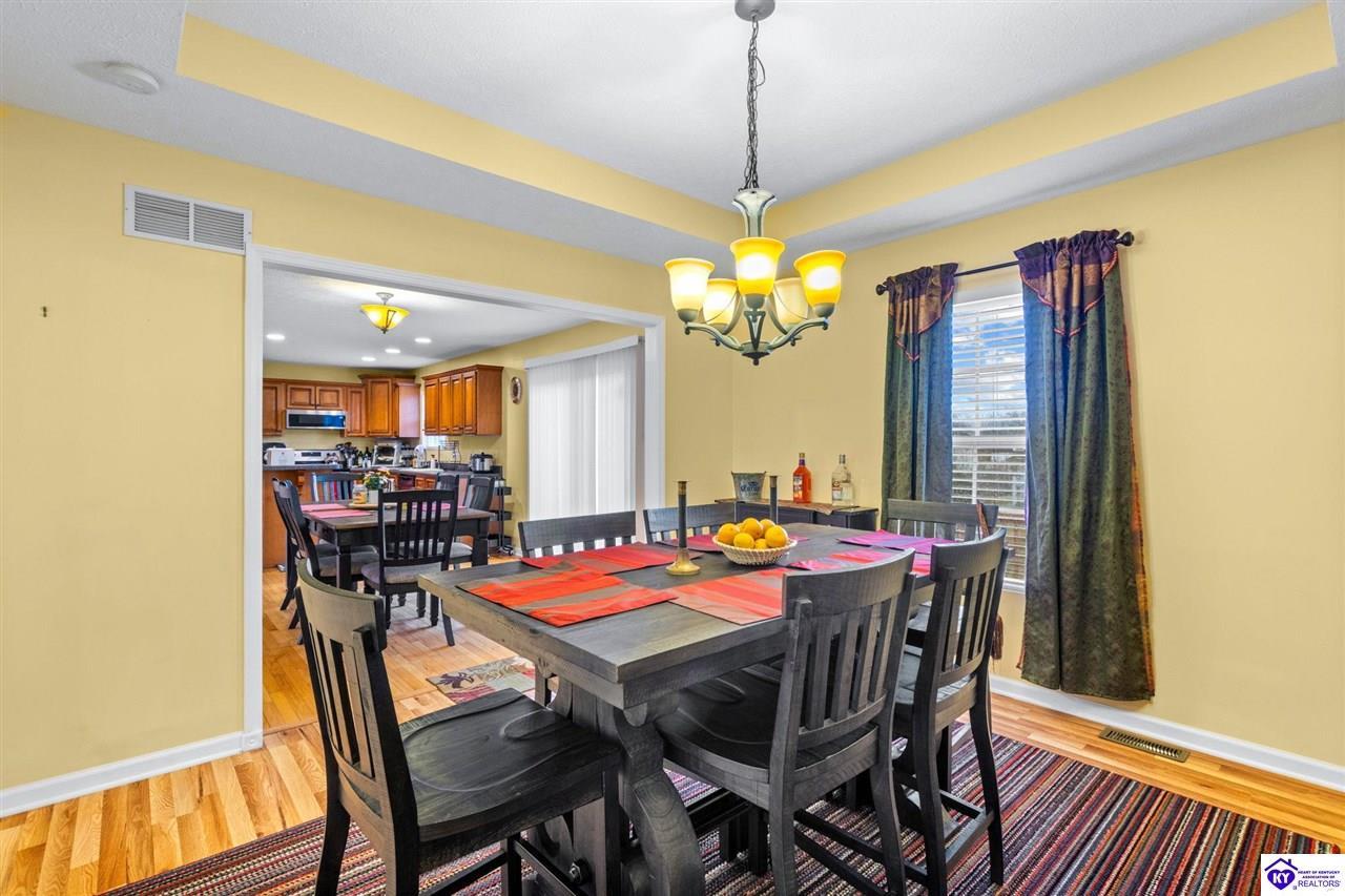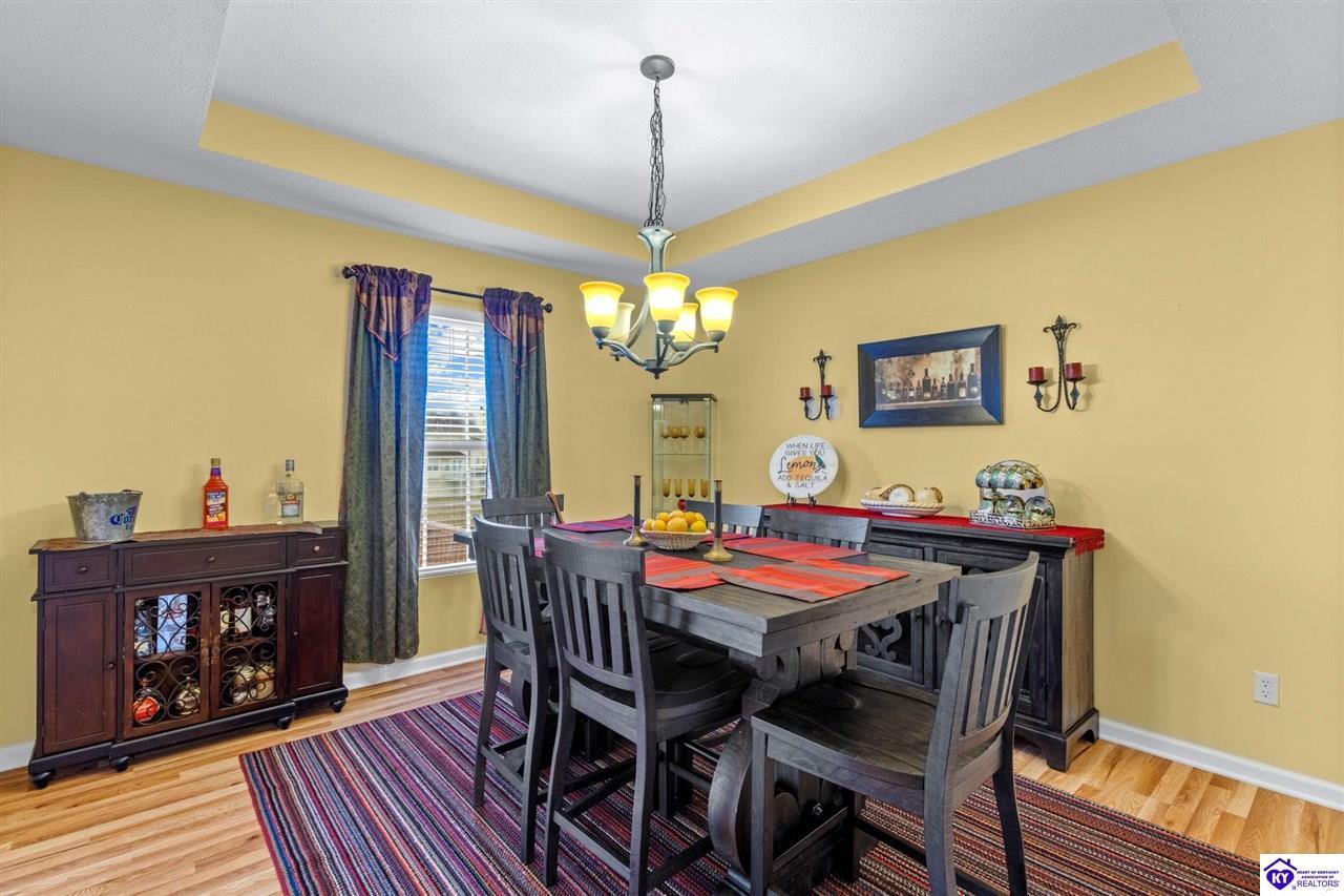 Realtor's notes: Come tour this spacious ranch in Shadow Creek—move-in ready and loaded with extras. This home offers 4-bedroom, 3-full-bath spacious ranch featuring a fully finished basement with kitchenette and an additional bedroom/bath—perfect for guests or in-law living. The primary suite includes walk-in closets and a wonderful custom sunroom off the bedroom. All bedrooms are generously sized. Enjoy a formal dining area and a vaulted great room for entertaining. Outside offers a large deck, patio and fenced yard. Minutes from schools, shopping, dining and Fort Knox—schedule your tour today.