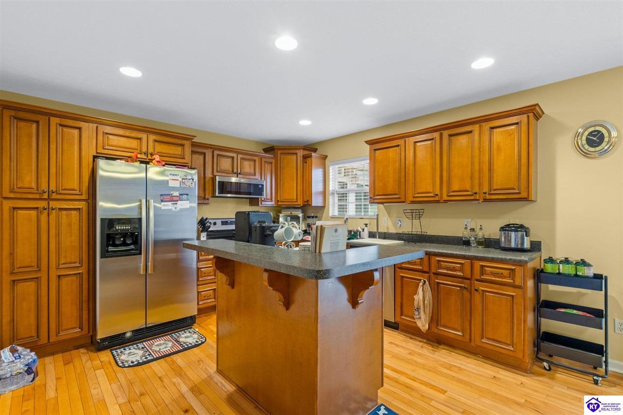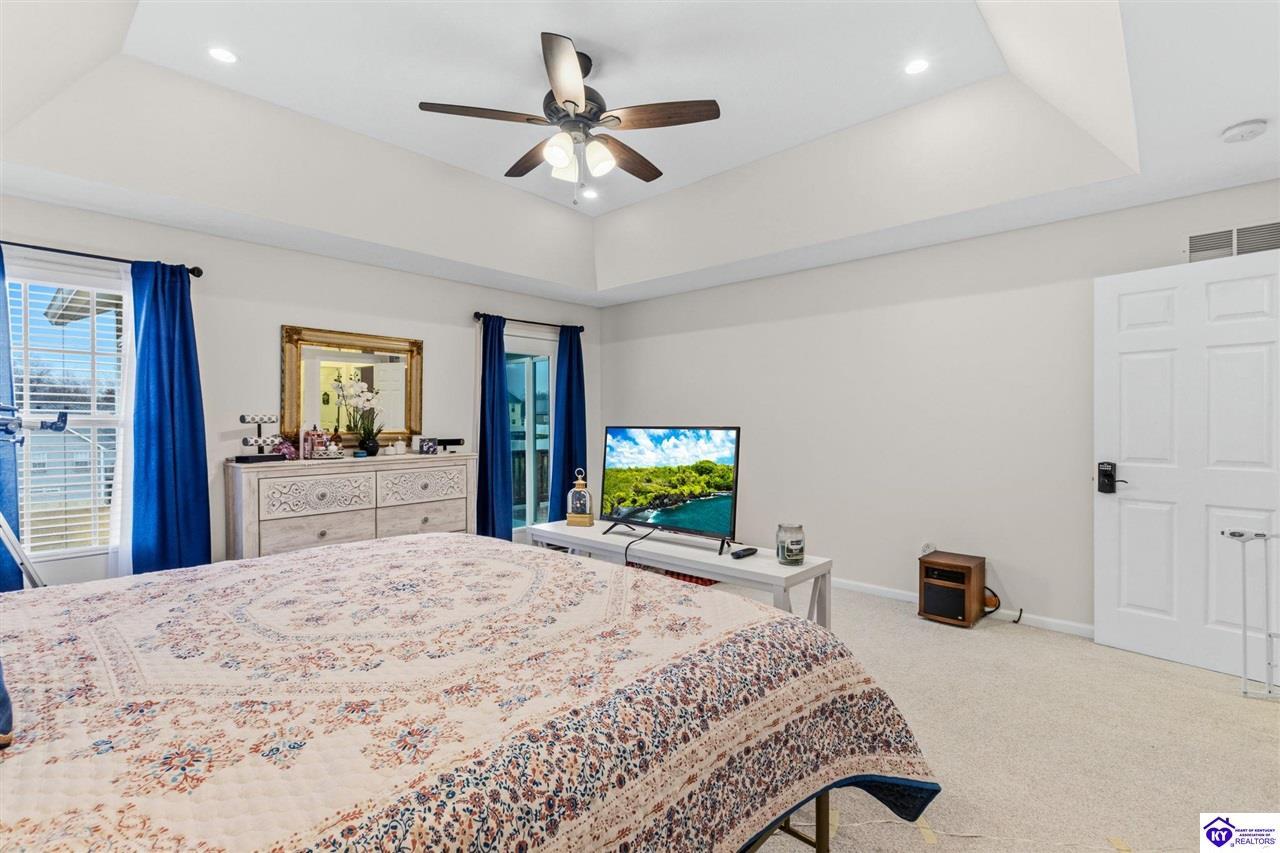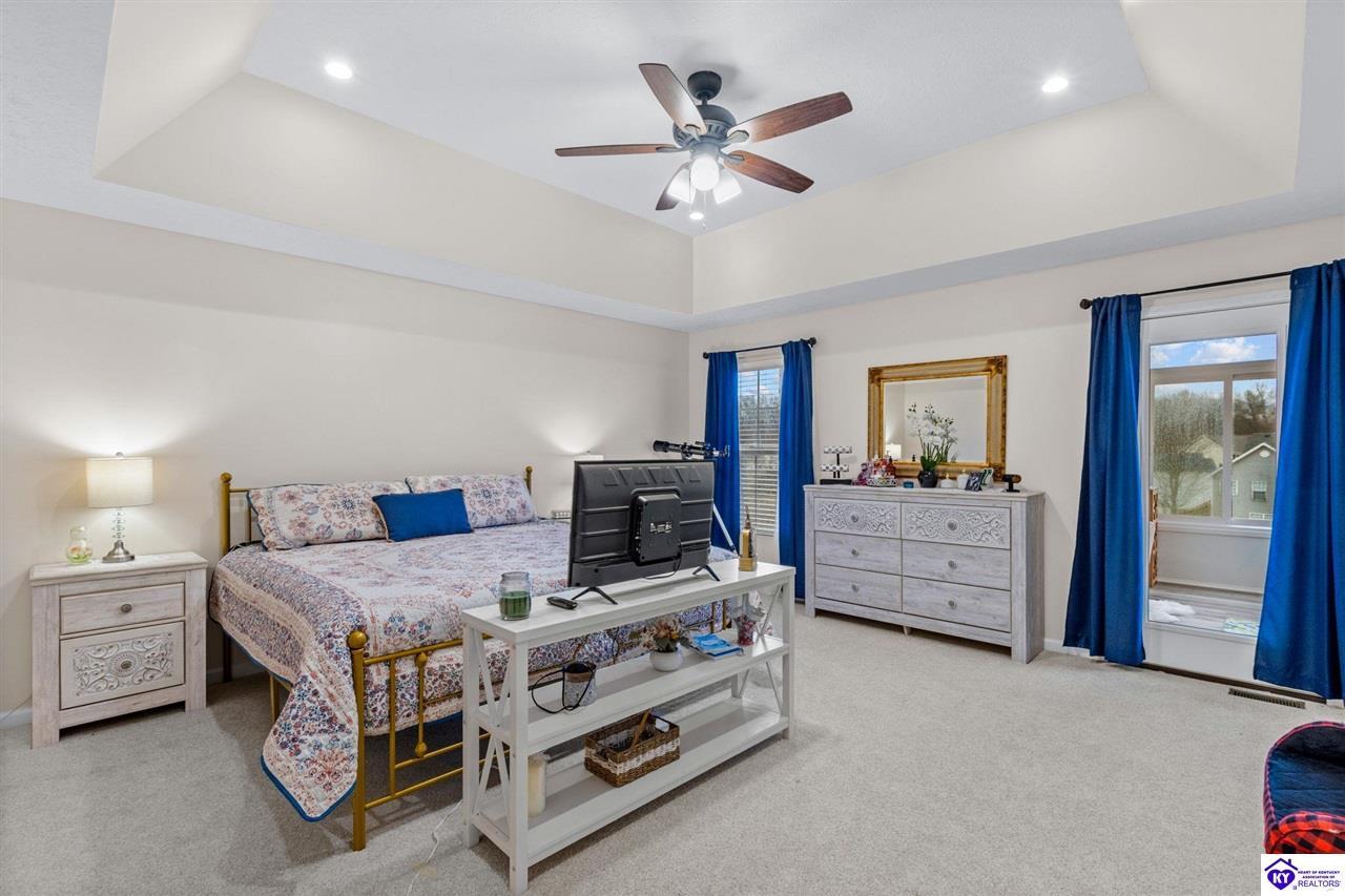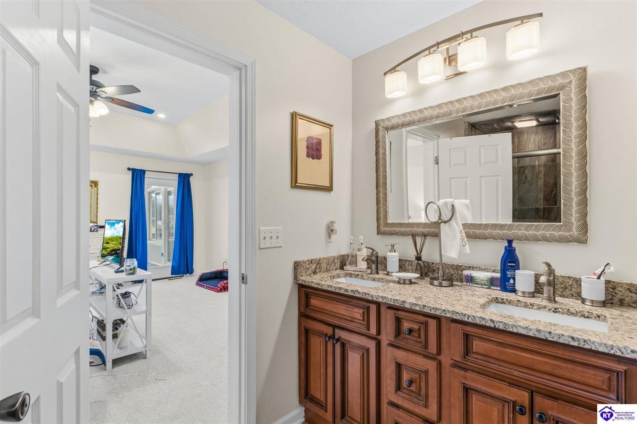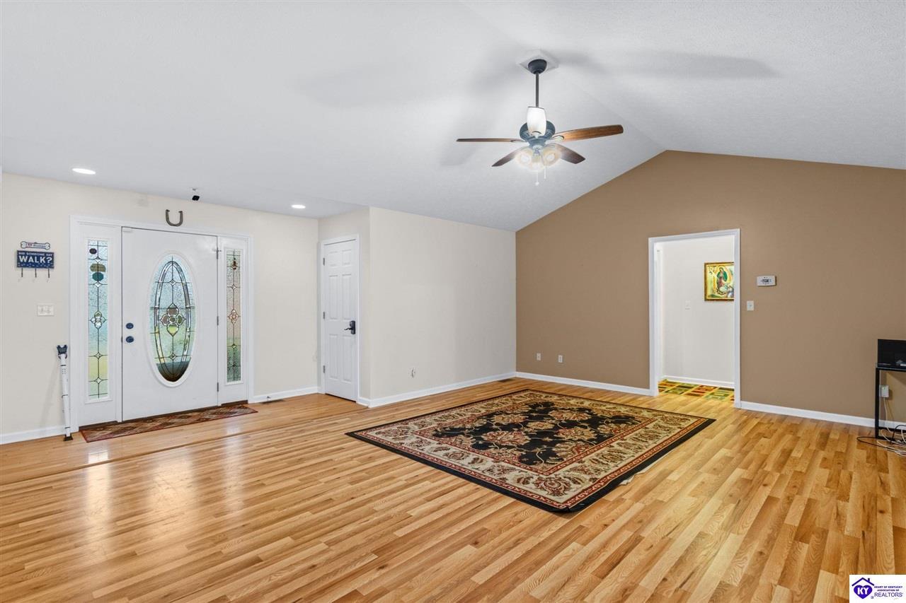 Realtor's notes: Come tour this spacious ranch in Shadow Creek—move-in ready and loaded with extras. This home offers 4-bedroom, 3-full-bath spacious ranch featuring a fully finished basement with kitchenette and an additional bedroom/bath—perfect for guests or in-law living. The primary suite includes walk-in closets and a wonderful custom sunroom off the bedroom. All bedrooms are generously sized. Enjoy a formal dining area and a vaulted great room for entertaining. Outside offers a large deck, patio and fenced yard. Minutes from schools, shopping, dining and Fort Knox—schedule your tour today.