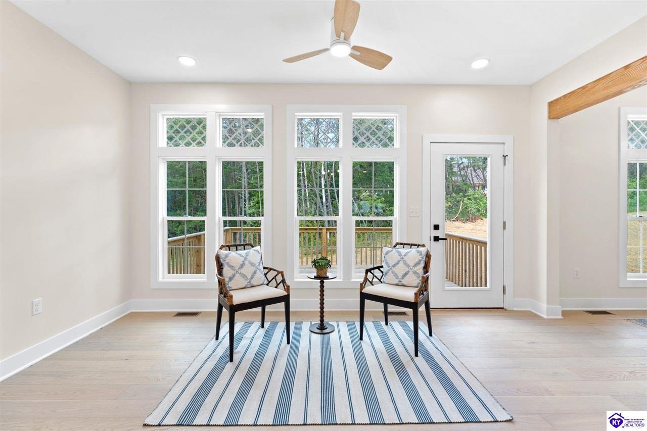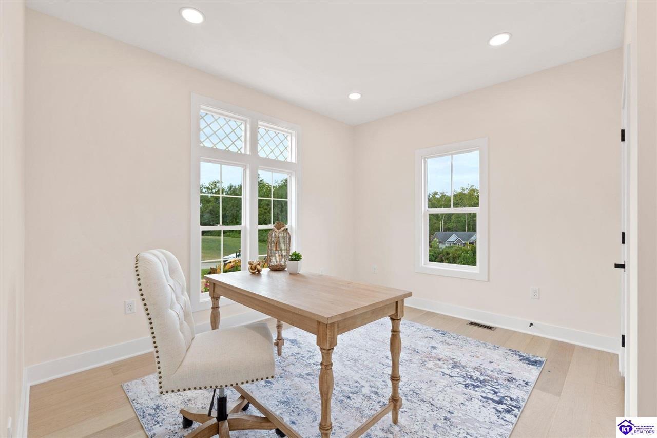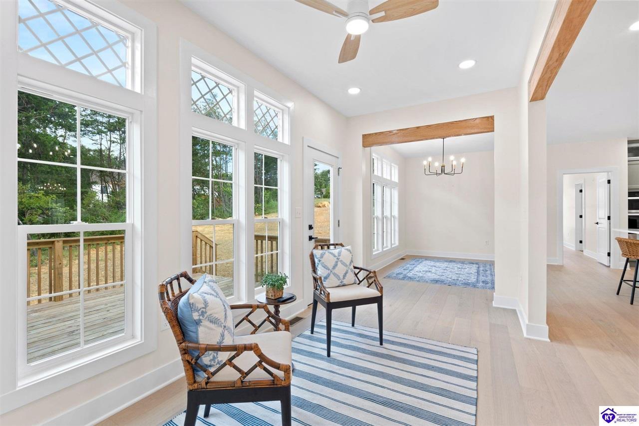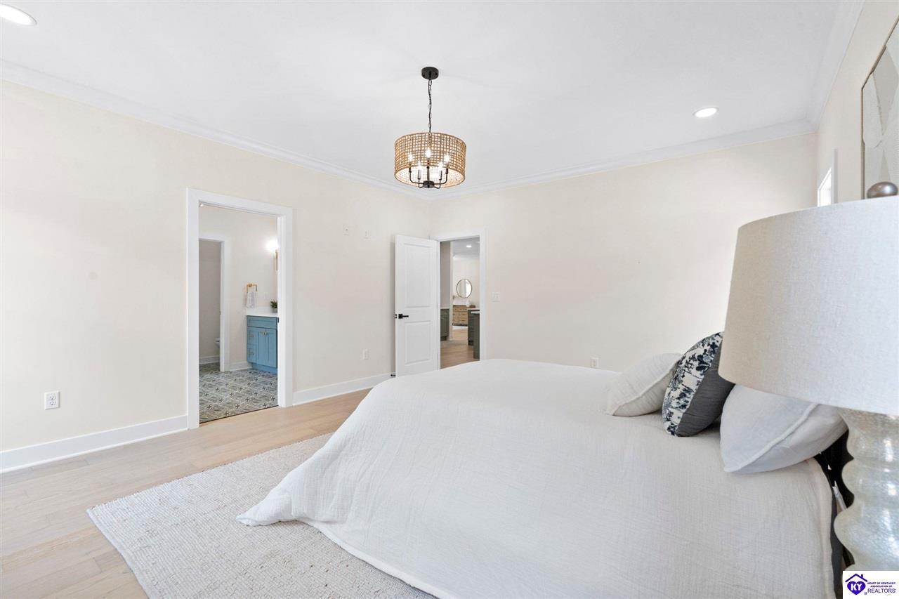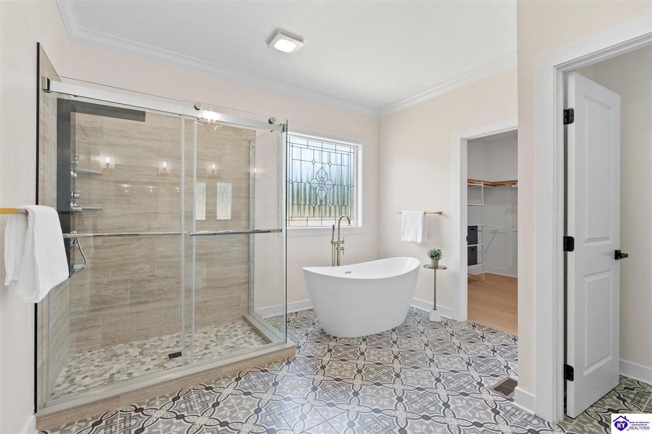 Realtor's notes: Welcome to this stunning 5-bedroom, 3-bath custom home offering 4,270 square feet of living space on over an acre in one of Hardin County’s most desirable subdivisions. Featuring new, custom-level construction with high-end finishes and exceptional craftsmanship throughout, this beautifully designed property combines luxury, space, and privacy while remaining conveniently located just minutes from Elizabethtown Country Club, shopping, dining, and quick access to I-65. Inside, the home showcases a bright open-concept floor plan with white oak hardwood flooring, a formal dining room with wood beam ceilings and custom trim, and a sunroom filled with natural light—perfect for relaxing or entertaining. The chef’s kitchen serves as the heart of the home and features quartz countertops, premium custom cabinetry, a large island with seating for six or more, a walk-in pantry, and a spacious breakfast area designed for gatherings. The main-level primary suite offers a private retreat with a freestanding soaking tub, tiled walk-in shower, dual vanities, and a spacious walk-in closet. Two additional bedrooms and a full bathroom are also located on the main level, providing flexible living options. The finished walkout basement expands the home’s functionality with two additional bedrooms, a full bathroom, and versatile living space ideal for a family room, home theater, home gym, or guest suite, along with abundant storage. Step outside to enjoy the private back deck overlooking the expansive tree-lined backyard, offering ample space for a future pool, outdoor kitchen, or custom outdoor living area. This exceptional property offers the perfect combination of luxury, privacy, modern design, and convenient access to everything Elizabethtown has to offer.