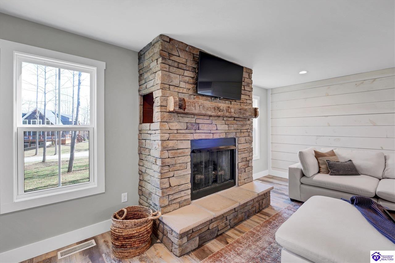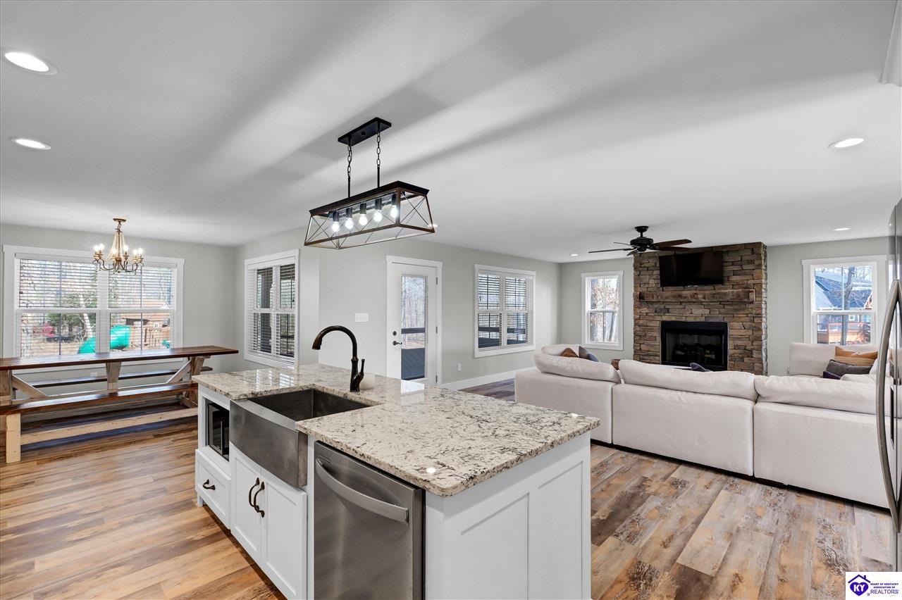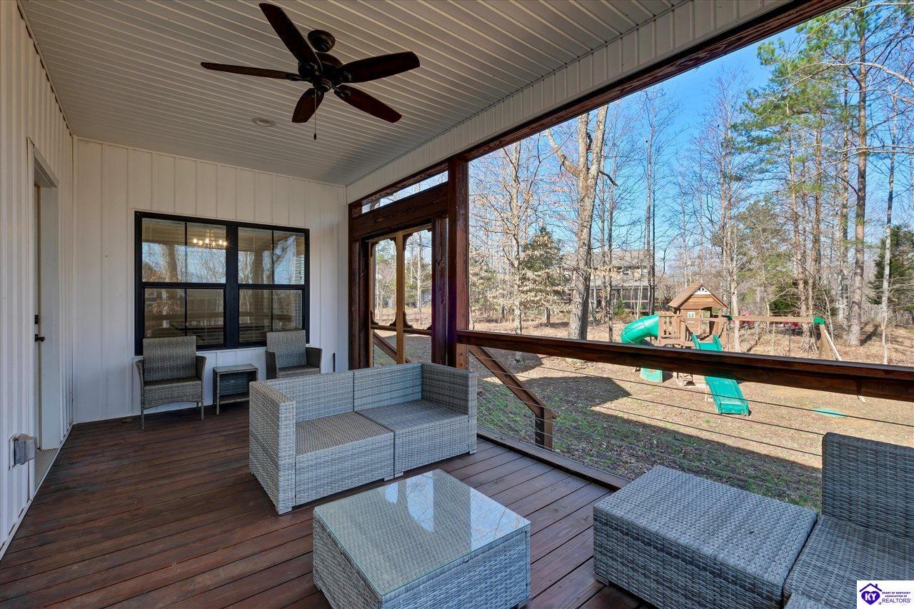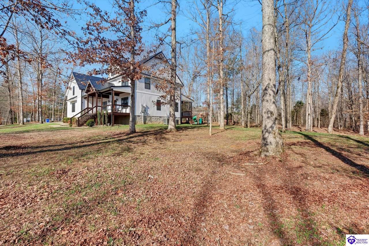 Realtor's notes: Welcome to 175 Falls Lane in Leitchfield, KY, where comfort, style, and lake life come together just minutes from Nolin Lake and a short drive to Moutardier Marina and boat ramp! After a fun-filled day on the water, come home to your own private retreat. Relax in the inground pool under starlit skies, or unwind on the screened rear porch surrounded by peaceful views of nature. Built just 5 years ago, this home truly shows like new and is loaded with upgraded finishes and thoughtful design throughout. An inviting front porch welcomes you into a spacious foyer with an adjoining flex room, perfect for a home office, craft room, or play area. The open-concept layout is ideal for both everyday living and entertaining. The great room features a stunning creekstone-faced fireplace and flows seamlessly into the beautifully appointed kitchen, complete with granite countertops, stainless steel appliances, a center island with farmhouse sink, abundant cabinetry, and a bright, sunlit dining area. The main-level primary suite is a true sanctuary, offering a luxurious bath with walk-in shower, garden tub, double bowl vanity, and dressing table area. The spacious walk-in closet conveniently connects directly to the laundry room. A functional mudroom with built-in cubbies sits just off the attached two-car garage, ideal for lake days and busy households. Upstairs, you'll find a versatile loft area, three additional bedrooms, and a bonus room currently set up as a bunk room, ideal for hosting family and friends after a day at the lake. High speed fiber internet available so you can work and play. Located in a short-term rental friendly community, this property offers excellent potential as a vacation rental or investment property while still serving as your own private lake getaway. If you've been searching for a nearly new home with upgraded features, poolside relaxation, and easy access to lake adventures, this is it. Schedule your showing today and start living the lake lifestyle you've been dreaming about!