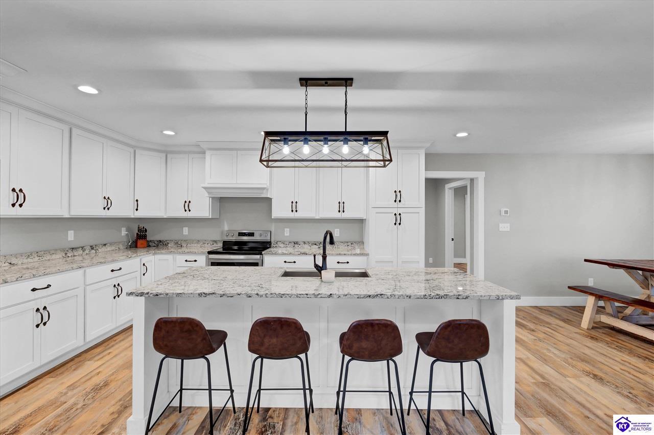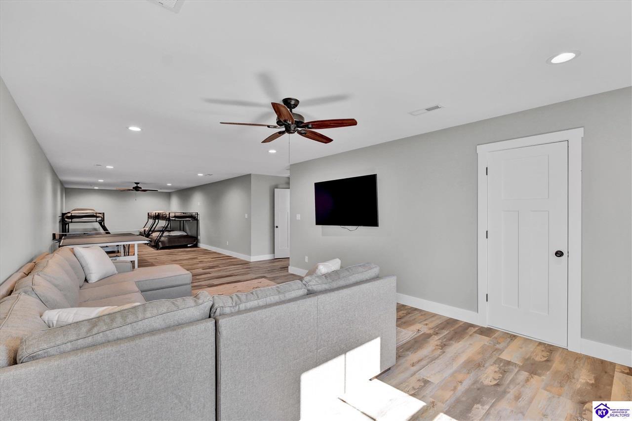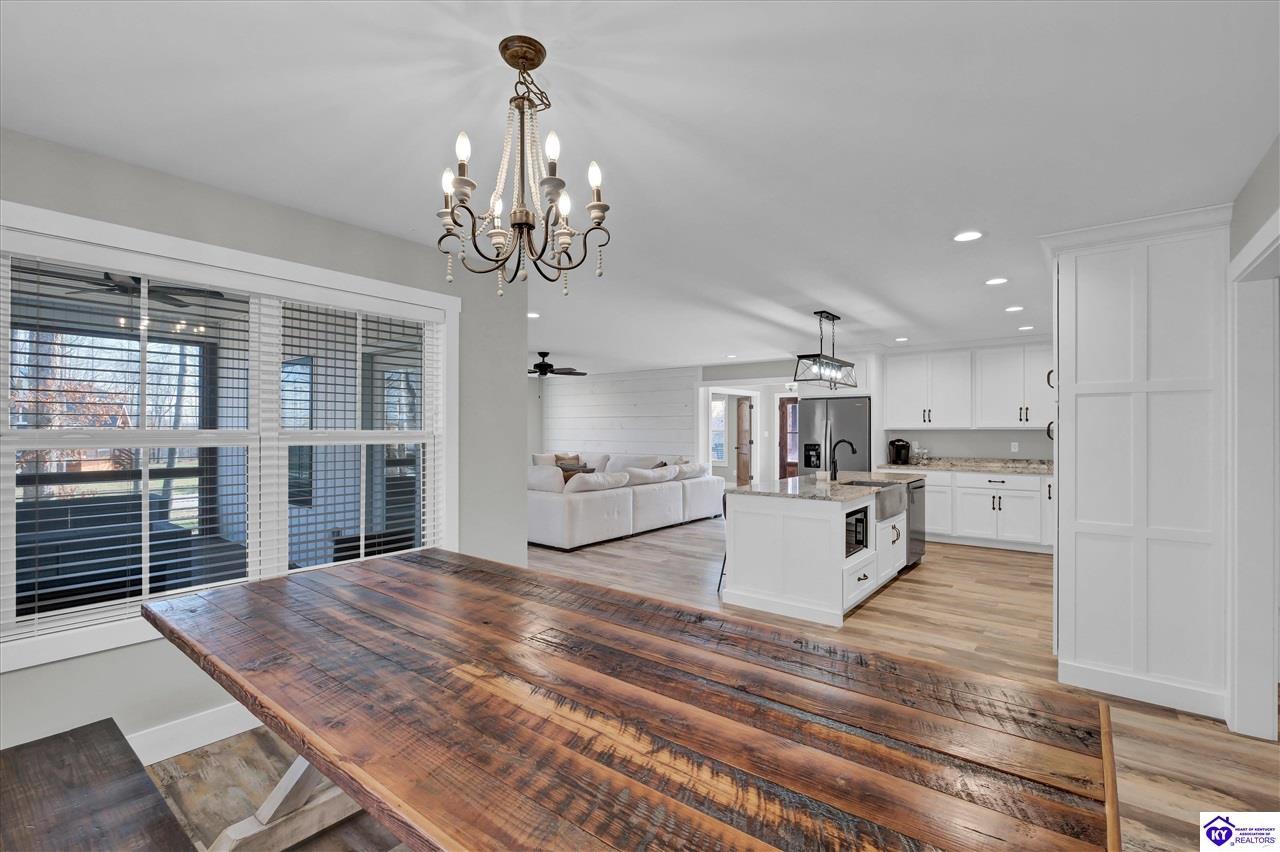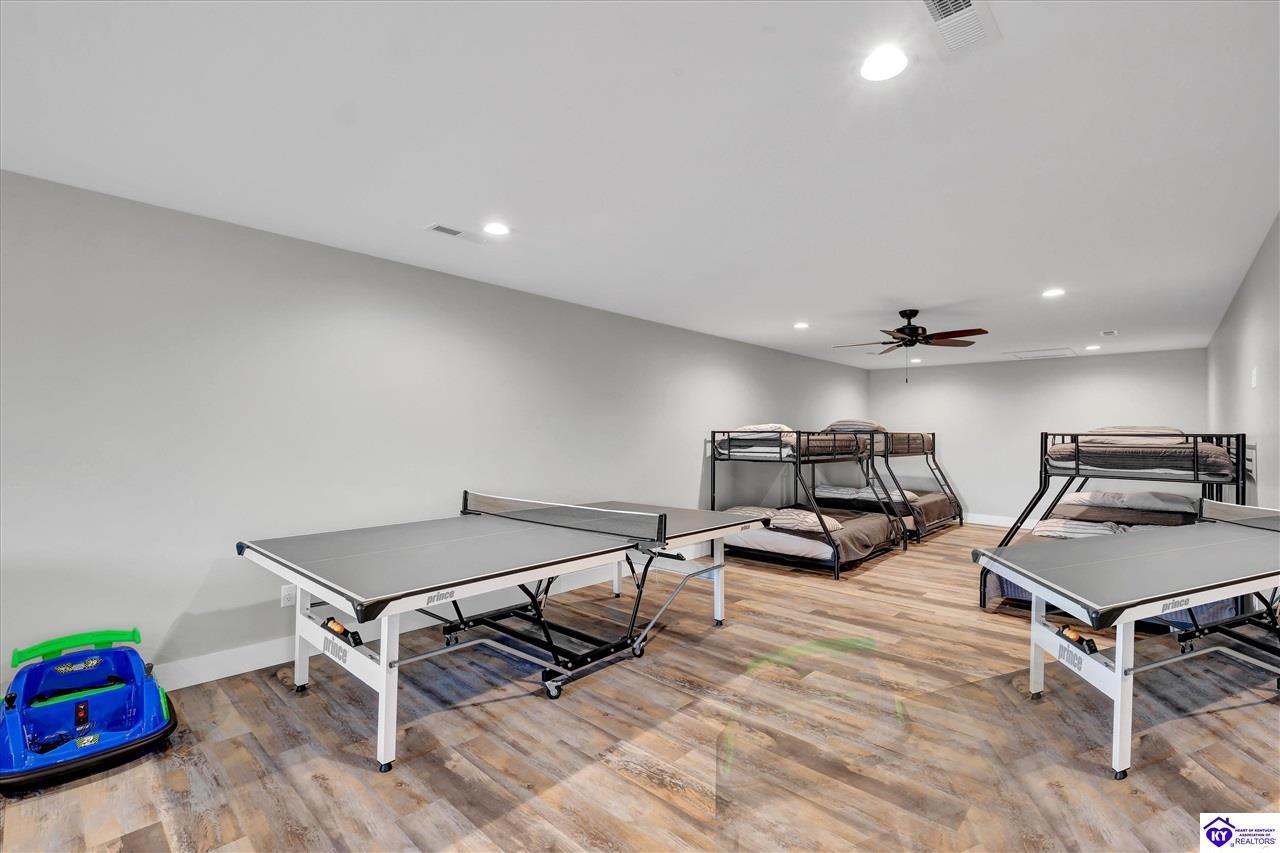 Realtor's notes: Welcome to 175 Falls Lane in Leitchfield, KY, where comfort, style, and lake life come together just minutes from Nolin Lake and a short drive to Moutardier Marina and boat ramp! After a fun-filled day on the water, come home to your own private retreat. Relax in the inground pool under starlit skies, or unwind on the screened rear porch surrounded by peaceful views of nature. Built just 5 years ago, this home truly shows like new and is loaded with upgraded finishes and thoughtful design throughout. An inviting front porch welcomes you into a spacious foyer with an adjoining flex room, perfect for a home office, craft room, or play area. The open-concept layout is ideal for both everyday living and entertaining. The great room features a stunning creekstone-faced fireplace and flows seamlessly into the beautifully appointed kitchen, complete with granite countertops, stainless steel appliances, a center island with farmhouse sink, abundant cabinetry, and a bright, sunlit dining area. The main-level primary suite is a true sanctuary, offering a luxurious bath with walk-in shower, garden tub, double bowl vanity, and dressing table area. The spacious walk-in closet conveniently connects directly to the laundry room. A functional mudroom with built-in cubbies sits just off the attached two-car garage, ideal for lake days and busy households. Upstairs, you'll find a versatile loft area, three additional bedrooms, and a bonus room currently set up as a bunk room, ideal for hosting family and friends after a day at the lake. High speed fiber internet available so you can work and play. Located in a short-term rental friendly community, this property offers excellent potential as a vacation rental or investment property while still serving as your own private lake getaway. If you've been searching for a nearly new home with upgraded features, poolside relaxation, and easy access to lake adventures, this is it. Schedule your showing today and start living the lake lifestyle you've been dreaming about!