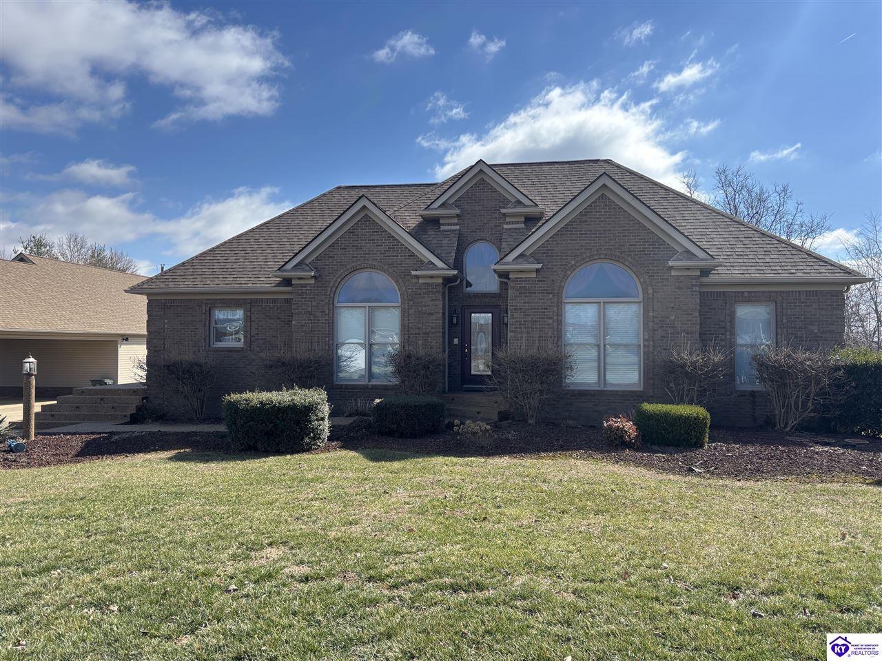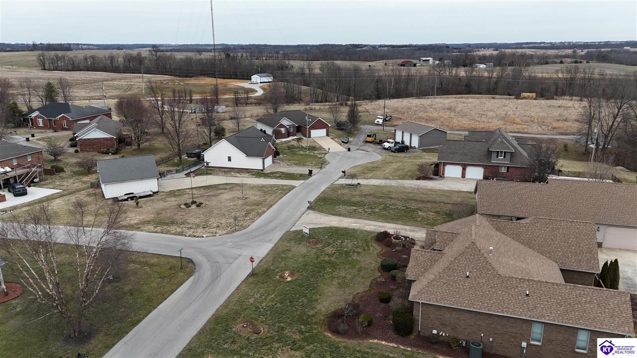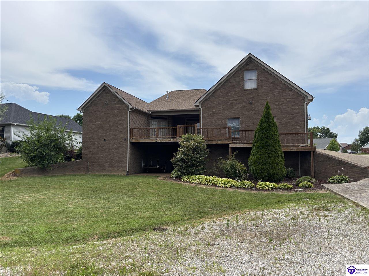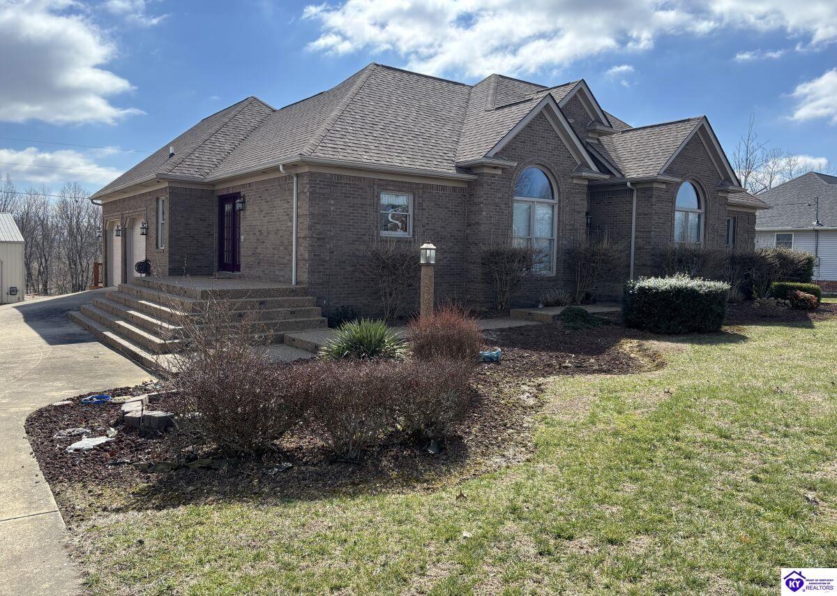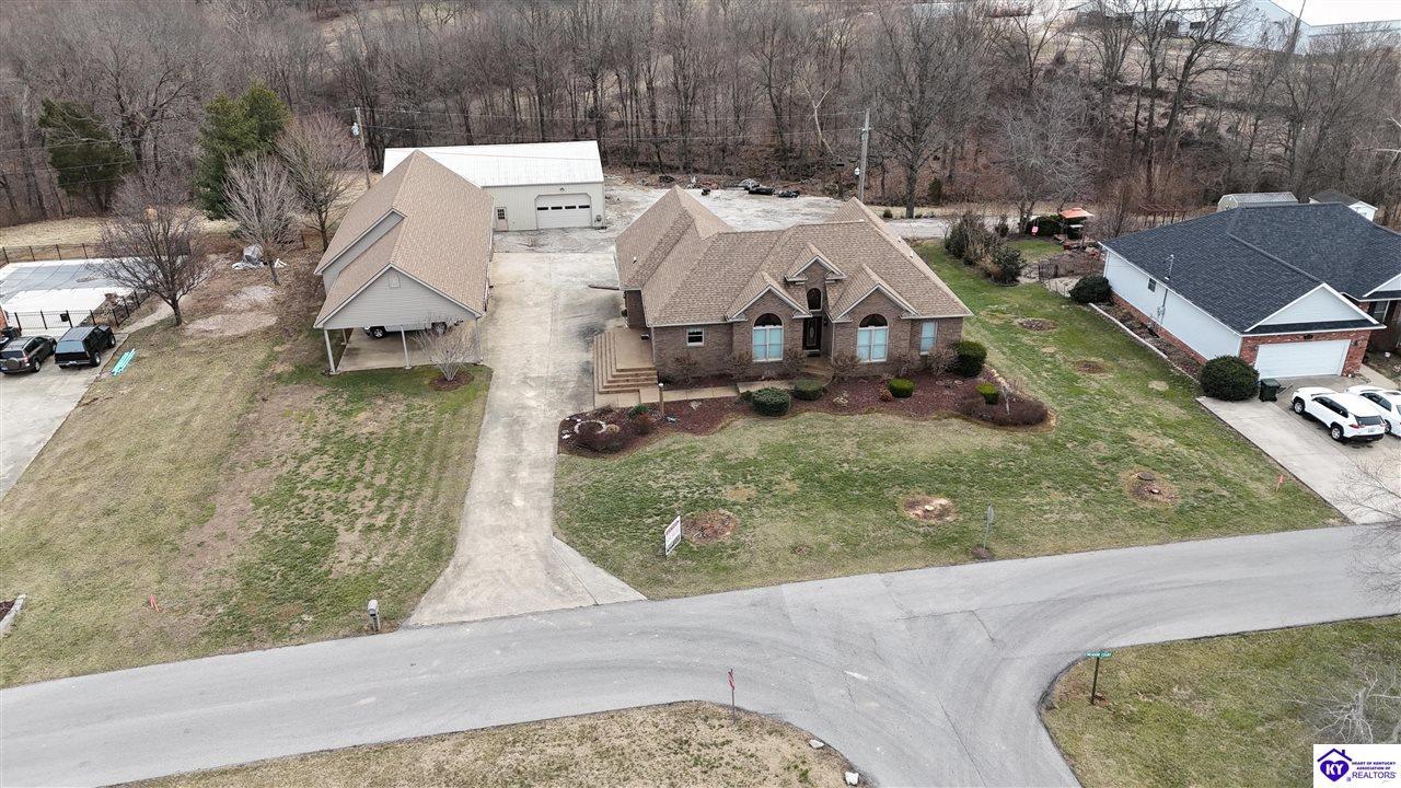 Realtor's notes: Going on the auction block, selling by online bidding only, will be a 1 1/2 story brick home having 5 bedrooms, 2 ½ baths, approximately 4,820 square feet (per PVA), and a full walkout basement. The main floor has approximately 1,824 square feet and consists of a kitchen/dining combination with ample cabinetry, utility room, half bath off the kitchen, living room with a natural gas fireplace, dining room, foyer, master bedroom with a full bath and walk-in closet, two additional bedrooms, another full bath, and a two-car attached garage. The upper level has approximately 360 square feet and consists of a single bedroom, storage room, and is accessed by way of a banister staircase. The full finished basement has approximately 2,636 square feet and consists of a living room, office/den, two storage rooms, and one bedroom. The home is heated by a natural gas furnace, has central air, hardwood, carpet and tile flooring, chandelier lighting, lots of closet space, and Hardinsburg City water and sewer. Other features include a 7 ft. x 19 ft. exposed aggregate concrete lighted patio and a 19 ft. x 22 ft. covered lower patio area with a storage room, 19 ft. x 22 ft. and 4 ft. x 30 ft. wooden back decks, exposed aggregate concrete outdoor lamp post, lighted sidewalks, aesthetic landscaping, and concrete driveway. Improvements include a 32 ft. x 52 ft. detached insulated garage having concrete floors, electric, storage loft, 22 ft. x 25 ft. addition, and a single garage door; a 34 ft. x 40 ft. detached insulated metal garage having concrete floors, electric, 14 ft. x 59 ft. equipment lean-to, and two garage doors; and a 27 ft. x 29 ft. two-car concrete carport. The home and improvements are situated on 1.501 acres fronting Meadow Court within the city limits of Hardinsburg, KY. The property is zoned R-1 Residential.