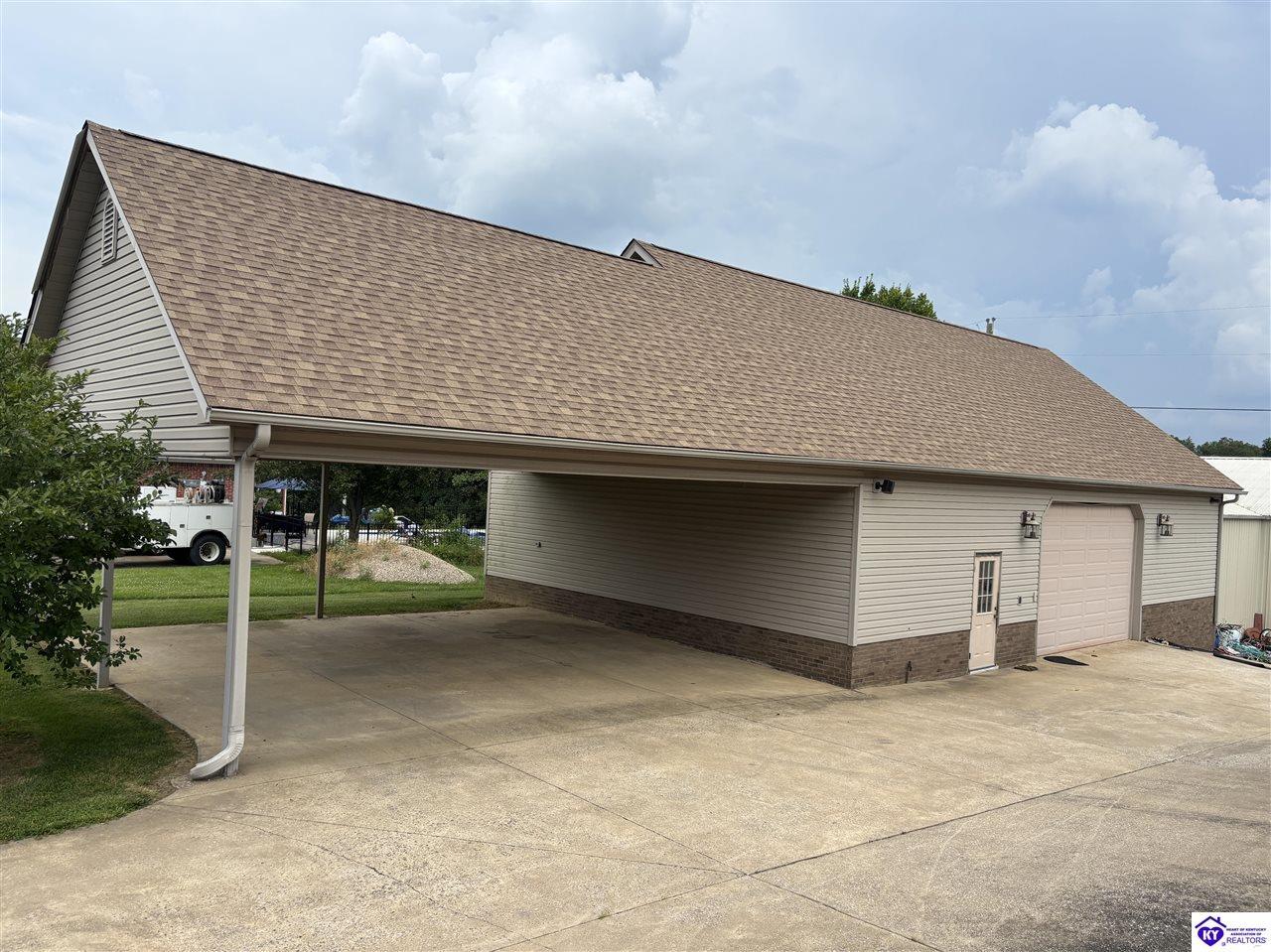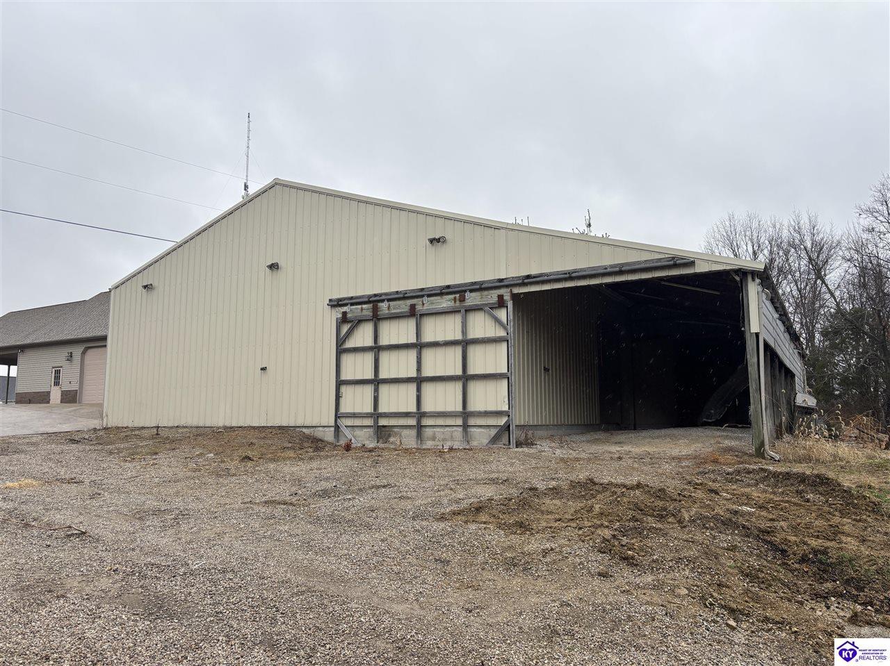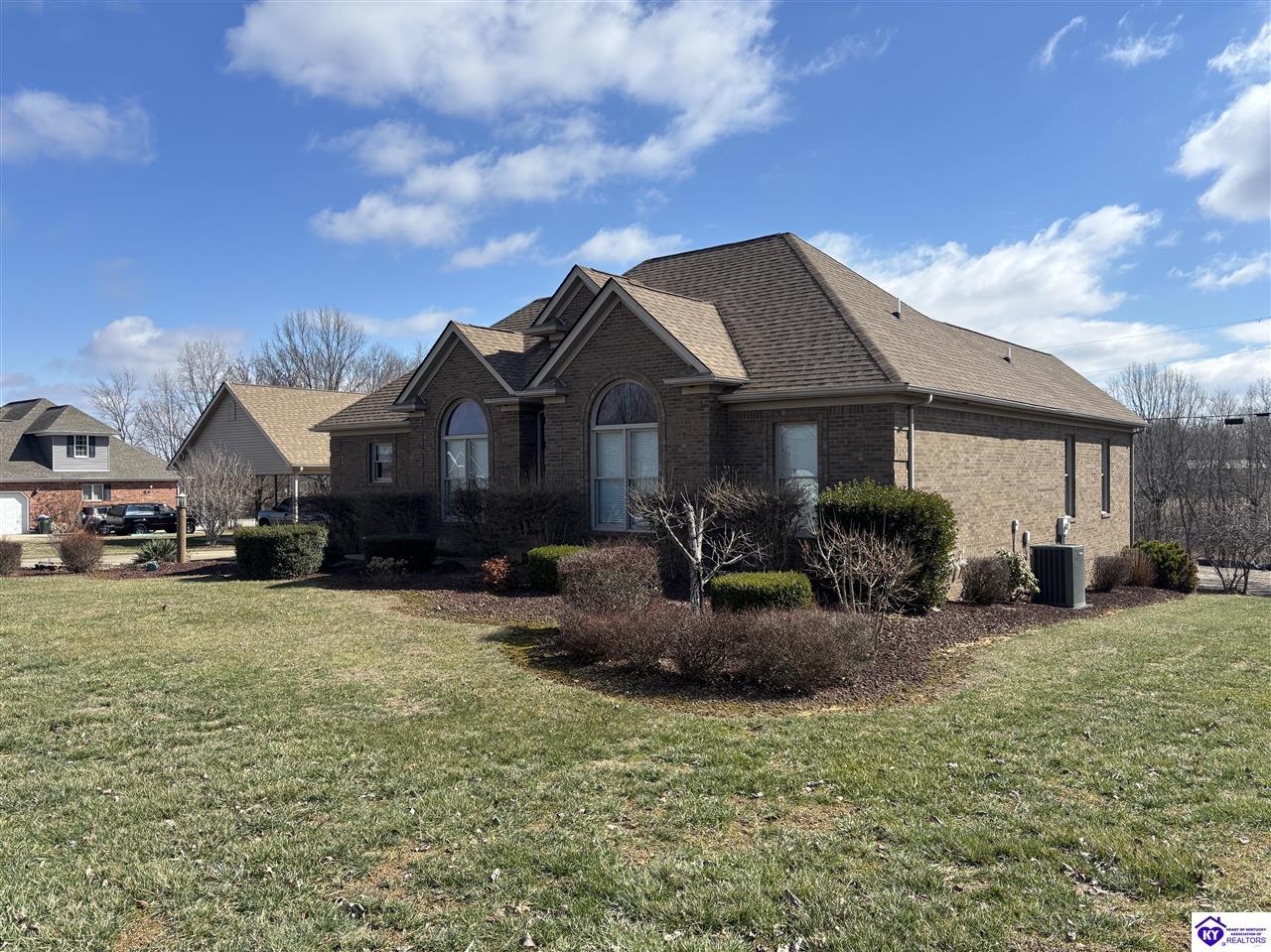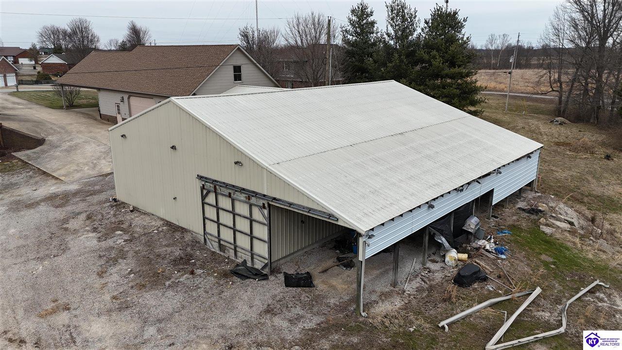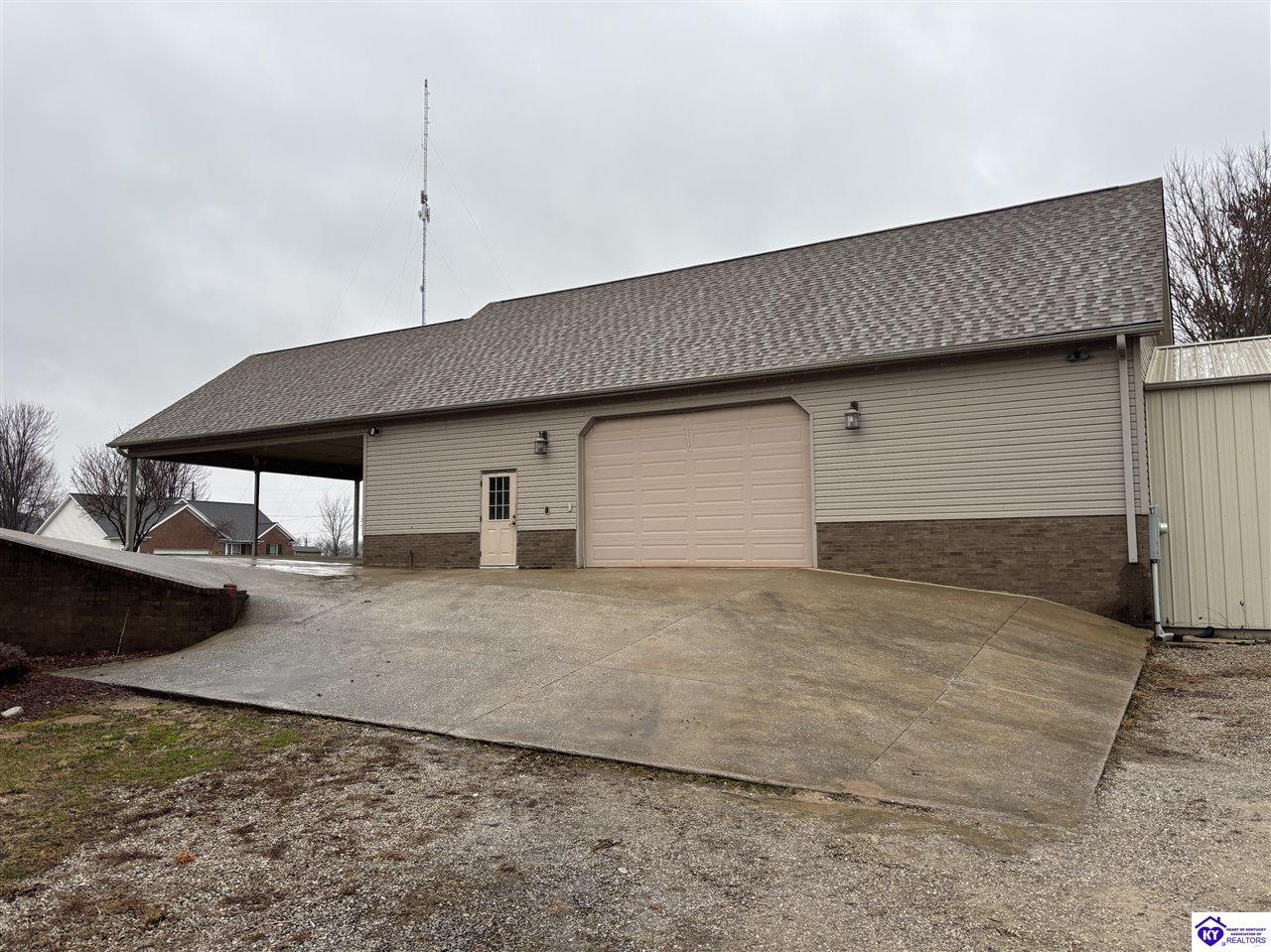 Realtor's notes: Going on the auction block, selling by online bidding only, will be a 1 1/2 story brick home having 5 bedrooms, 2 ½ baths, approximately 4,820 square feet (per PVA), and a full walkout basement. The main floor has approximately 1,824 square feet and consists of a kitchen/dining combination with ample cabinetry, utility room, half bath off the kitchen, living room with a natural gas fireplace, dining room, foyer, master bedroom with a full bath and walk-in closet, two additional bedrooms, another full bath, and a two-car attached garage. The upper level has approximately 360 square feet and consists of a single bedroom, storage room, and is accessed by way of a banister staircase. The full finished basement has approximately 2,636 square feet and consists of a living room, office/den, two storage rooms, and one bedroom. The home is heated by a natural gas furnace, has central air, hardwood, carpet and tile flooring, chandelier lighting, lots of closet space, and Hardinsburg City water and sewer. Other features include a 7 ft. x 19 ft. exposed aggregate concrete lighted patio and a 19 ft. x 22 ft. covered lower patio area with a storage room, 19 ft. x 22 ft. and 4 ft. x 30 ft. wooden back decks, exposed aggregate concrete outdoor lamp post, lighted sidewalks, aesthetic landscaping, and concrete driveway. Improvements include a 32 ft. x 52 ft. detached insulated garage having concrete floors, electric, storage loft, 22 ft. x 25 ft. addition, and a single garage door; a 34 ft. x 40 ft. detached insulated metal garage having concrete floors, electric, 14 ft. x 59 ft. equipment lean-to, and two garage doors; and a 27 ft. x 29 ft. two-car concrete carport. The home and improvements are situated on 1.501 acres fronting Meadow Court within the city limits of Hardinsburg, KY. The property is zoned R-1 Residential.