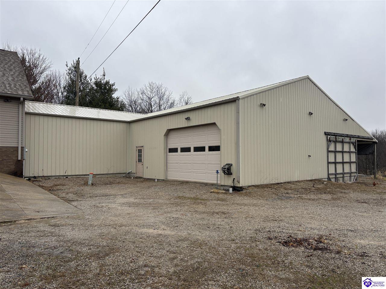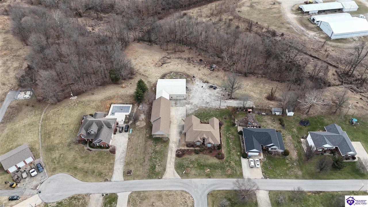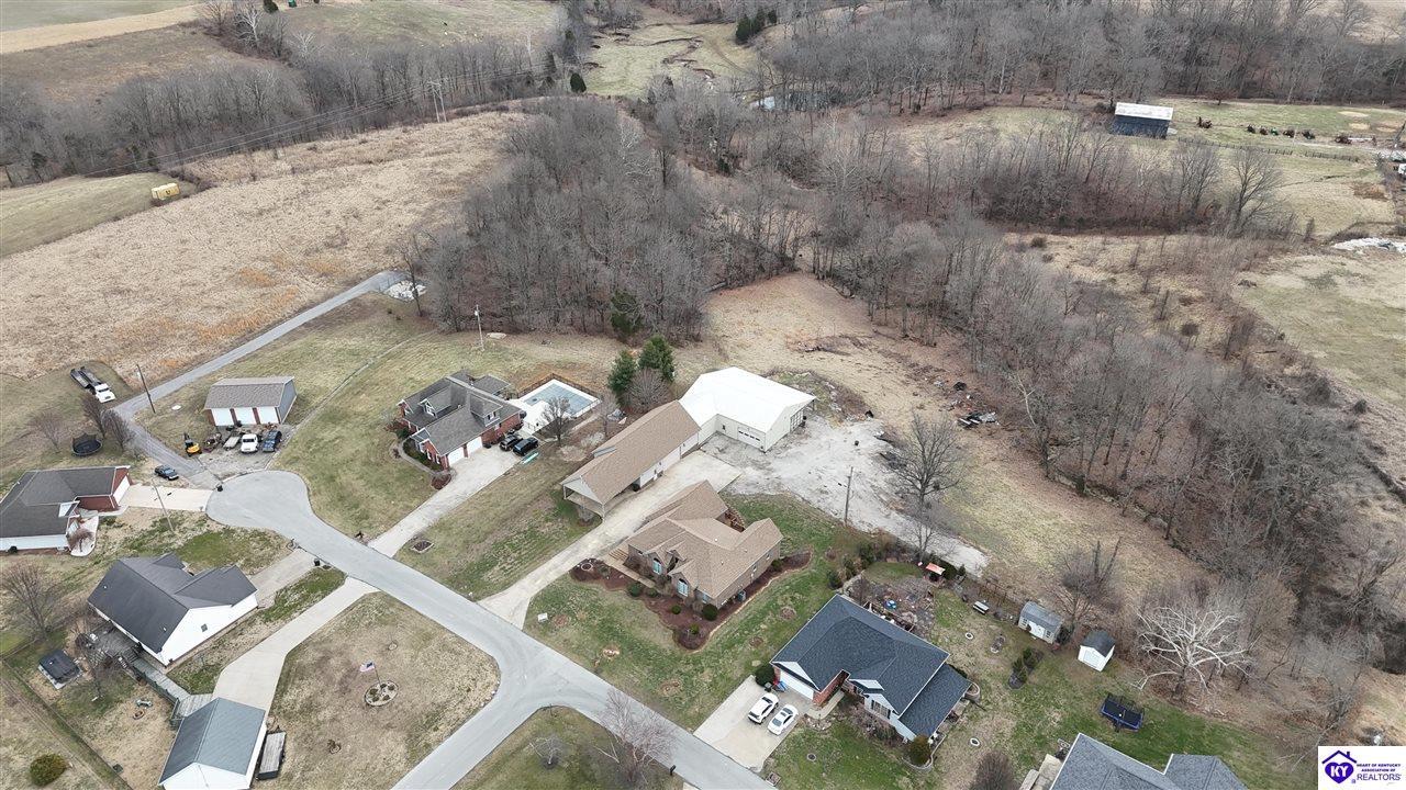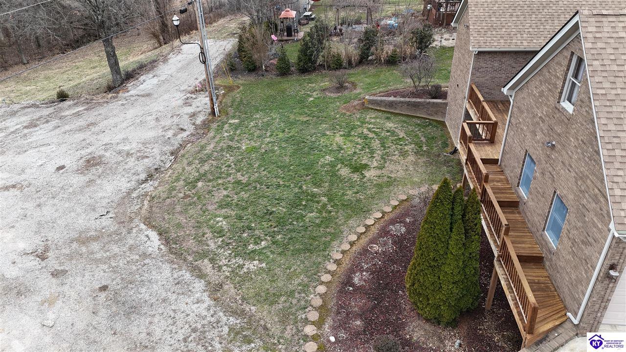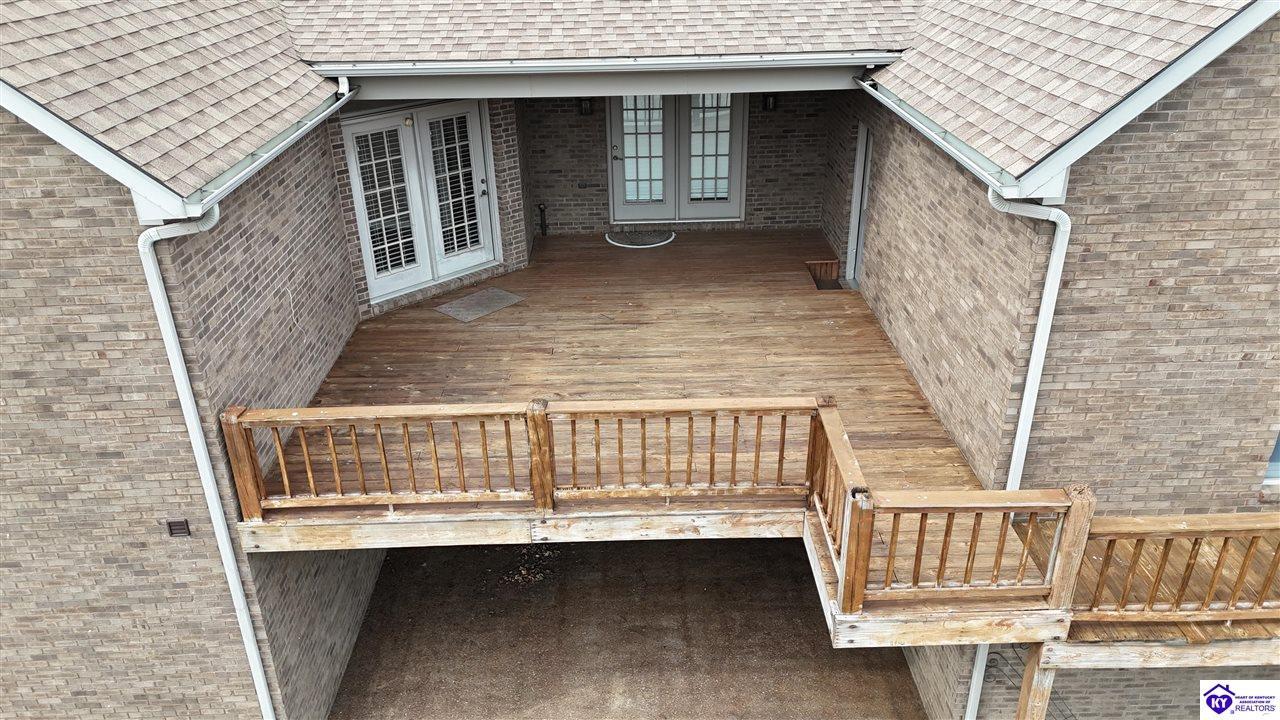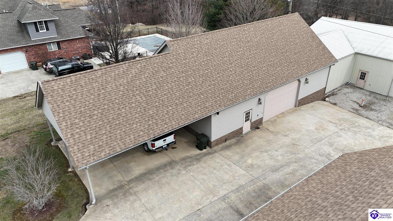 Realtor's notes: Going on the auction block, selling by online bidding only, will be a 1 1/2 story brick home having 5 bedrooms, 2 ½ baths, approximately 4,820 square feet (per PVA), and a full walkout basement. The main floor has approximately 1,824 square feet and consists of a kitchen/dining combination with ample cabinetry, utility room, half bath off the kitchen, living room with a natural gas fireplace, dining room, foyer, master bedroom with a full bath and walk-in closet, two additional bedrooms, another full bath, and a two-car attached garage. The upper level has approximately 360 square feet and consists of a single bedroom, storage room, and is accessed by way of a banister staircase. The full finished basement has approximately 2,636 square feet and consists of a living room, office/den, two storage rooms, and one bedroom. The home is heated by a natural gas furnace, has central air, hardwood, carpet and tile flooring, chandelier lighting, lots of closet space, and Hardinsburg City water and sewer. Other features include a 7 ft. x 19 ft. exposed aggregate concrete lighted patio and a 19 ft. x 22 ft. covered lower patio area with a storage room, 19 ft. x 22 ft. and 4 ft. x 30 ft. wooden back decks, exposed aggregate concrete outdoor lamp post, lighted sidewalks, aesthetic landscaping, and concrete driveway. Improvements include a 32 ft. x 52 ft. detached insulated garage having concrete floors, electric, storage loft, 22 ft. x 25 ft. addition, and a single garage door; a 34 ft. x 40 ft. detached insulated metal garage having concrete floors, electric, 14 ft. x 59 ft. equipment lean-to, and two garage doors; and a 27 ft. x 29 ft. two-car concrete carport. The home and improvements are situated on 1.501 acres fronting Meadow Court within the city limits of Hardinsburg, KY. The property is zoned R-1 Residential.