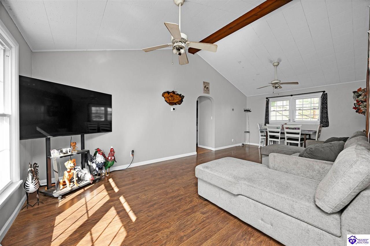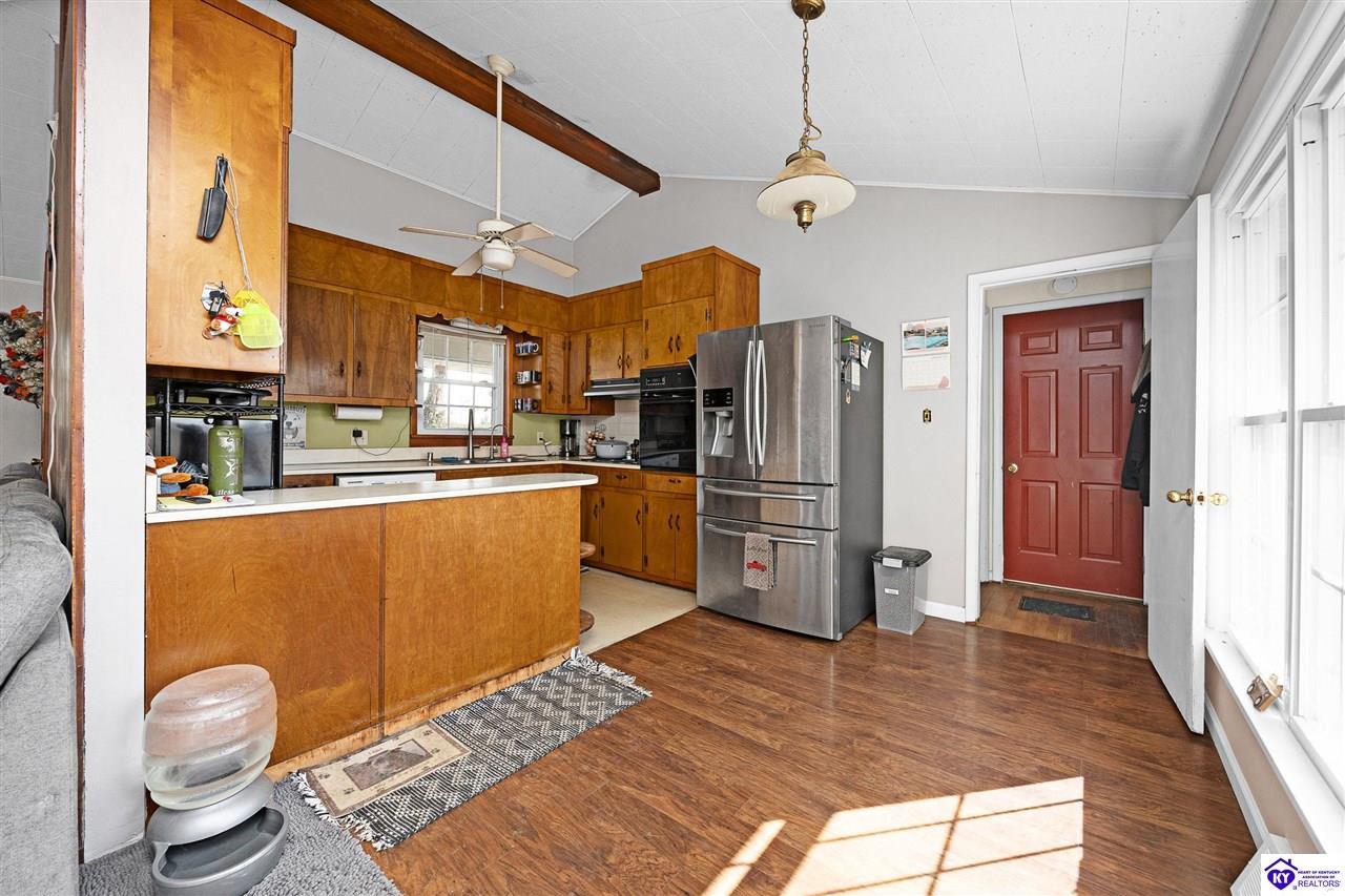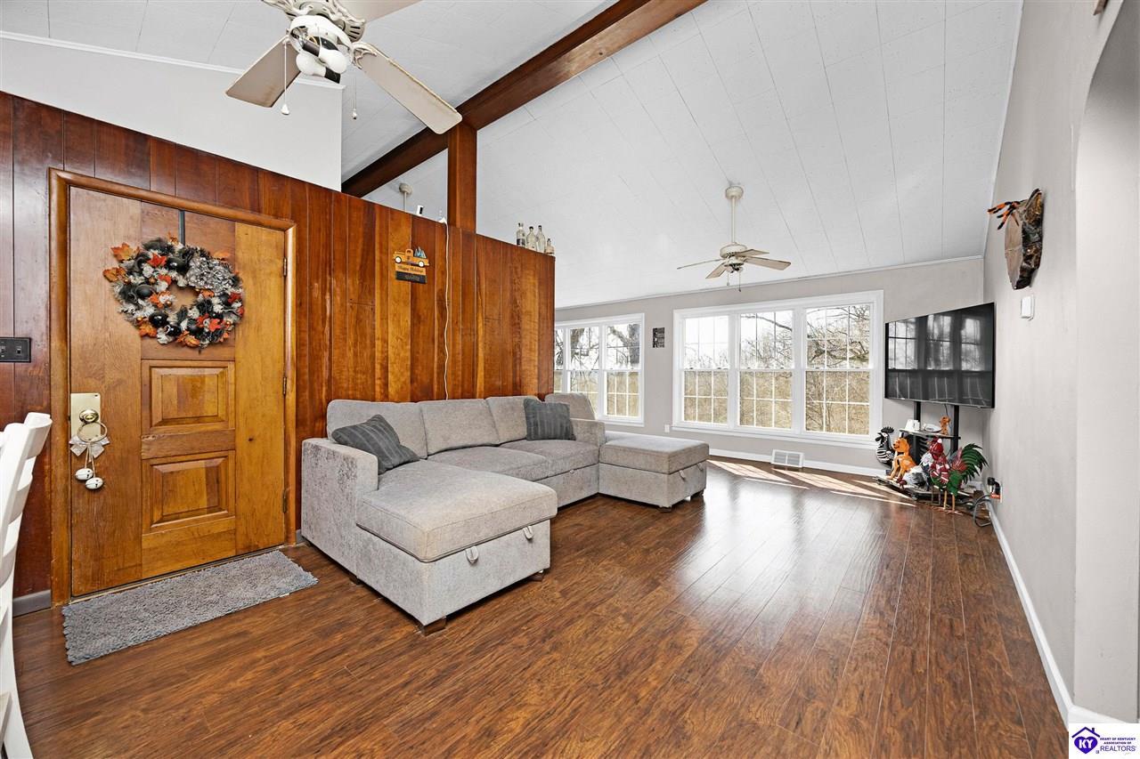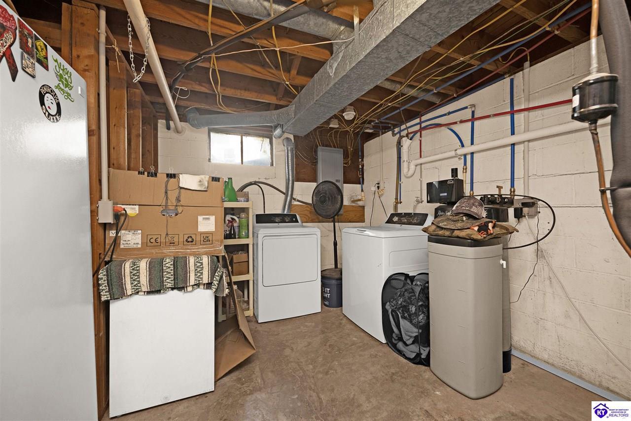 Realtor's notes: Welcome to 105 Lewis Court! This 3 bedroom, 1 bath home offers comfortable living with additional space thanks to a partially finished basement featuring a family room and third bedroom. A covered front porch provides a welcoming place to relax and enjoy the neighborhood. Conveniently located within walking distance to the center of Greensburg and the town square, the home offers easy access to local shops, dining, and community amenities. Major updates have already been completed, adding value and peace of mind for the next owner. In 2025, the home received a new roof and new garbage disposal. In 2024, several important system upgrades were completed including a new HVAC system, new water heater, updated plumbing, and electrical improvements such as new lines into the home, panel grounding, and dedicated electrical added for freezers. Additional electrical was also installed where the pellet stove had been located. The home is equipped with LeafFilter gutter guards with a lifetime warranty and also includes a whole house fan. The partially finished basement adds flexible living space and features a rain soft filtration system and water softener that will remain with the home. Please note that the washer, dryer, stand up freezer, deep freezer, gun safe, all barbecues, upstairs refrigerator, and pellet stove will not convey with the property. With numerous recent updates and additional living space, this home offers comfort and practicality. Schedule your showing today!
