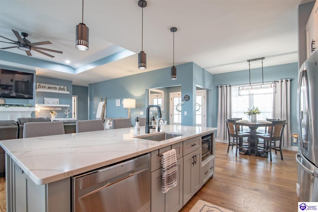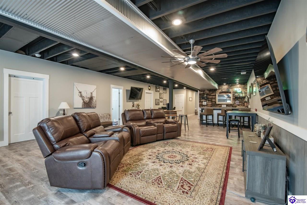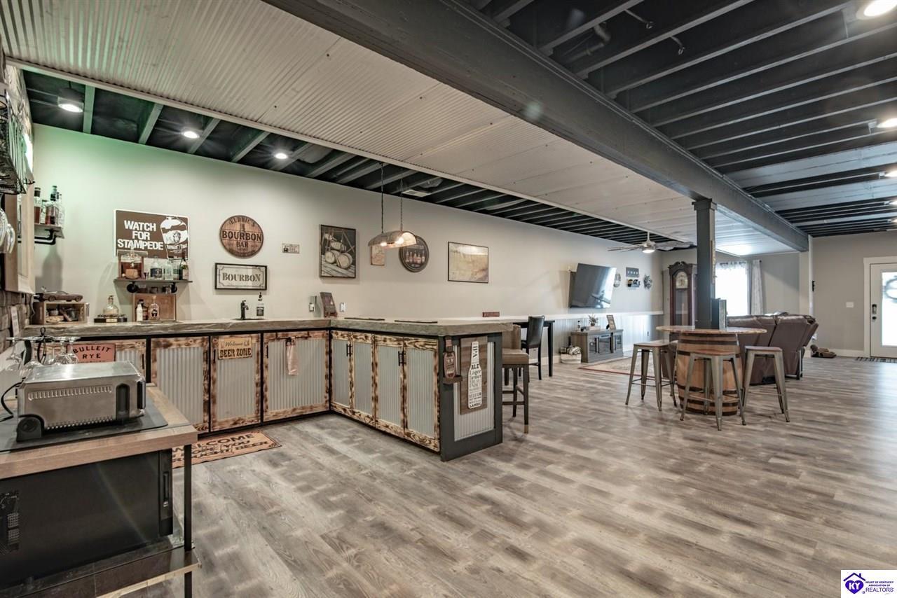 Realtor's notes: Step into extraordinary living with this fabulous sprawling ranch that delivers true wow factor from the moment you arrive. Designed for both luxury and comfort, this stunning home offers five spacious bedrooms and four full bathrooms, creating the perfect blend of elegance and functionality. The main level showcases gorgeous engineered hardwood flooring and a bright, open layout that feels both grand and welcoming. The heart of the home is the beautifully designed kitchen featuring sleek quartz countertops, abundant cabinetry, and plenty of space for gathering, entertaining, and everyday living. Every detail throughout the home reflects quality craftsmanship and thoughtful design. The fully finished lower level is truly exceptional and elevates this home to another level. Here you’ll find an incredible custom bar area that serves as the centerpiece of the space, perfect for hosting unforgettable gatherings. The basement also features a large family room, two full bathrooms, a private bedroom, and a dedicated workout area, creating an ideal setup for entertaining, guests, or multi-generational living. With generous living spaces, high-end finishes, and a layout designed for both entertaining and relaxation, this home is nothing short of a showstopper. Every corner offers style, comfort, and that undeniable “wow” factor buyers are searching for. A rare opportunity to own a truly remarkable home that impresses at every turn.