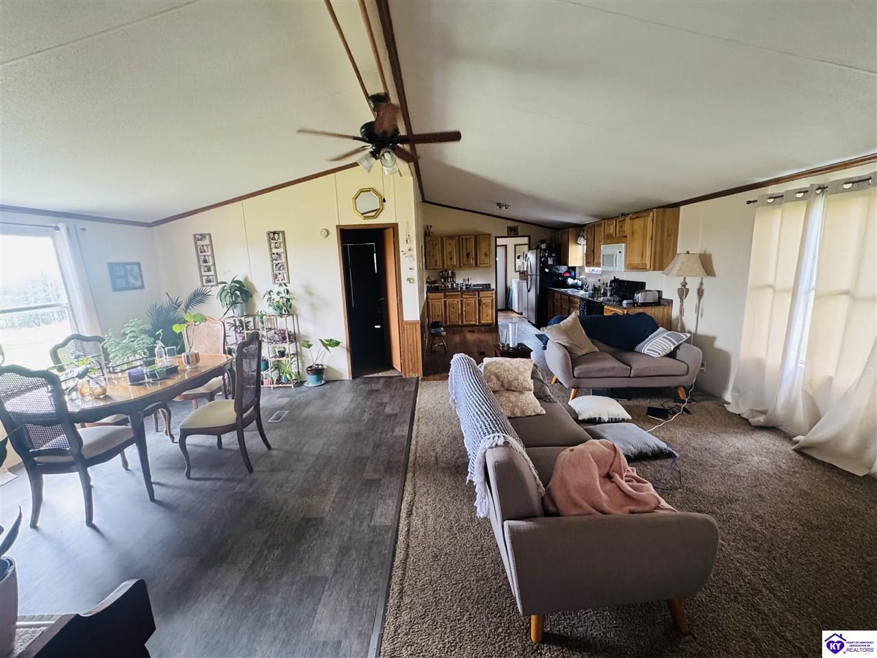Realtor's notes: Enjoy the space and privacy of country living with this 3 bedroom, 2 bathroom home situated on 4 beautiful acres just outside Campbellsville. The home features an open concept layout that flows seamlessly between the living room, kitchen, and dining area, creating a spacious feel that’s perfect for everyday living and entertaining. The primary suite includes a large bathroom with a tiled walk-in shower, adding a modern touch to the home. Step outside to the large back deck, ideal for relaxing, grilling, entertaining guests, or simply enjoying the peaceful surroundings and frequent wildlife that pass through the property. With plenty of room to spread out, the acreage offers great potential for a mini farm, space for animals, or simply enjoying the outdoors. This property provides the perfect combination of comfortable living space, privacy, and land to make it your own.