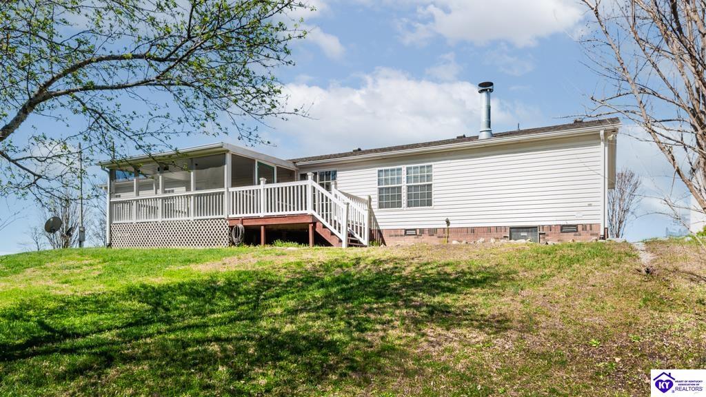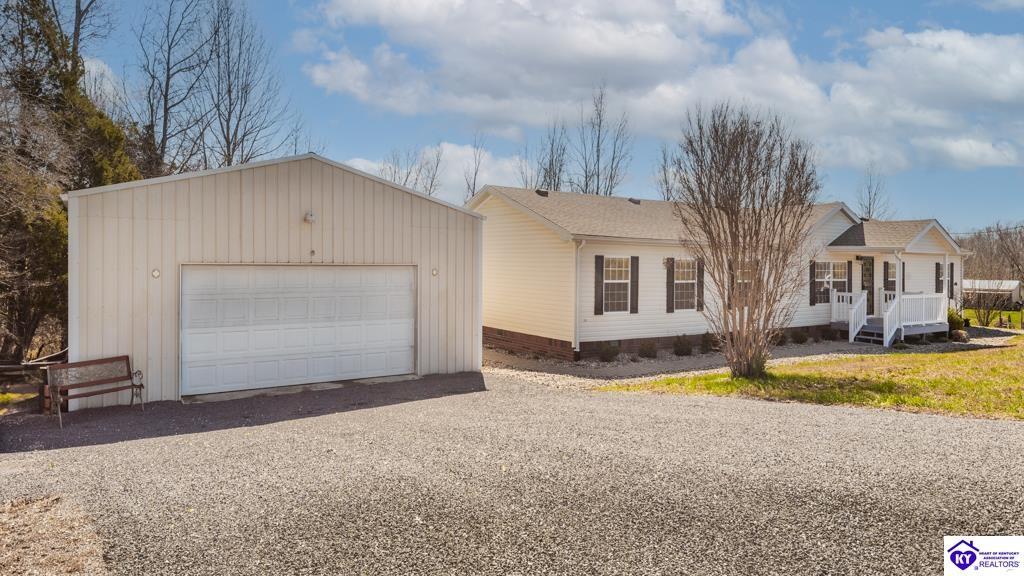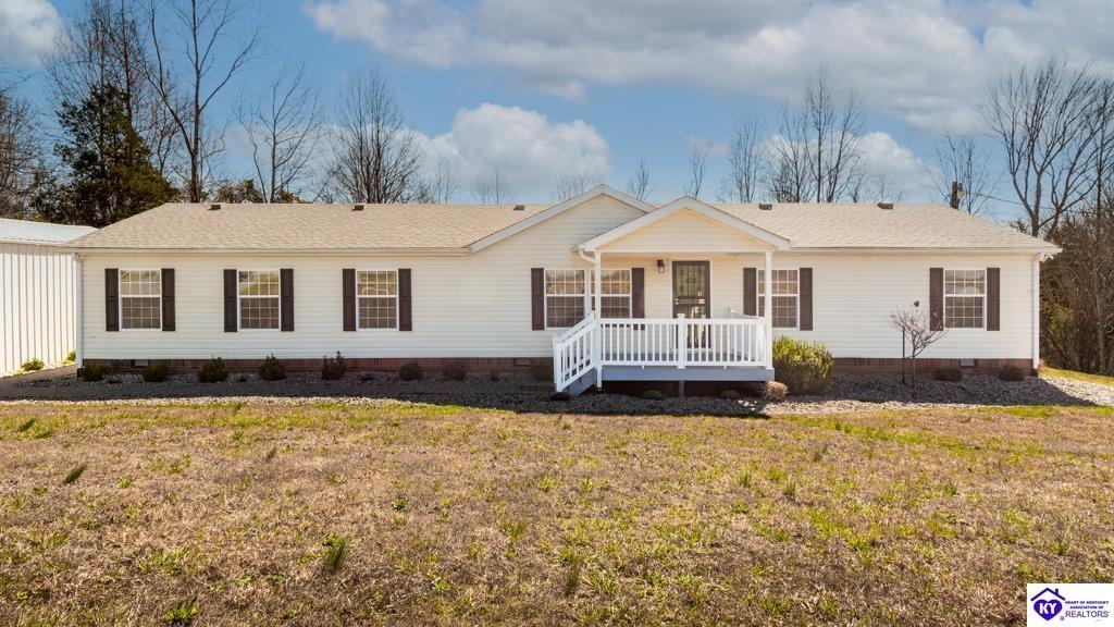 Realtor's notes: Welcome to 420 Pleasant Valley Rd in Campbellsville, KY. This well-maintained 2005 manufactured home offers 2,016 sq ft of living space on a peaceful 1-acre lot, providing the space and quiet many buyers seek in rural Kentucky. The home features a desirable split floor plan with 4 bedrooms and 2 full bathrooms, including a spacious primary suite with a private en-suite bath featuring a newly tiled shower and relaxing garden tub. Outdoor living is a highlight with a covered front porch and a large covered and screened sunroom—perfect for relaxing or entertaining. The property also includes a detached two-car garage offering excellent storage, parking, or workshop space. Irrigation drains help manage water around the home. Property appears eligible for FHA, VA, USDA, and conventional loans