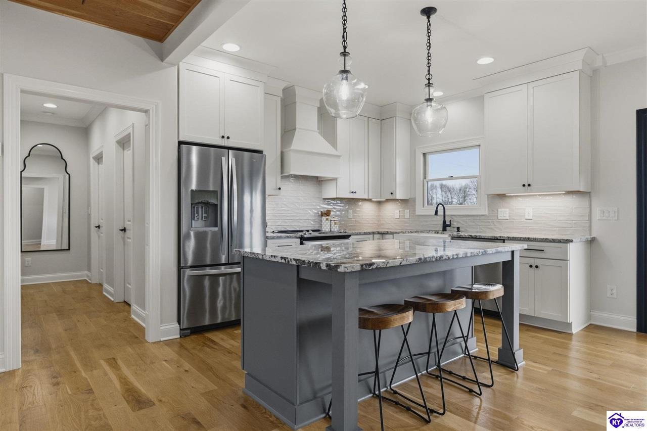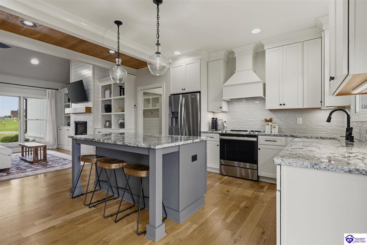 Realtor's notes: Welcome to a home that feels like it was meant to be lived in, loved, and remembered. Nestled in the highly sought-after Briarwood Forest subdivision, this stunning custom-built ranch by respected builder Chuck Foushee blends craftsmanship, warmth, and thoughtful design in a way that feels both luxurious and welcoming from the moment you step inside. Sunlight pours through oversized windows, filling the home with warmth and natural light. The open-concept layout with a split-bedroom floor plan creates the perfect balance of connection and privacy, making everyday living feel both comfortable and effortless. The heart of the home is the vaulted living room, where a beautiful brick fireplace anchors the space and invites cozy evenings, holiday gatherings, and quiet nights at home. Just steps away, the kitchen blends beauty and function with custom Corvins cabinetry, quartz countertops, and quality finishes that elevate everyday living and entertaining. With 4 spacious bedrooms and potential for a 5th, along with 3 full bathrooms, the home offers flexibility for family, guests, or the perfect home office. The primary suite feels like a private retreat with a spa-like walk-in shower and a peaceful atmosphere designed for relaxation. The finished walkout basement opens up even more possibilities, a second living area, game room, media space, or entertaining area. A built-in storm shelter vault adds peace of mind while maintaining comfort with HVAC supply and return. Built with longevity and efficiency in mind, the home features Anderson windows and doors, dual-fuel HVAC with natural gas, upgraded insulation, and nine-inch poured concrete basement walls. Two high-efficiency gas water heaters with a recirculating system provide near-instant hot water throughout the home. Outdoor spaces are just as inviting. The covered back porch is perfect for sunsets and gatherings, while solid cedar front porch posts add timeless character and curb appeal. With 400-amp electrical service, the property is already prepared for future additions like a pool or backyard entertaining space. From the craftsmanship to the layout, every detail of this custom-built Kentucky home was thoughtfully designed to create a place where memories are made and life unfolds beautifully. Homes with this level of quality construction and custom finishes rarely become available in Elizabethtown’s Briarwood Forest. This isn’t just a house, it’s the place where your next chapter begins.