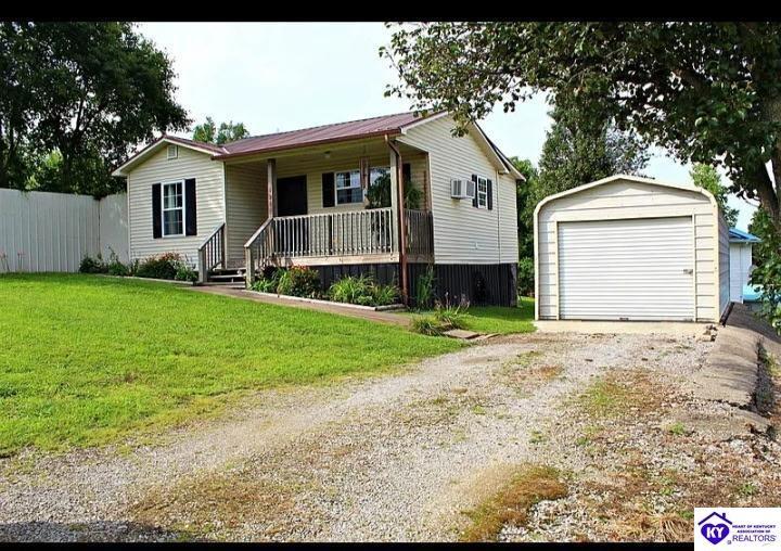 Realtor's notes: Charming and well-maintained 2-bedroom, 1-bath home built in 2003 situated on a ±0.24 acre lot in the heart of the Nolin Lake area. This cozy property offers a functional layout, eat-in kitchen, vinyl siding, and a durable metal roof. The home features a deck for relaxing outdoors and multiple outbuildings for storage, along with a detached carport. A second driveway provides additional space for parking boats, RVs, or recreational vehicles. Conveniently located approximately 3 miles from Nolin River Lake Dam and about 5 miles from Mammoth Cave National Park, with a nearby boat dock providing easy lake access. Whether you’re looking for a full-time residence, weekend retreat, or investment opportunity near the lake, this property offers a great location close to outdoor recreation including boating, fishing, hiking, and exploring the Mammoth Cave area.