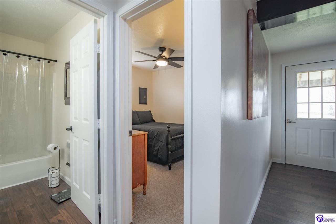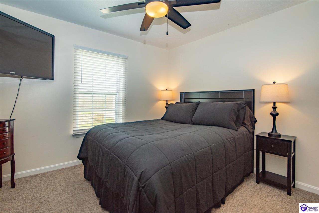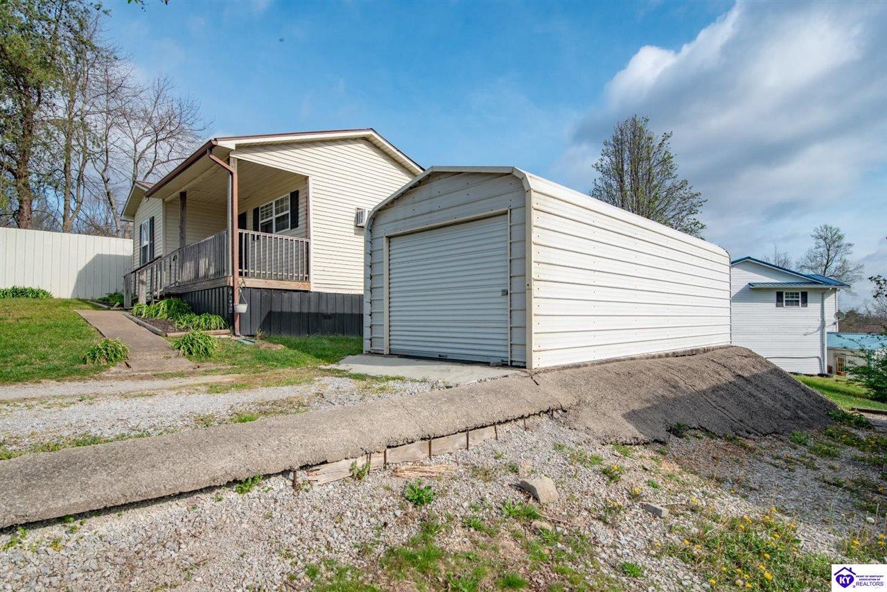 Realtor's notes: Fully updated 2-bedroom, 1-bath home built in 1996, situated on ±0.24 acres in the highly sought-after Nolin Lake area—an emerging hotspot for short-term rental investment. This property has been substantially improved, offering a move-in ready opportunity with strong appeal for both investors and lake enthusiasts. The home features a functional layout, eat-in kitchen, and durable finishes including vinyl siding and a metal roof. A covered front porch offers a peaceful setting with beautiful views—perfect for morning coffee or relaxing after a day on the lake. A small rear deck provides additional outdoor space. The detached garage and attached storage area offer ample room for lake gear, equipment, or owner storage—ideal for short-term rental use. A second driveway provides valuable additional parking for boats, campers, or multiple guests, making it well-suited for hosting. Conveniently located approximately 3 miles from Nolin River Lake Dam and just minutes from Mammoth Cave National Park, this property is positioned to capture both lake traffic and year-round tourism. Whether you’re looking to expand your short-term rental portfolio, invest in a high-demand area, or secure a second home near the lake, this property offers location, usability, and income potential.