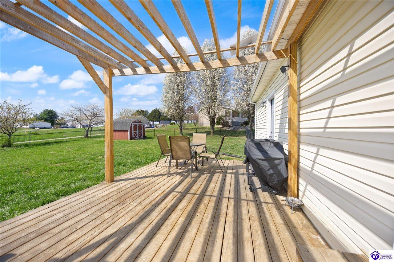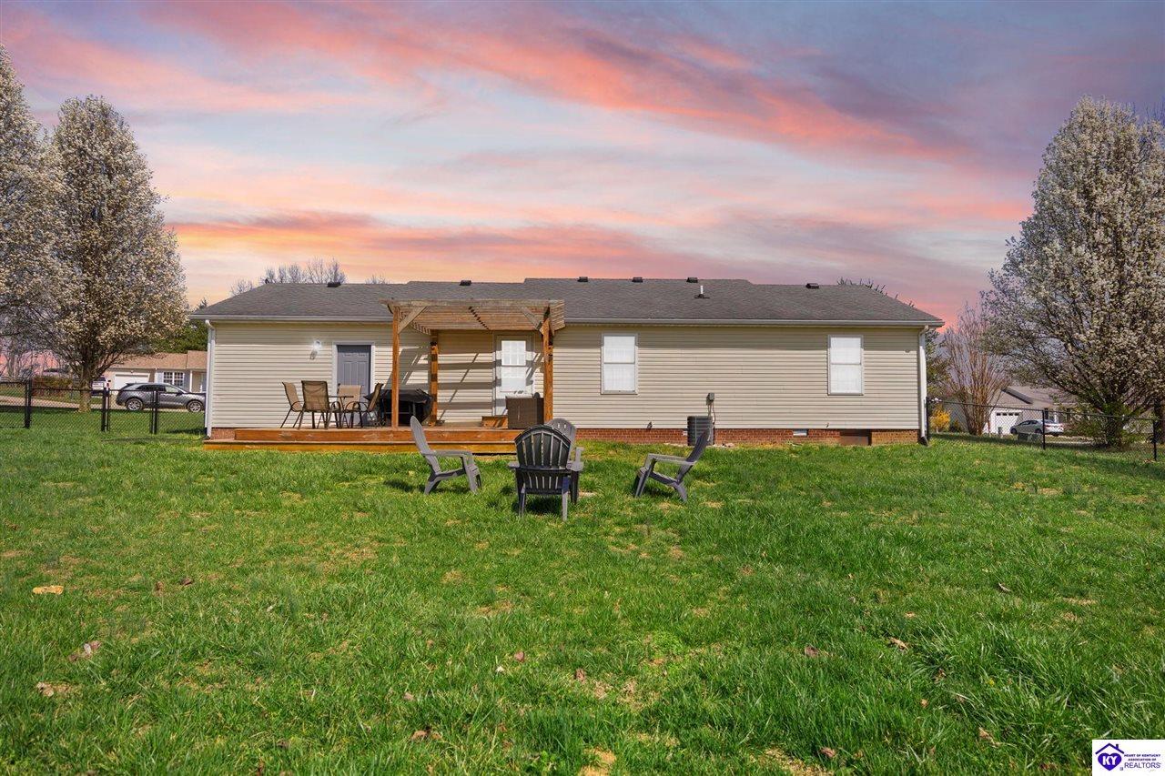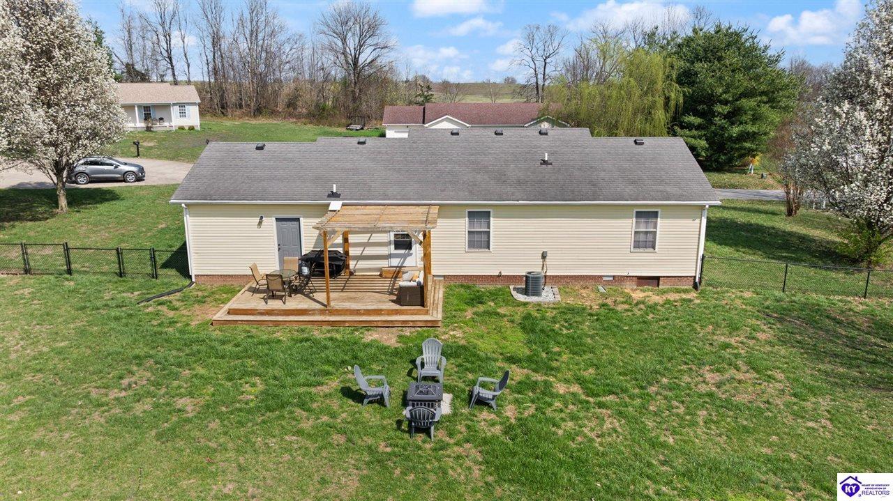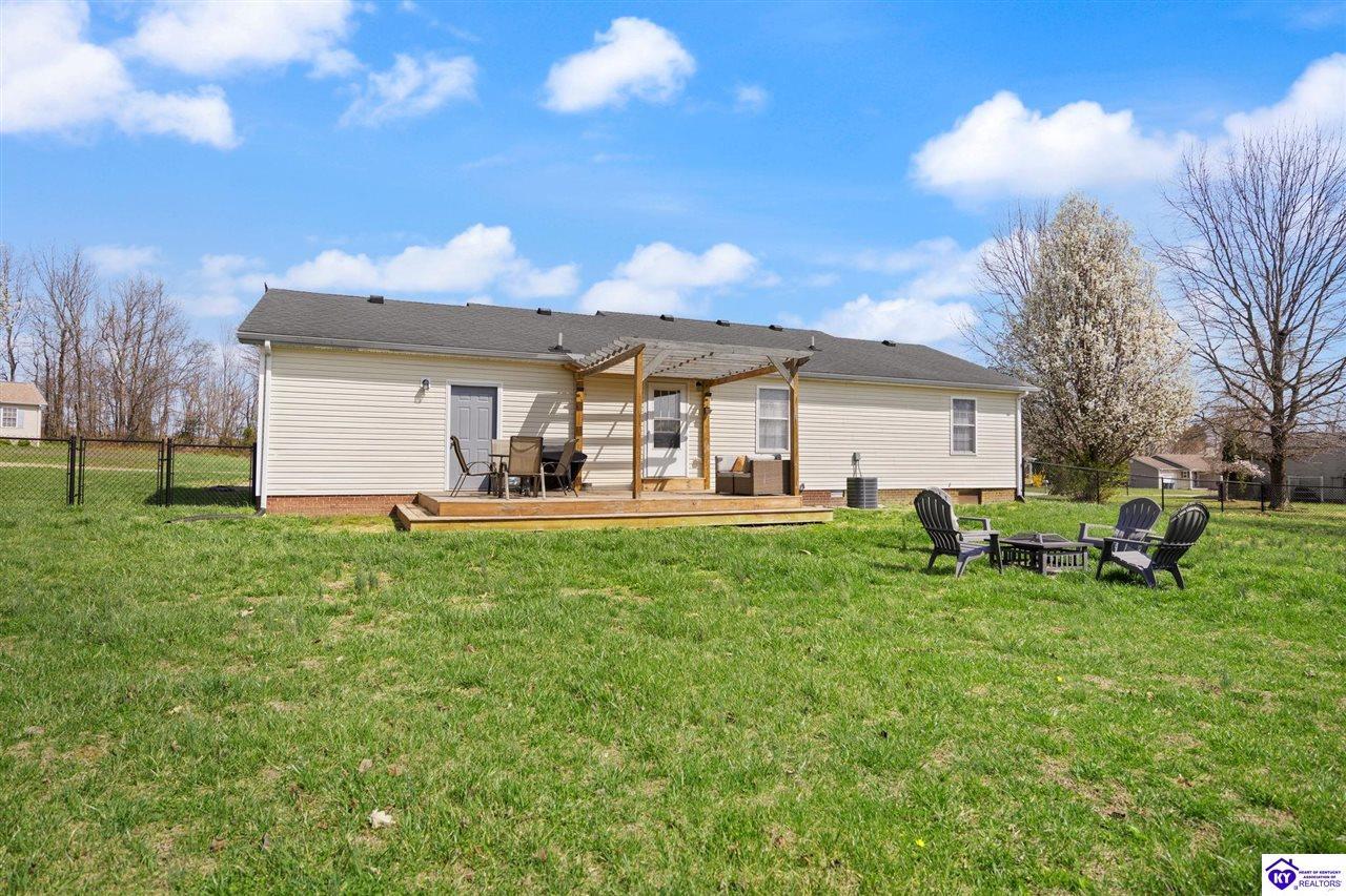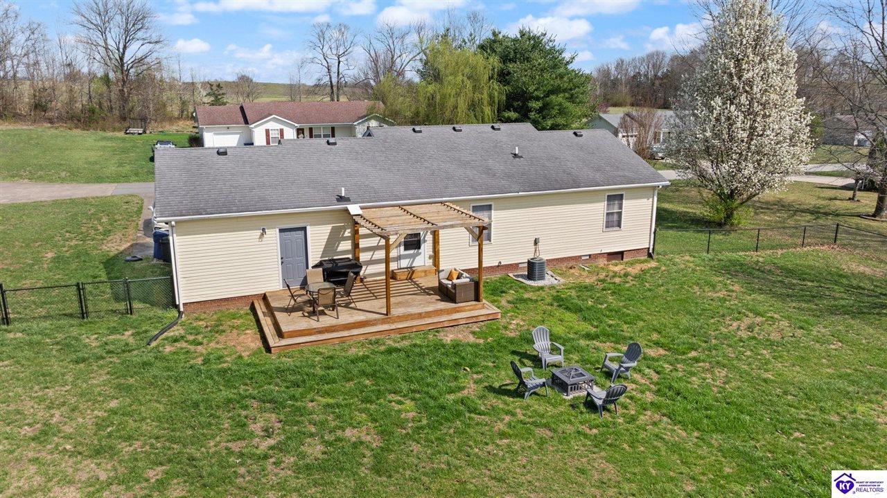 Realtor's notes: Welcome home to 145 Heart Lane in Campbellsville, KY! This beautifully updated 3-bedroom, 2-bath ranch offers comfortable living on a spacious 0.50-acre lot, giving you the perfect blend of privacy and convenience. Step inside to find a bright, refreshed interior featuring newly installed flooring, updated light fixtures, and new ceiling fans throughout the home. The kitchen has been thoughtfully upgraded with new countertops, a stylish backsplash, and a new sink. Outdoor living is just as impressive. Enjoy the newly built deck with pergola, ideal for relaxing evenings, outdoor dining, or hosting friends and family. The newly installed fenced backyard provides privacy and a great space for pets or play. A custom fire pit area adds even more charm, making the backyard perfect for gatherings year-round. The property also features fresh landscaping that enhances the home’s curb appeal. Additional highlights include a one-car attached garage and an outbuilding for extra storage or workspace. Located just minutes from town in Campbellsville, this move-in-ready home offers peaceful surroundings while still being close to shopping, dining, and local amenities. Don’t miss the opportunity to own this beautifully updated home with modern upgrades and inviting outdoor spaces at 145 Heart Lane!