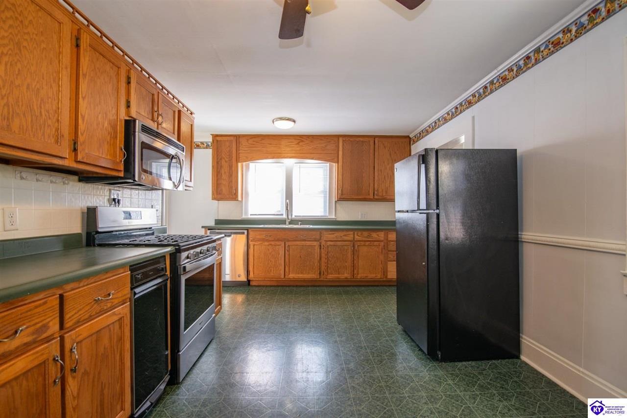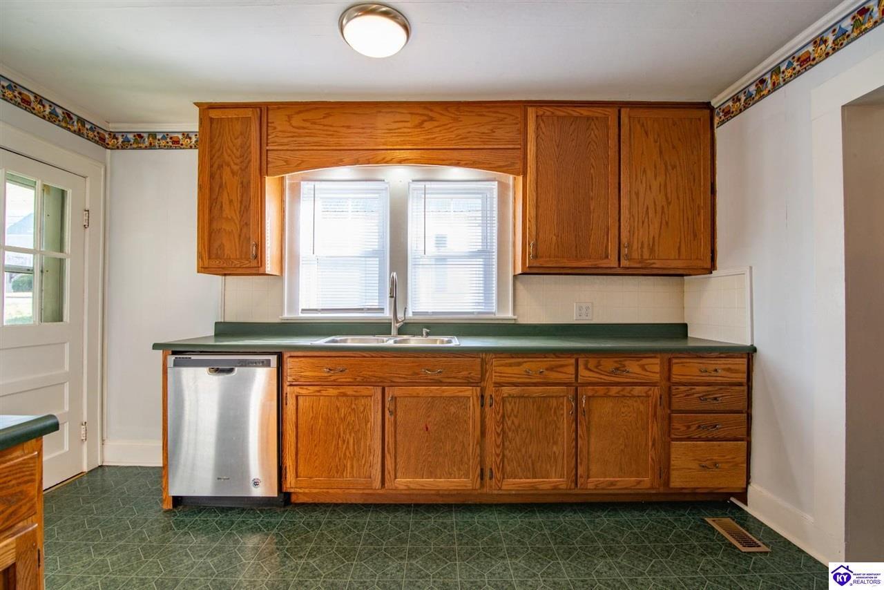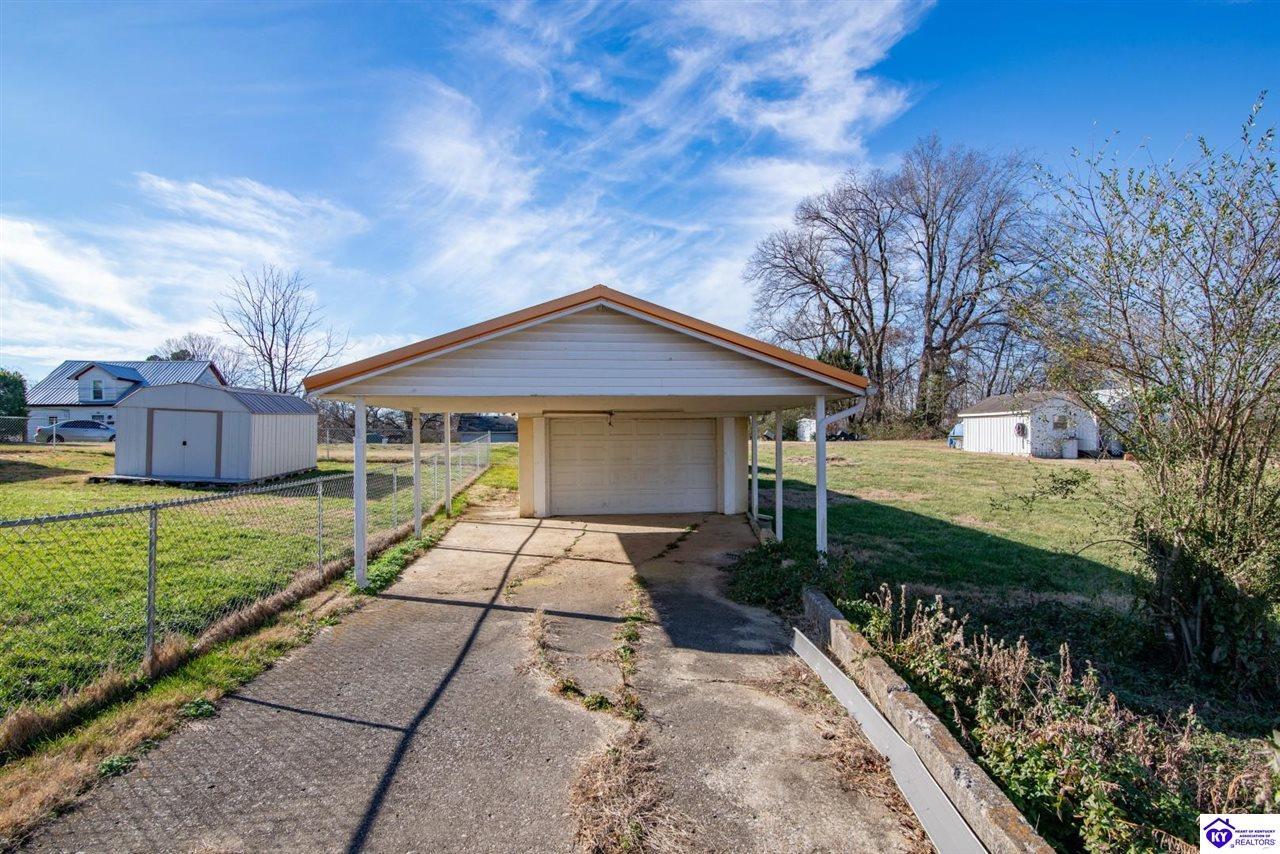 Realtor's notes: **Welcome Home to Small-Town Charm in Hodgenville** This delightful three-bedroom, two-bathroom home is ready to steal your heart from the moment you step onto the large covered front porch. Picture yourself sipping morning coffee while watching the world go by — this is Kentucky living at its finest. Step inside and you'll immediately notice the abundance of natural light streaming through the generous windows that grace this home. Fresh new carpet underfoot gives every room that just-moved-in feeling. The kitchen is the true heart of this home, offering a spacious layout complete with an abundance of cabinetry & a full appliance package that will make meal prep a joy. Adjacent to the kitchen, you'll find a wonderfully large laundry room equipped with pantry cabinets — because who doesn't need extra storage? This clever space also features an exterior door leading directly to the oversized deck, perfect for grilling, entertaining, or simply soaking up the fresh air. Outside, a durable metal roof provides peace of mind for years to come, while the detached garage with an attached carport ensures plenty of room for vehicles, tools, and weekend projects. Families will appreciate the convenient proximity to Larue County High School, located just a short drive away on South Lincoln Boulevard. This new listing won't last long in this charming community. Schedule your private showing today and discover the place you've been searching for!