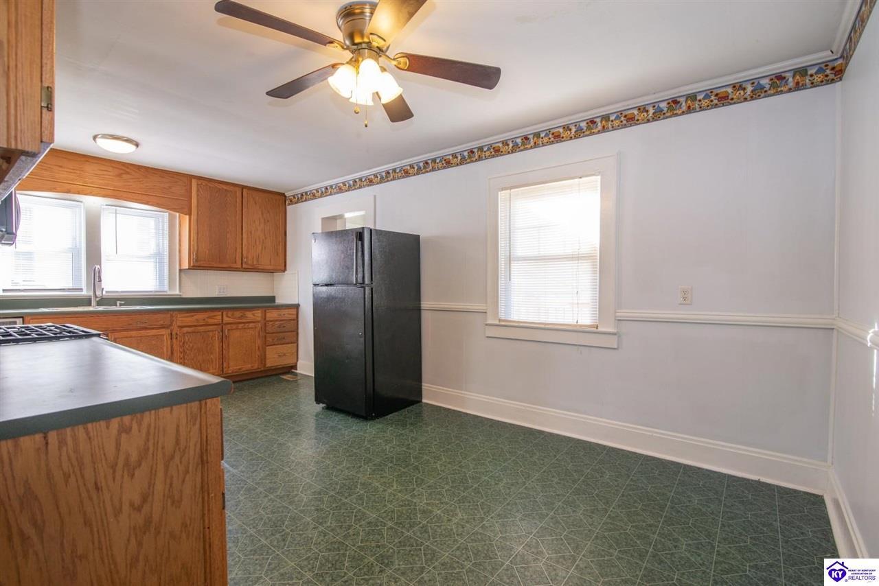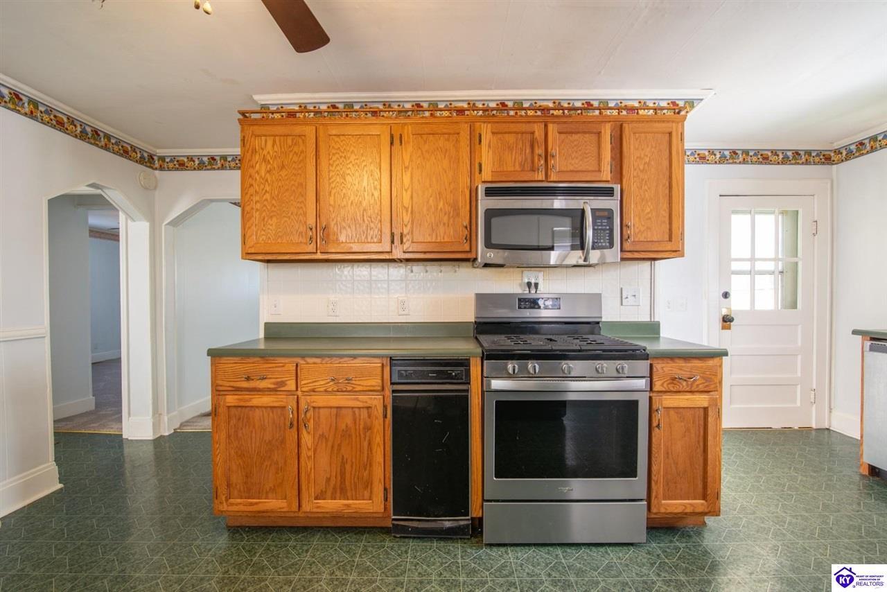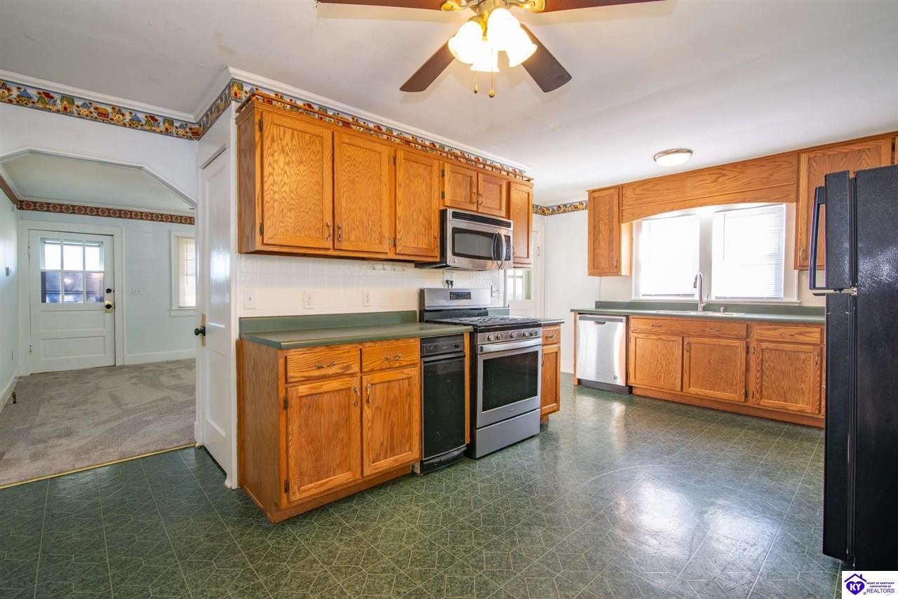 Realtor's notes: **Welcome Home to Small-Town Charm in Hodgenville** This delightful three-bedroom, two-bathroom home is ready to steal your heart from the moment you step onto the large covered front porch. Picture yourself sipping morning coffee while watching the world go by — this is Kentucky living at its finest. Step inside and you'll immediately notice the abundance of natural light streaming through the generous windows that grace this home. Fresh new carpet underfoot gives every room that just-moved-in feeling. The kitchen is the true heart of this home, offering a spacious layout complete with an abundance of cabinetry & a full appliance package that will make meal prep a joy. Adjacent to the kitchen, you'll find a wonderfully large laundry room equipped with pantry cabinets — because who doesn't need extra storage? This clever space also features an exterior door leading directly to the oversized deck, perfect for grilling, entertaining, or simply soaking up the fresh air. Outside, a durable metal roof provides peace of mind for years to come, while the detached garage with an attached carport ensures plenty of room for vehicles, tools, and weekend projects. Families will appreciate the convenient proximity to Larue County High School, located just a short drive away on South Lincoln Boulevard. This new listing won't last long in this charming community. Schedule your private showing today and discover the place you've been searching for!