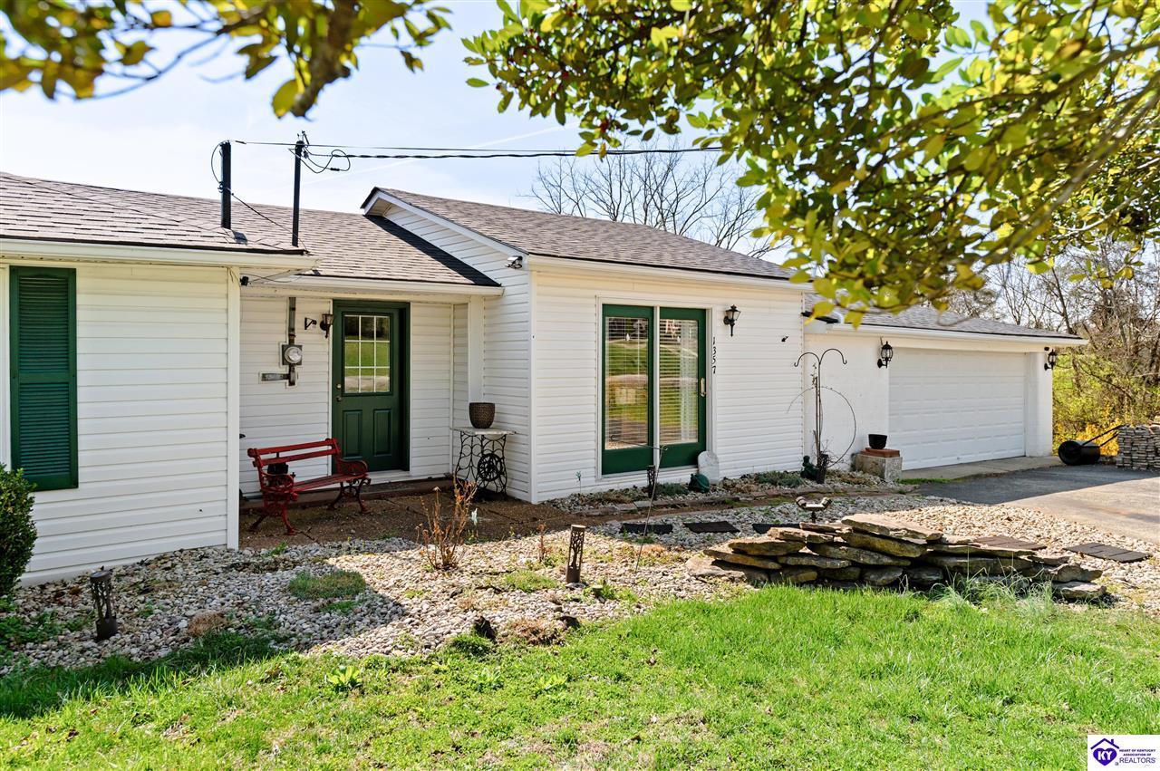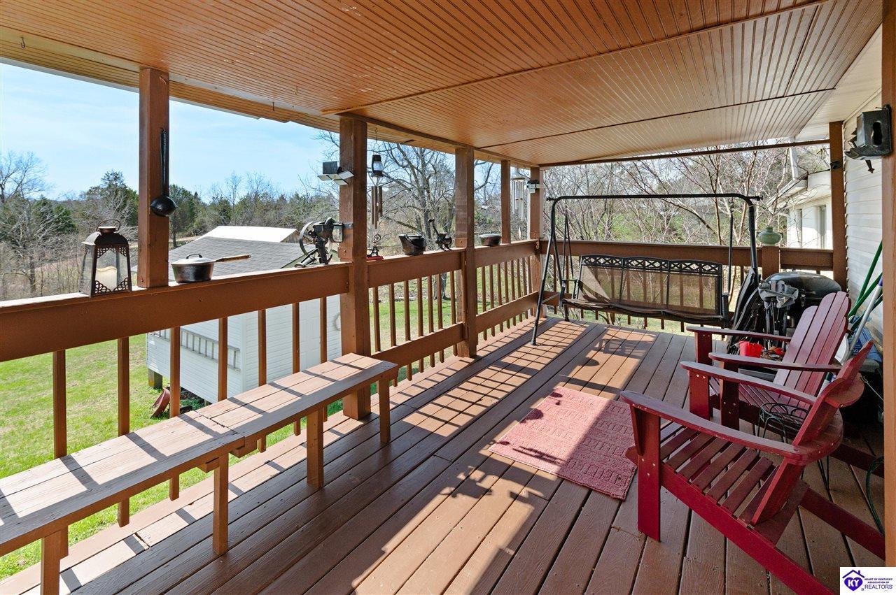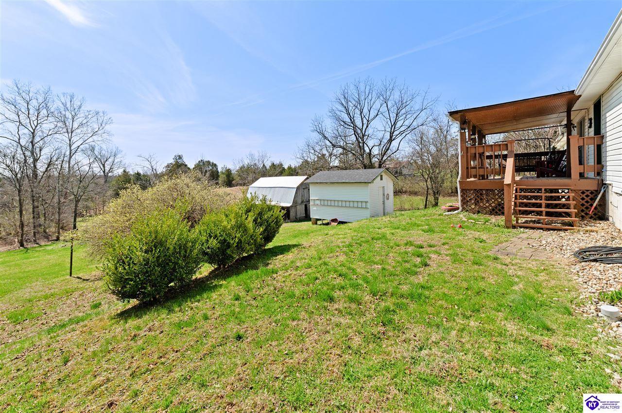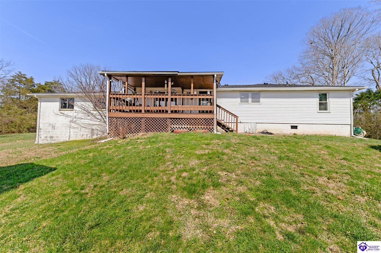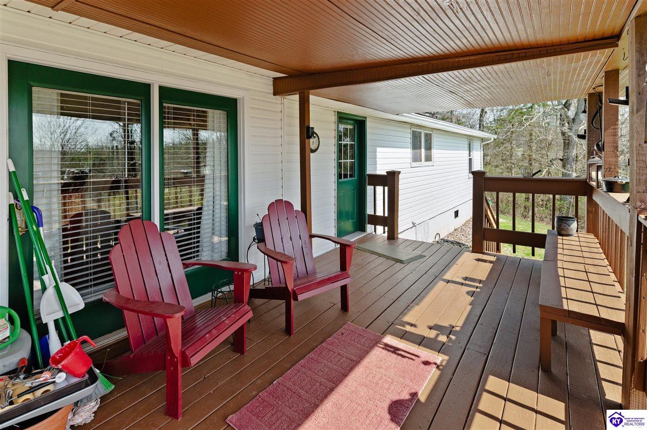 Realtor's notes: 3 bedroom ranch situated on 2 acres. Comfortable flow from the living room to the dining area and into the kitchen. The kitchen offers abundant cabinet space and features an island that provides additional seating and storage. Just off the kitchen is a convenient laundry room with built-in cabinetry for extra organization. The dining area opens to a covered deck, perfect for enjoying the peaceful views of the property. Additional features include a 2-car attached garage, storage shed, and an older barn. Only minutes from Mt. Washington. Bullitt County school district!