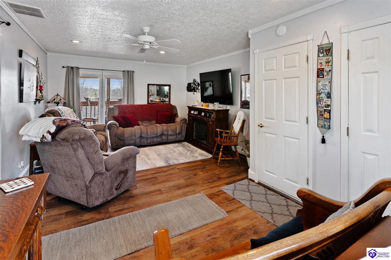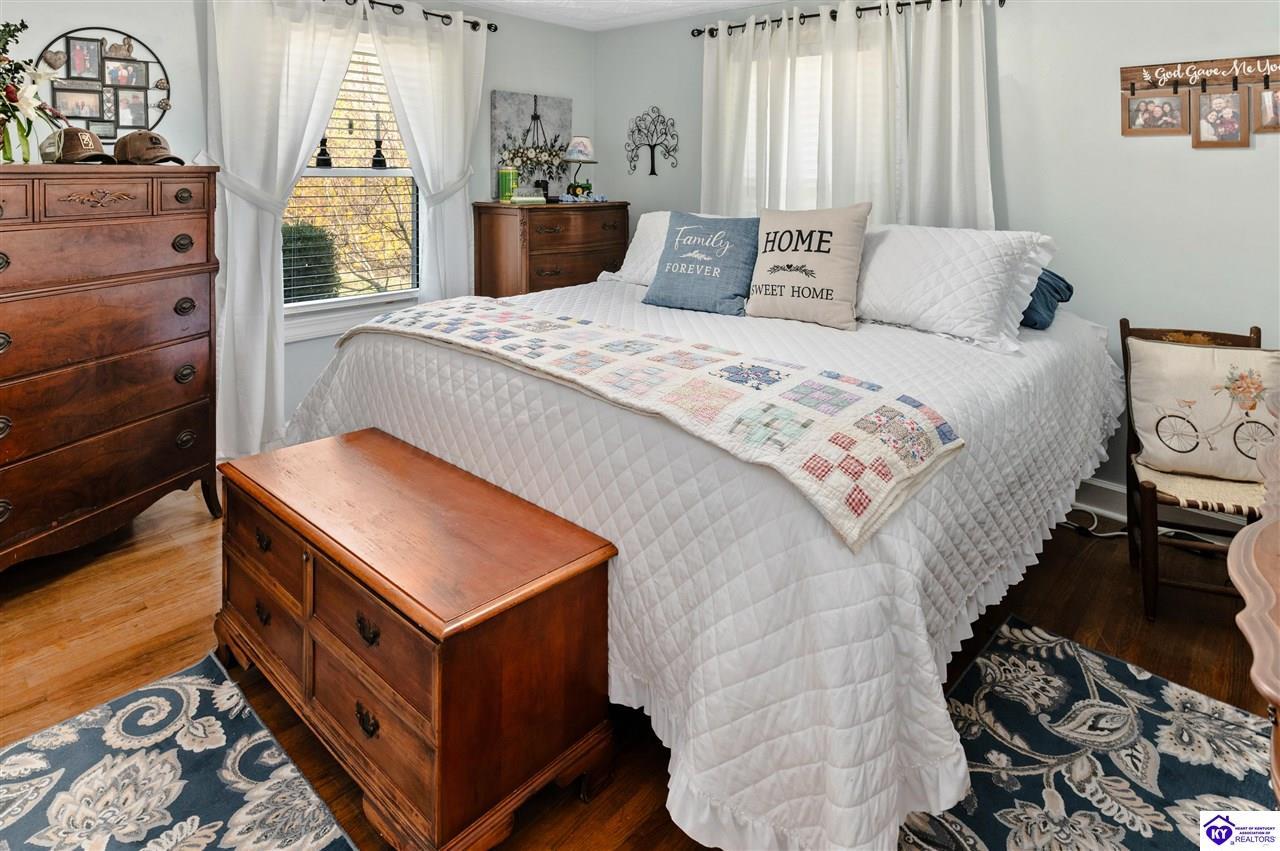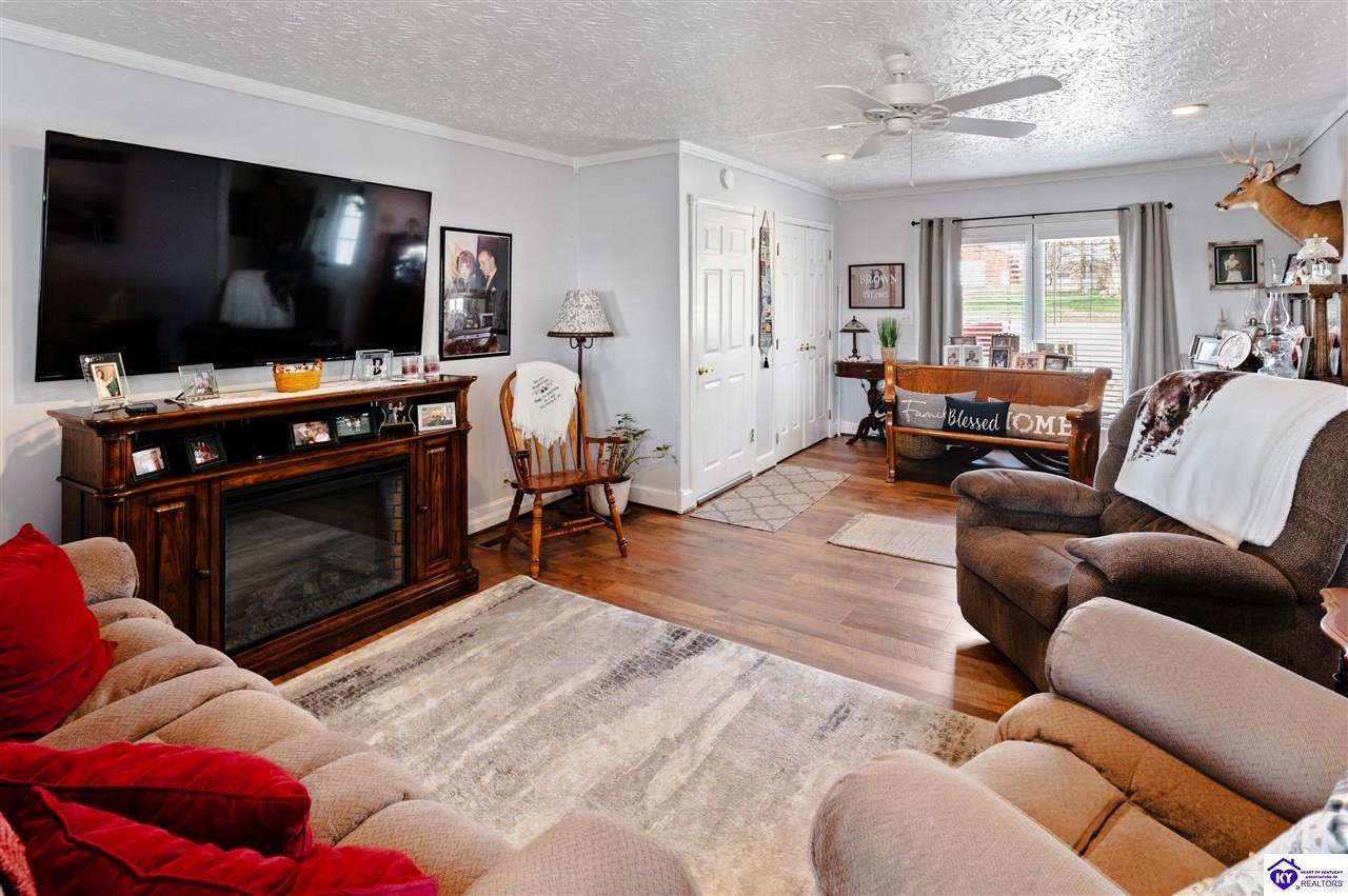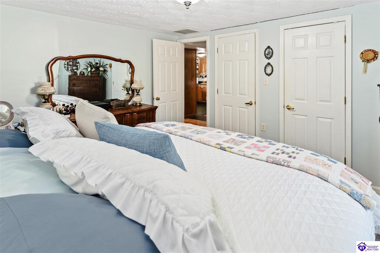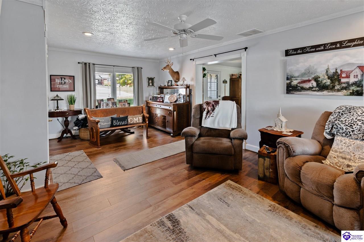 Realtor's notes: 3 bedroom ranch situated on 2 acres. Comfortable flow from the living room to the dining area and into the kitchen. The kitchen offers abundant cabinet space and features an island that provides additional seating and storage. Just off the kitchen is a convenient laundry room with built-in cabinetry for extra organization. The dining area opens to a covered deck, perfect for enjoying the peaceful views of the property. Additional features include a 2-car attached garage, storage shed, and an older barn. Only minutes from Mt. Washington. Bullitt County school district!