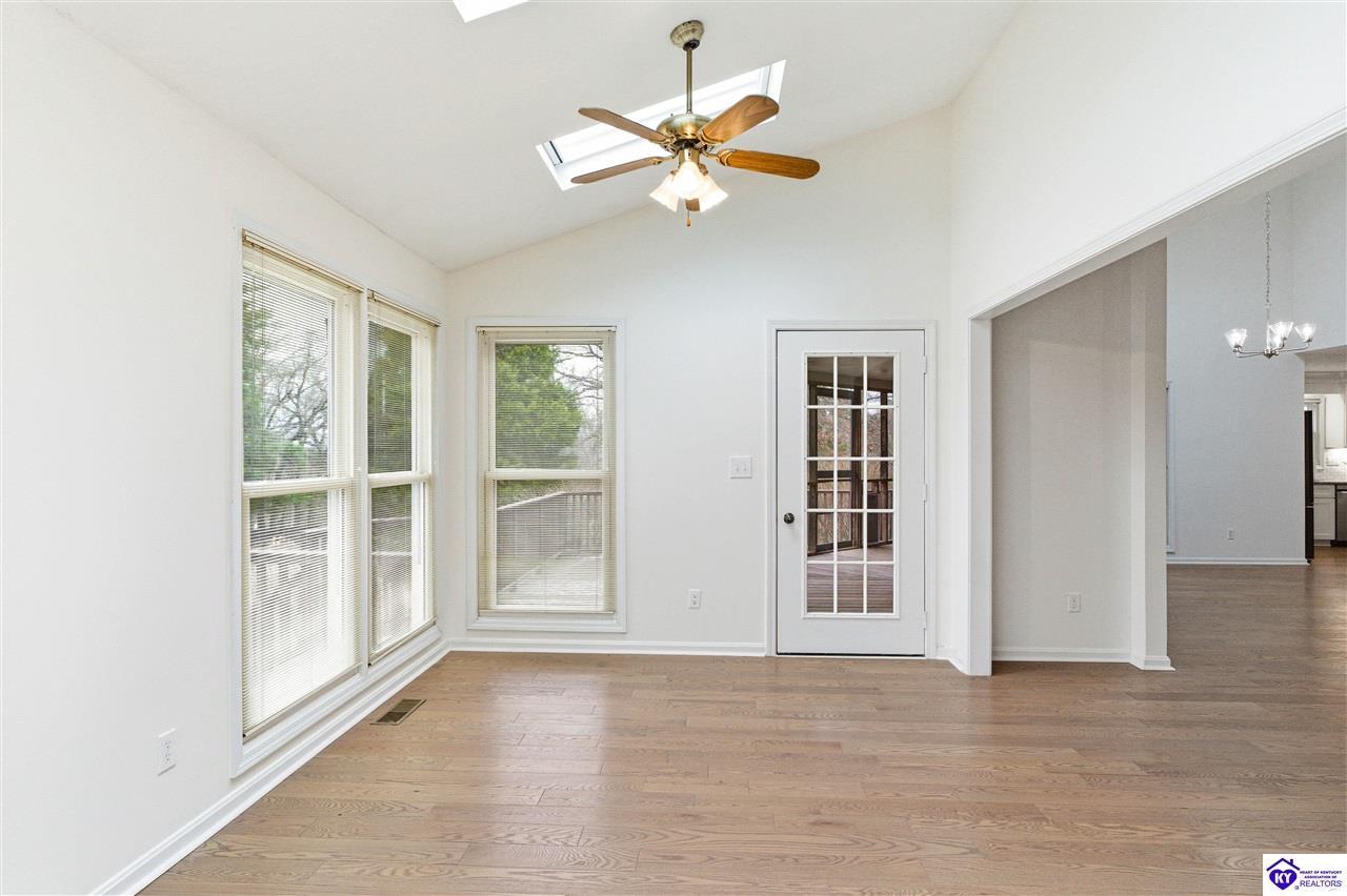 Realtor's notes: A relaxing oasis awaits you with this spacious custom home, nestled on Doe Valley's golf course, overlooking the 3rd hole green. As soon as you walk in the door, you will notice the rich and warm hardwood floors throughout the main floor. The updated kitchen will dazzle you when you see the custom cabinetry, granite countertops and oversized island. The vaulted ceilings in the great room compliment the brick fireplace. Enjoy the golf course views from the all seasons sunroom that can ideally be used as an office. Morning coffee can be sipped from the deck or screened-in porch, which boasts views of the water feature on the golf course.The large master suite is located on the main floor, for easy access. The two bedrooms upstairs share a jack-n-jill bathroom. The finished walk-out basement can be used in many ways. Currently, it is set up as a family room with a kitchenette, that is ideal for entertaining! Guests are sure to love the spacious bedroom (non conforming) with an en suite bath and large walk in closet. If you work from home, there is an office that overlooks the golf course in the basement, or it could be used as a possible 5th bedroom. The new LVP flooring in the basement is sure to delight! Other great features of this home include the GEOTHERMAL HVAC system, a secondary heat source of the LP gas logs in the fireplace, GENERAC LP backup generator, water softener, covered area for golf cart parking, sun deck and covered screened in deck.