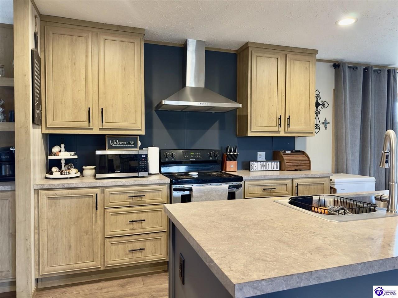 Kitchen Dishwasher, Eat-In, Range Electric, Refrigerator, Solid Surface Counter Top