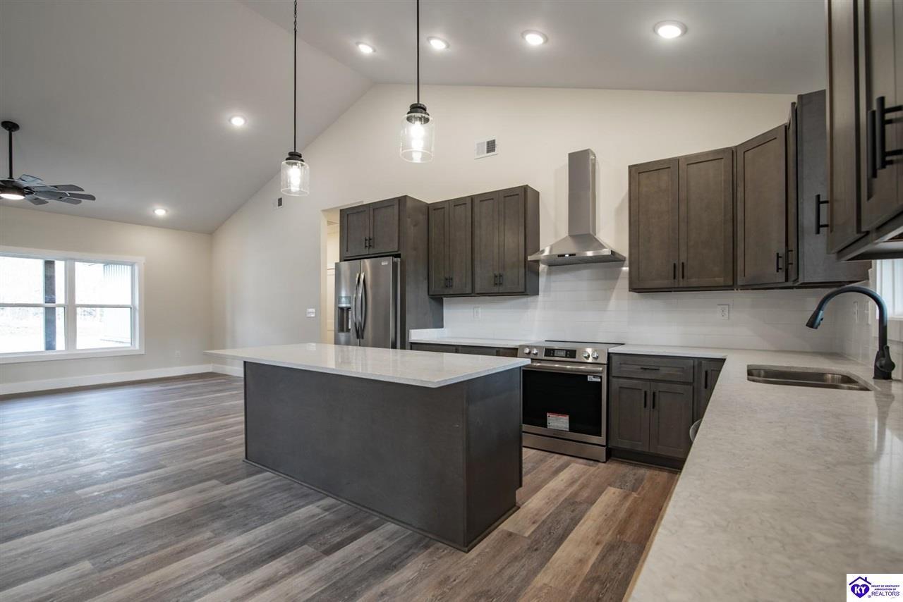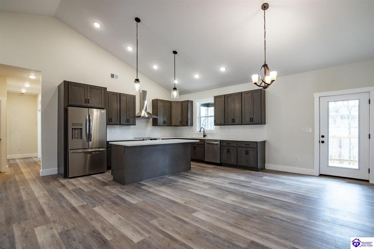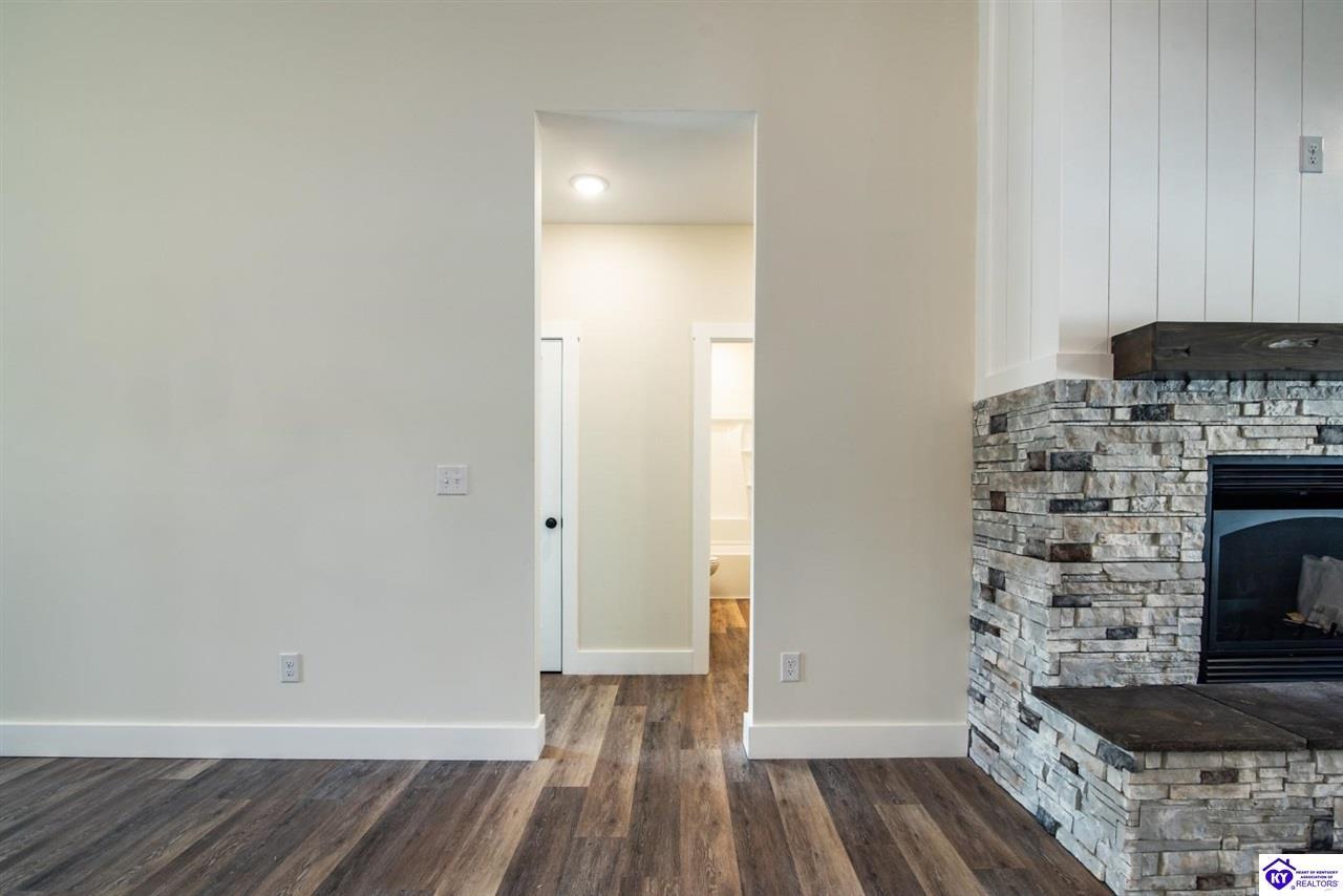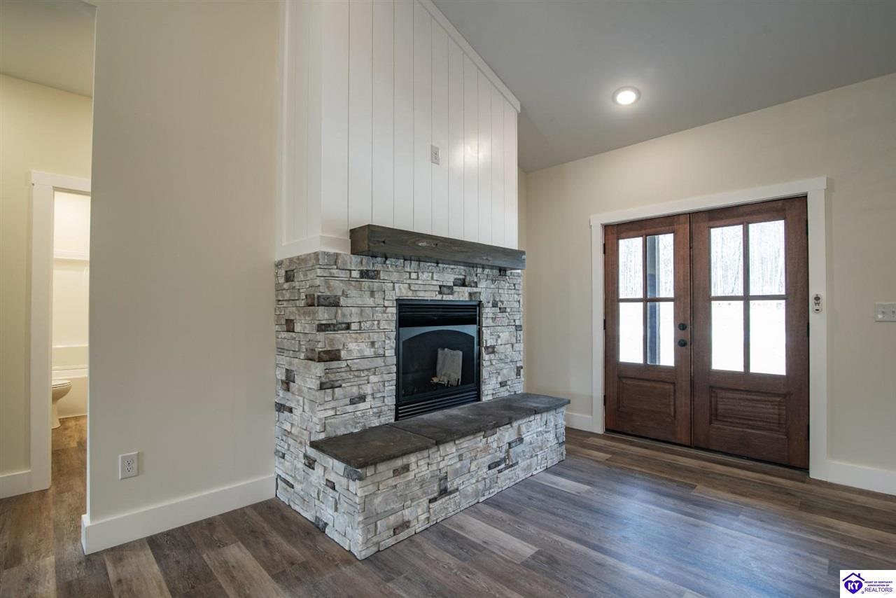 Realtor's notes: Welcome to this beautifully crafted new construction home located in the private, wooded Hidden Oaks subdivision! Situated on 1.16 acres, this home offers the perfect blend of modern design and peaceful surroundings. Step inside to an open floor plan featuring 10-foot ceilings, vaulted ceilings in the living room and kitchen, and recessed lighting throughout. Luxury vinyl plank flooring runs through the main living areas, with carpet in the bedrooms for added comfort. The living room showcases a stunning gas stone fireplace with shiplap accents, creating a warm and inviting focal point. The kitchen is a true showstopper with a large island and bar seating, granite countertops, stainless steel appliances, subway tile backsplash, extra-tall soft-close cabinetry, and a built-in trash cabinet. A walk-in pantry is conveniently located just off the kitchen. Designed with a split floor plan, the spacious primary suite offers privacy and features a massive walk-in closet and a luxurious ensuite with double vanity, granite countertops, built-in linen storage, LVP flooring, and a large tiled shower. Additional highlights include a dedicated laundry room with cabinetry and granite counters, and thoughtful upgrades like 2x6 exterior walls, fully encapsulated crawl space, buried downspouts, and exterior soffit lighting. Enjoy outdoor living on the covered front porch or covered back deck, all surrounded by the natural beauty of this wooded lot. Don’t miss your chance to own this exceptional new build! *Note: Exterior photos will be updates once ground work is completed