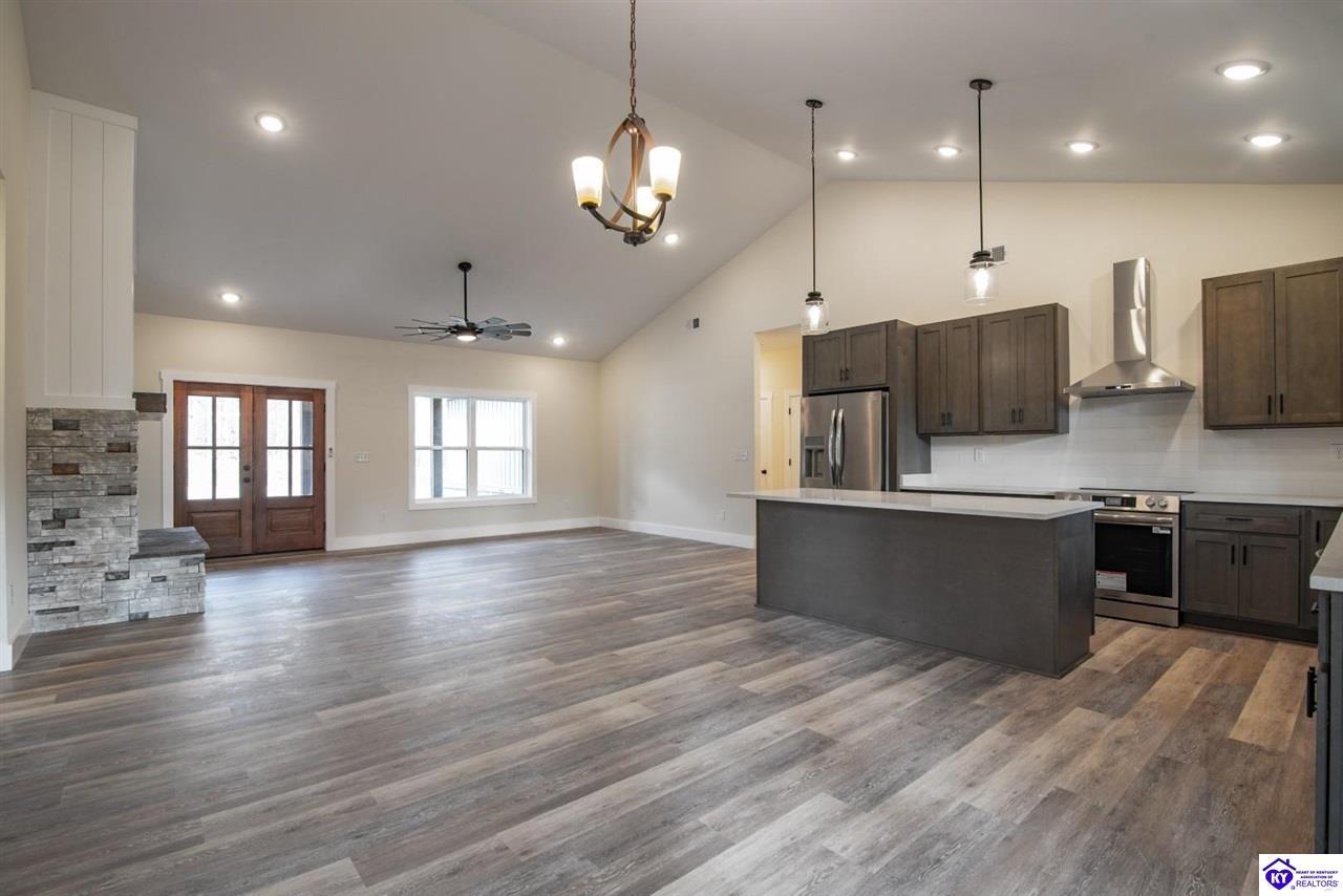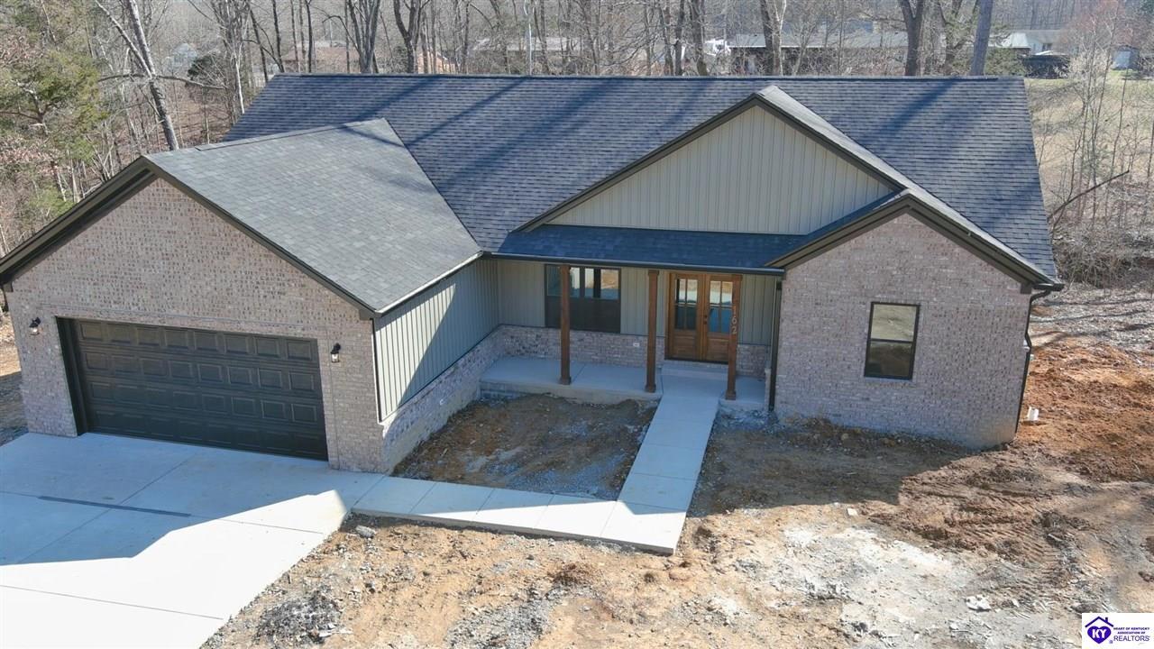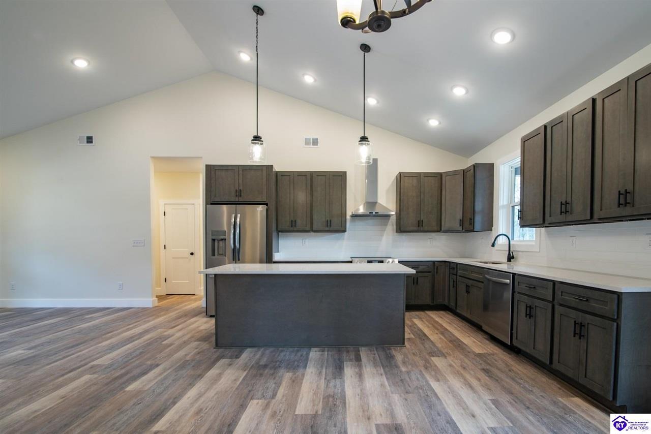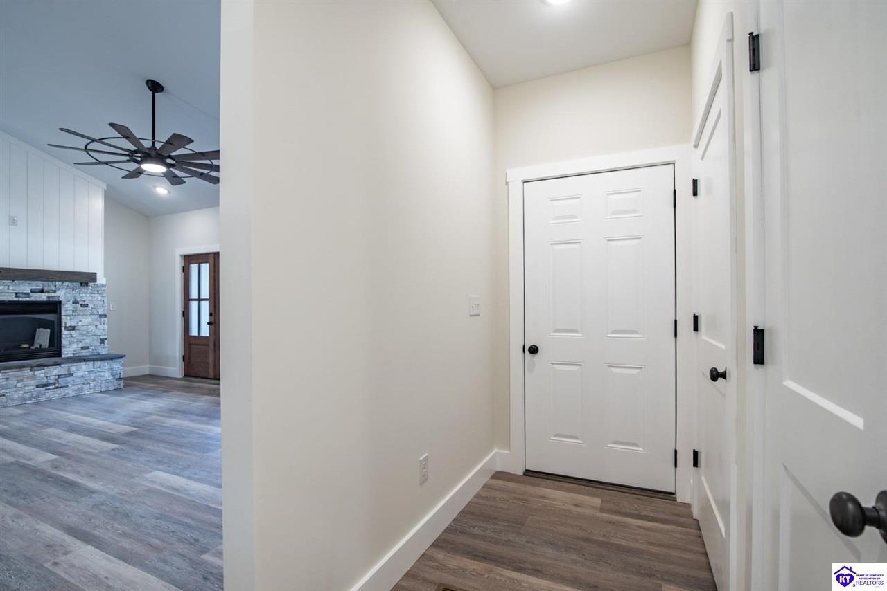 Realtor's notes: Welcome to this beautifully crafted new construction home located in the private, wooded Hidden Oaks subdivision! Situated on 1.16 acres, this home offers the perfect blend of modern design and peaceful surroundings. Step inside to an open floor plan featuring 10-foot ceilings, vaulted ceilings in the living room and kitchen, and recessed lighting throughout. Luxury vinyl plank flooring runs through the main living areas, with carpet in the bedrooms for added comfort. The living room showcases a stunning gas stone fireplace with shiplap accents, creating a warm and inviting focal point. The kitchen is a true showstopper with a large island and bar seating, granite countertops, stainless steel appliances, subway tile backsplash, extra-tall soft-close cabinetry, and a built-in trash cabinet. A walk-in pantry is conveniently located just off the kitchen. Designed with a split floor plan, the spacious primary suite offers privacy and features a massive walk-in closet and a luxurious ensuite with double vanity, granite countertops, built-in linen storage, LVP flooring, and a large tiled shower. Additional highlights include a dedicated laundry room with cabinetry and granite counters, and thoughtful upgrades like 2x6 exterior walls, fully encapsulated crawl space, buried downspouts, and exterior soffit lighting. Enjoy outdoor living on the covered front porch or covered back deck, all surrounded by the natural beauty of this wooded lot. Don’t miss your chance to own this exceptional new build! *Note: Exterior photos will be updates once ground work is completed