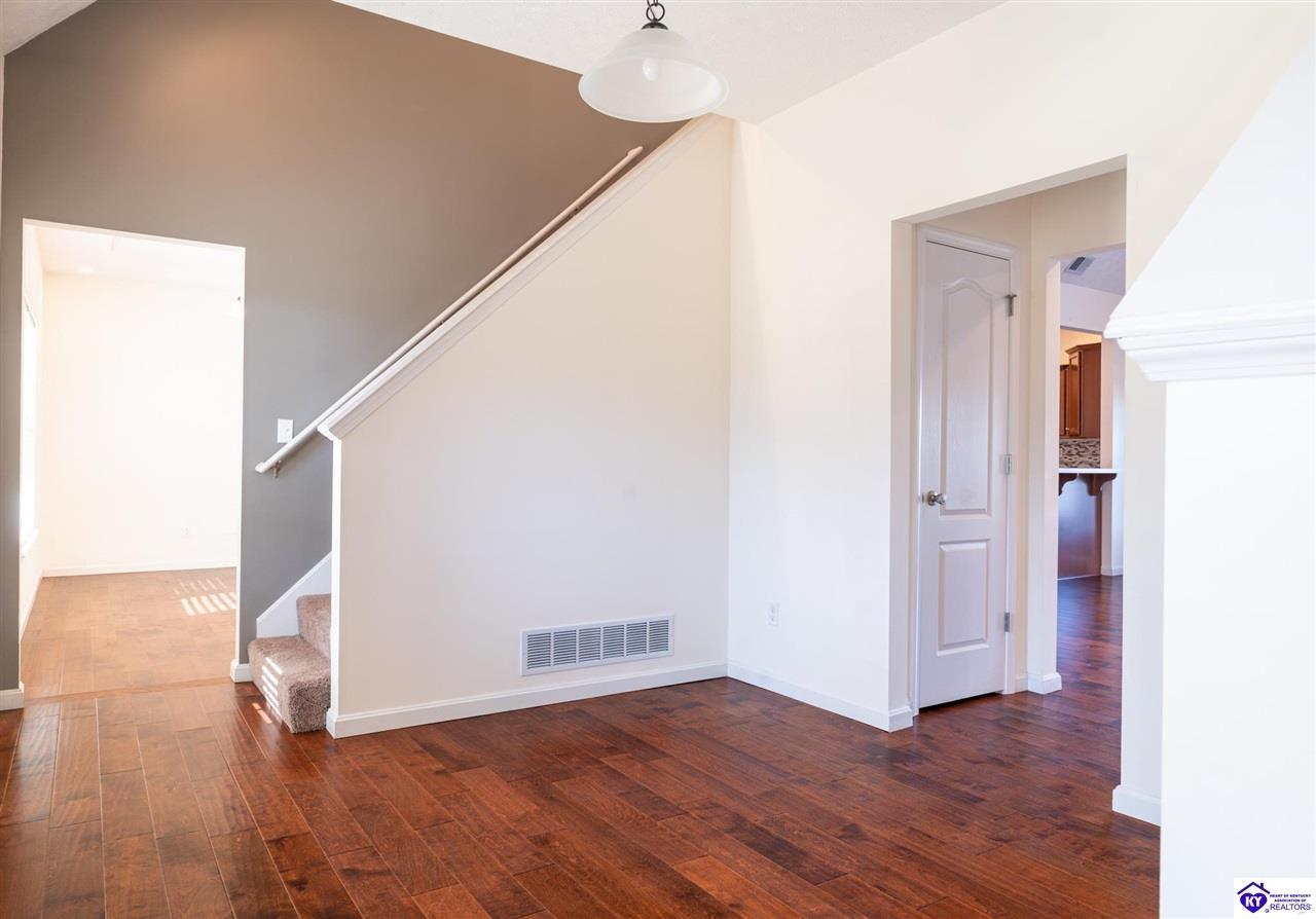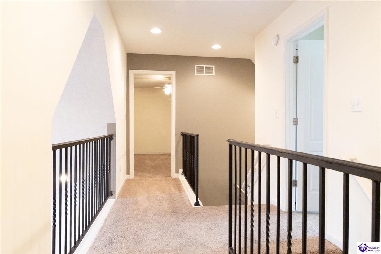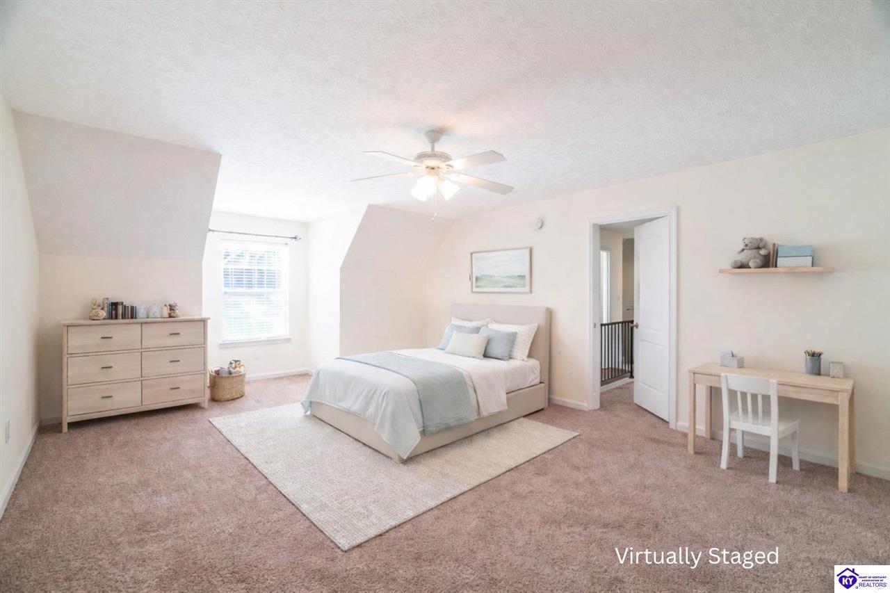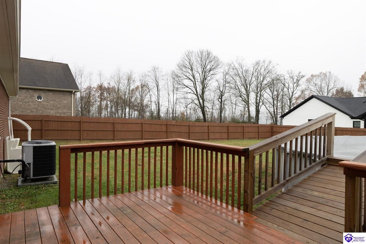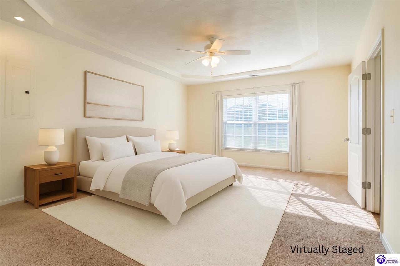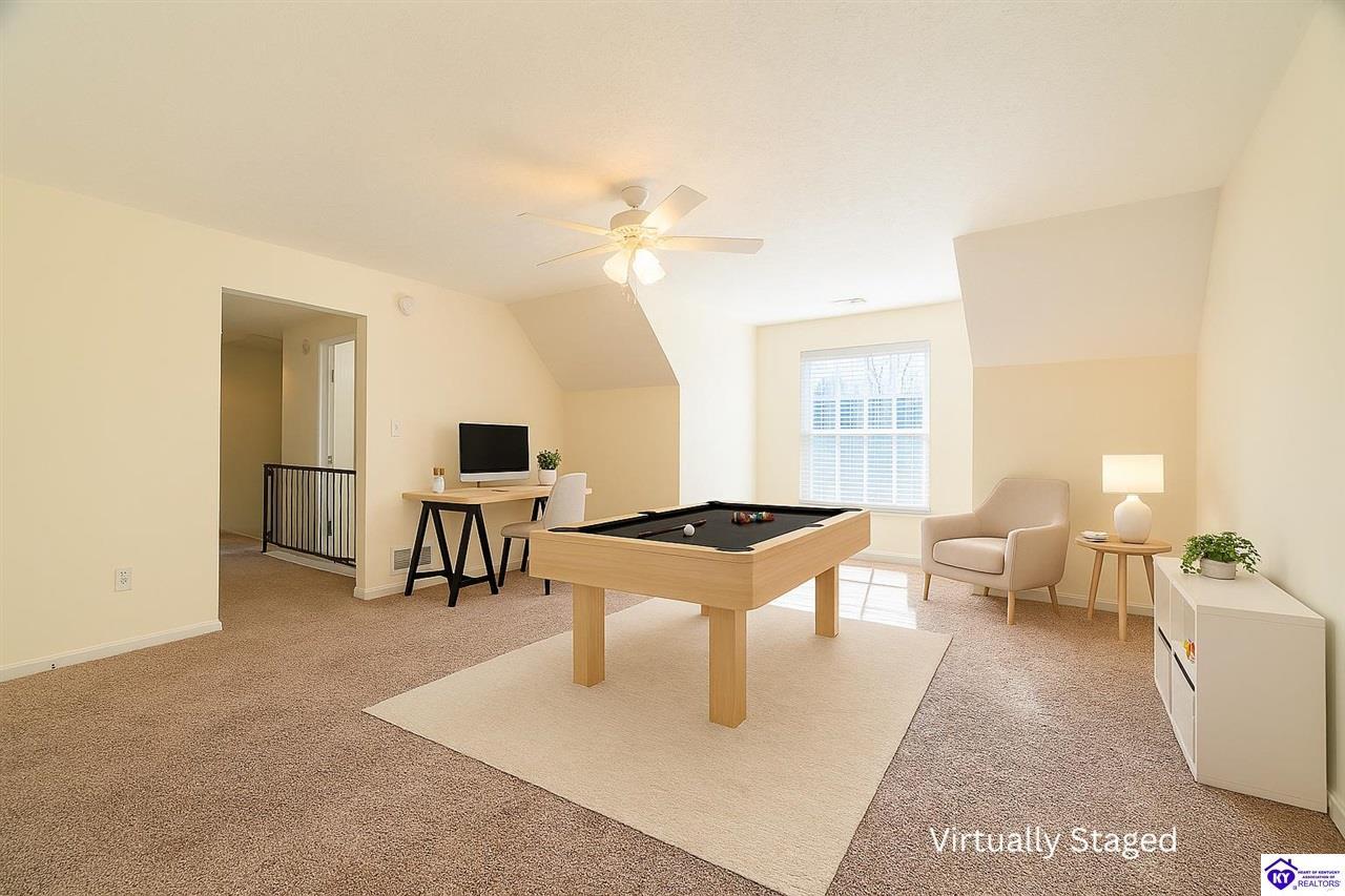 Realtor's notes: Discover this beautifully built, one-owner home tucked at the end of a cul-de-sac in River Cliff Estates. Built in 2016, the property offers a spacious layout and standout features inside and out. The backyard is designed for fun and functionality, complete with a 33-foot pool and hot tub added in fall of 2023, plus a fully fenced yard for pets, gatherings, and everyday use. The main level offers 9-foot ceilings and a dramatic vaulted living room accented by a dual staircase and an open balcony landing. The first floor is handicapped accessible and includes a large primary suite with dual vanities, a whirlpool tub, a separate shower, and a walk-in closet that doubles as a built-in storm shelter/safe room. Upstairs, two generously sized bedrooms and a large bonus room provide flexible space for work, play, or additional living space. A full bathroom with double sinks and abundant storage, thanks to double closets, completes the upper level. The kitchen is designed with cooking and baking in mind, offering extensive cabinet storage and a highly usable layout. A formal dining room with a tray ceiling provides the perfect spot for hosting meals and celebrations. The home also features a blue light HVAC system aimed at reducing mold and allergens. Located just 20 minutes from Fort Knox plus no HOA fees, this home is ready for its next owners. Schedule your private showing to see it in person!