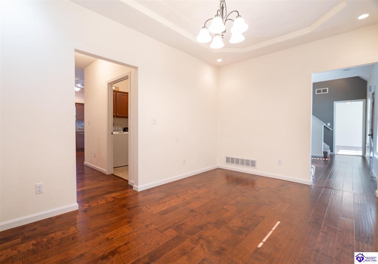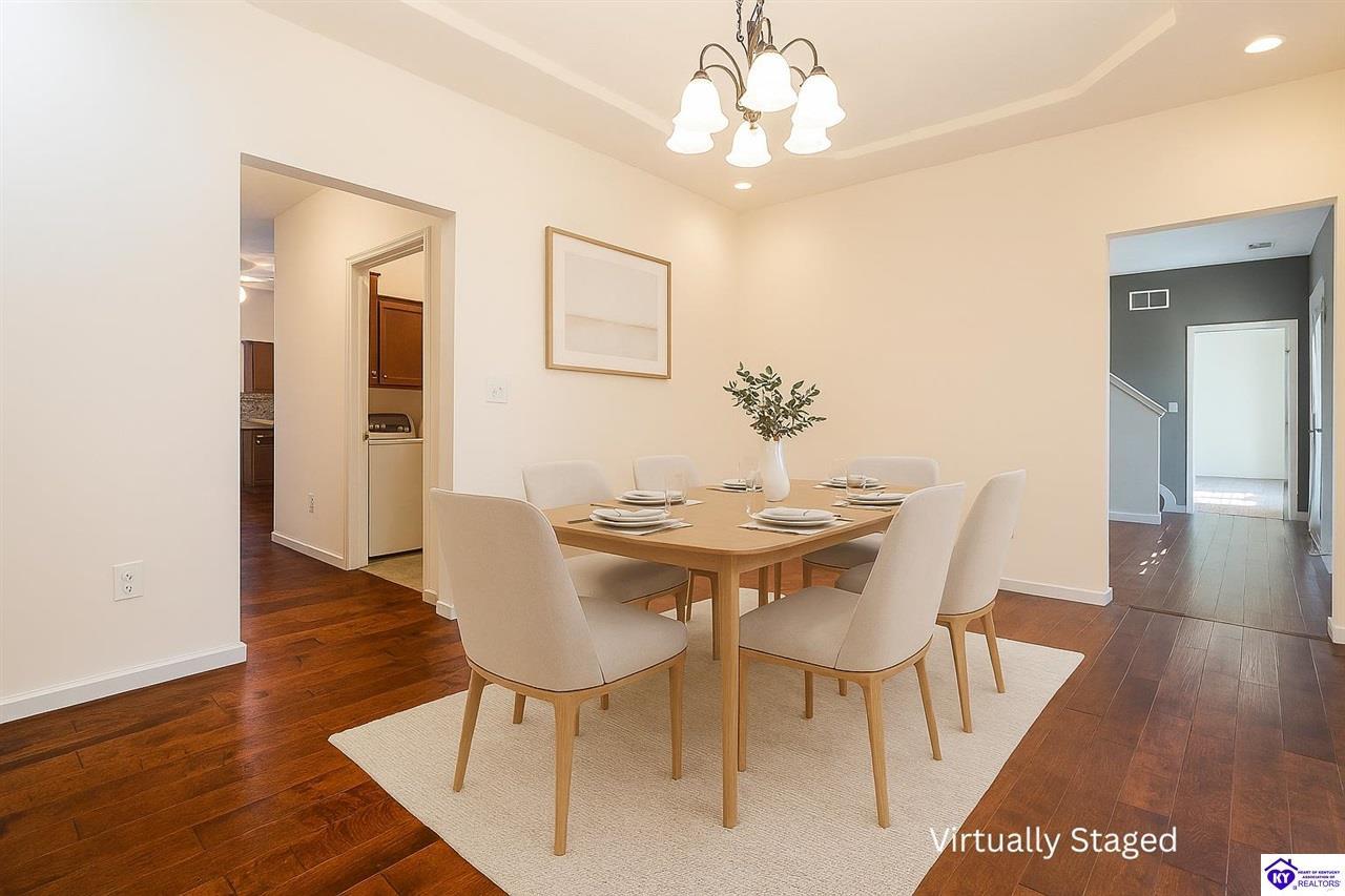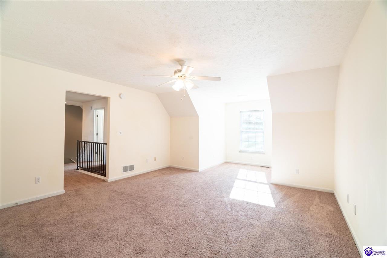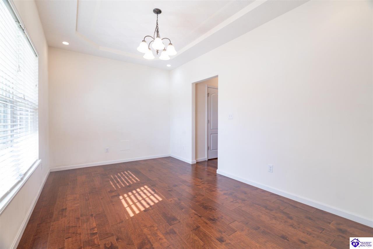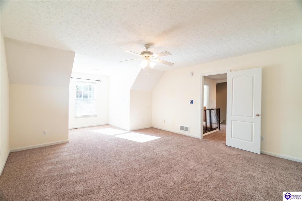 Realtor's notes: Discover this beautifully built, one-owner home tucked at the end of a cul-de-sac in River Cliff Estates. Built in 2016, the property offers a spacious layout and standout features inside and out. The backyard is designed for fun and functionality, complete with a 33-foot pool and hot tub added in fall of 2023, plus a fully fenced yard for pets, gatherings, and everyday use. The main level offers 9-foot ceilings and a dramatic vaulted living room accented by a dual staircase and an open balcony landing. The first floor is handicapped accessible and includes a large primary suite with dual vanities, a whirlpool tub, a separate shower, and a walk-in closet that doubles as a built-in storm shelter/safe room. Upstairs, two generously sized bedrooms and a large bonus room provide flexible space for work, play, or additional living space. A full bathroom with double sinks and abundant storage, thanks to double closets, completes the upper level. The kitchen is designed with cooking and baking in mind, offering extensive cabinet storage and a highly usable layout. A formal dining room with a tray ceiling provides the perfect spot for hosting meals and celebrations. The home also features a blue light HVAC system aimed at reducing mold and allergens. Located just 20 minutes from Fort Knox plus no HOA fees, this home is ready for its next owners. Schedule your private showing to see it in person!