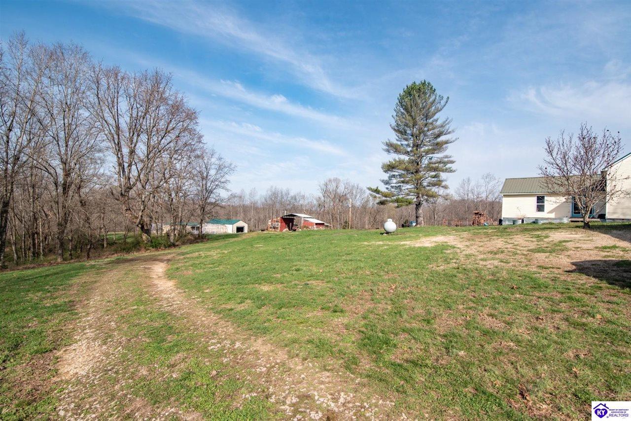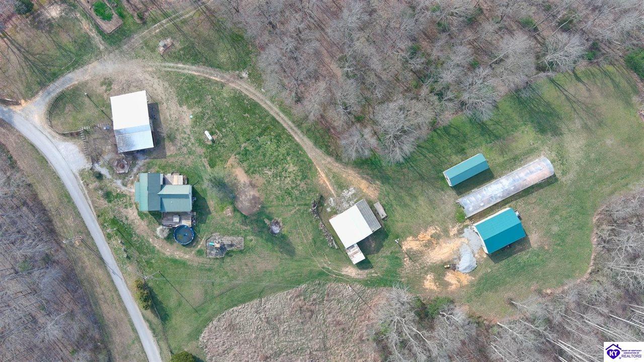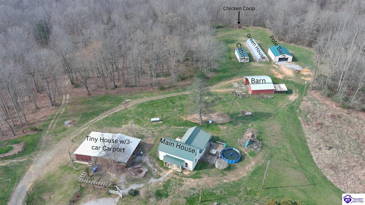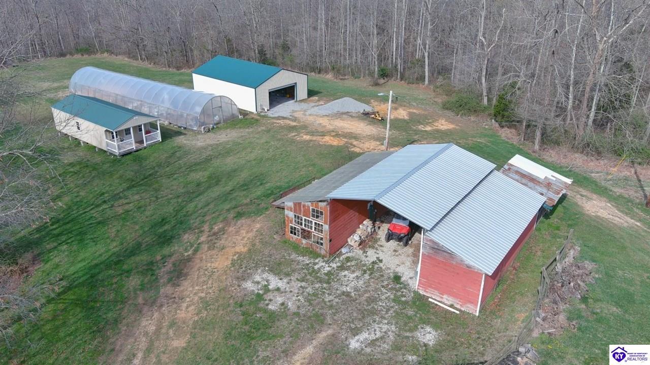 Realtor's notes: Private Retreat on 44.77 Acres. Welcome to your own slice of countryside, where a paved road winds through rolling, scenic farmland & leads you to this rare property offering the perfect blend of cleared and wooded land already subdivided into 5 lots for added flexibility & future potential. Conveniently located just 14 min. to Hodgenville, 30 min. to Elizabethtown, 48 min. to Fort Knox, & within an hour to Louisville, this property delivers peaceful seclusion without sacrificing accessibility. The home has seen extensive updates & improvements, giving buyers confidence & peace of mind, including: New HVAC (2025) New well pump (2024) Septic serviced (2024) Updated appliances (2021–2023) New gas fireplace (2021) Structural improvements, including steel foundation support beams, floor joists, and crawl space vapor barrier (2021) Fire safety system with 10-year batteries (2023) The home has seen extensive updates & improvements, giving buyers confidence in the big-ticket items already being addressed, including: New HVAC (2025) New well pump (2024) Septic serviced (2024) Updated appliances (2021–2023) New gas fireplace (2021) Structural improvements, including steel foundation support beams, floor joists, and crawl space vapor barrier (2021) Fire safety system with 10-year batteries (2023) Inside, the home offers a solid foundation with major systems updated, while leaving room for cosmetic improvements and finishing touches—allowing buyers to make it their own and build equity without the burden of large mechanical or structural expenses. Main-floor laundry adds convenience, and additional materials have already been purchased to help complete flooring and trim. Step outside and this property truly shines. Proptery includes: Barn $20K Pole Barn (2021) Additional unused cabin (2022) Tiny house with utilities + 3-car carport Greenhouse with fans & chicken coop Above-ground pool (2022) & Thermaspa hot tub Orchard with apple, pear, peach, plum & blueberry Creek 2 access points to property Barn hydrant (2024) For added value, tractor with implements and zero-turn mower remain, owned propane tank—making this a true turnkey opportunity for country living, homesteading, or multi-use investment. Whether you’re looking to create a private retreat, family compound, or income-producing setup, this property offers unmatched versatility with the heavy lifting already done. Property is being sold As Is. Sellers will entertain inspections.