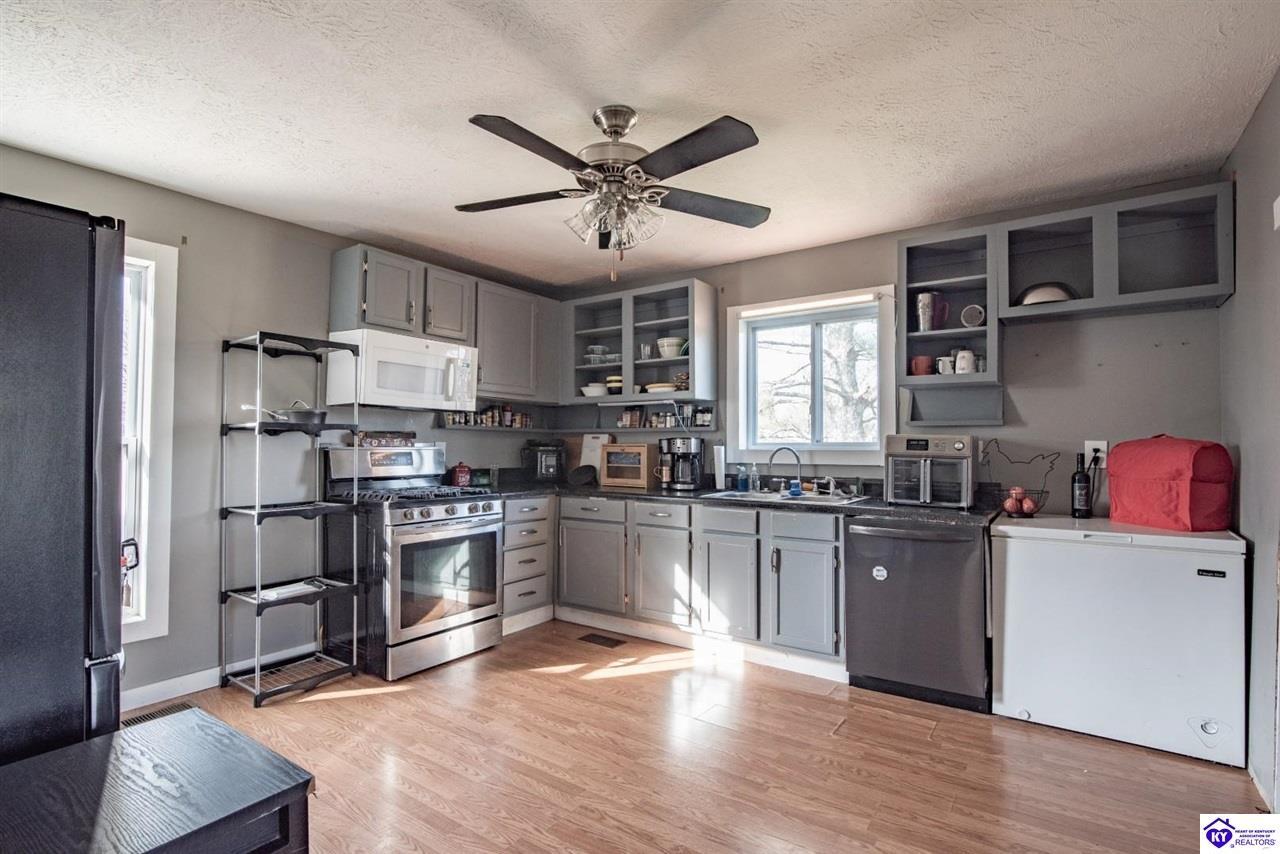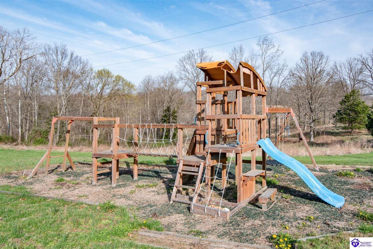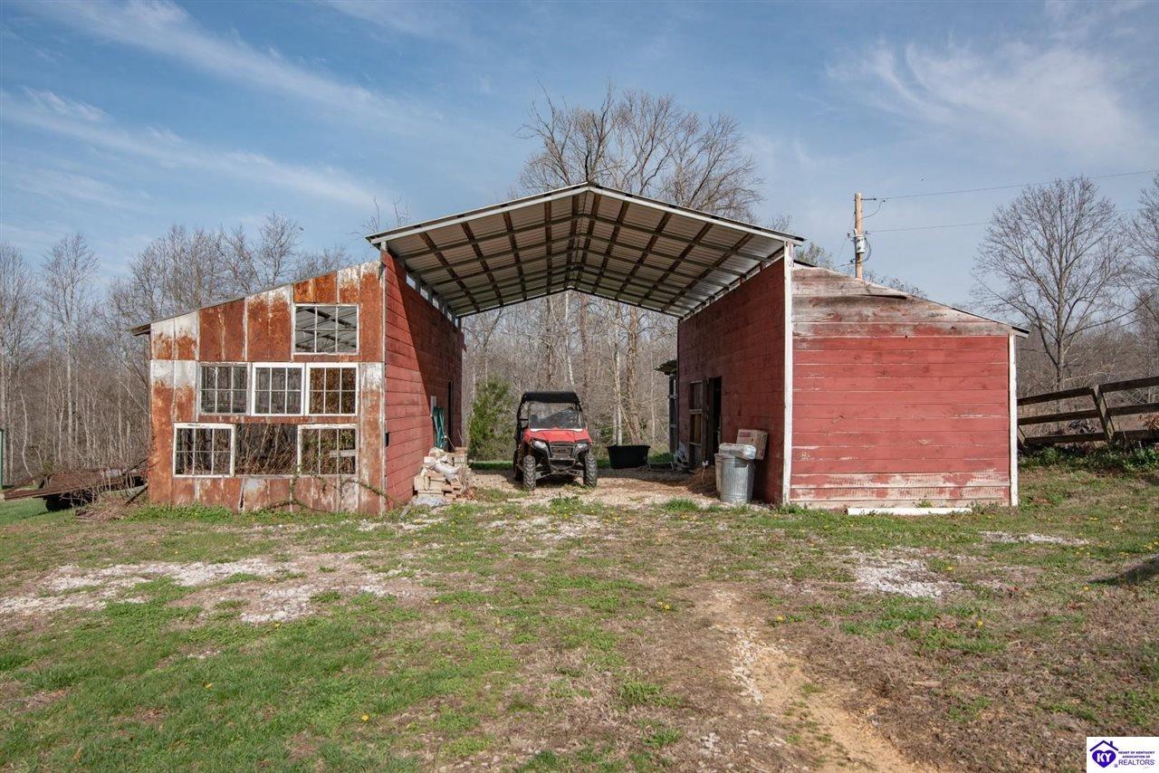 Realtor's notes: Private Retreat on 44.77 Acres. Welcome to your own slice of countryside, where a paved road winds through rolling, scenic farmland & leads you to this rare property offering the perfect blend of cleared and wooded land already subdivided into 5 lots for added flexibility & future potential. Conveniently located just 14 min. to Hodgenville, 30 min. to Elizabethtown, 48 min. to Fort Knox, & within an hour to Louisville, this property delivers peaceful seclusion without sacrificing accessibility. The home has seen extensive updates & improvements, giving buyers confidence & peace of mind, including: New HVAC (2025) New well pump (2024) Septic serviced (2024) Updated appliances (2021–2023) New gas fireplace (2021) Structural improvements, including steel foundation support beams, floor joists, and crawl space vapor barrier (2021) Fire safety system with 10-year batteries (2023) The home has seen extensive updates & improvements, giving buyers confidence in the big-ticket items already being addressed, including: New HVAC (2025) New well pump (2024) Septic serviced (2024) Updated appliances (2021–2023) New gas fireplace (2021) Structural improvements, including steel foundation support beams, floor joists, and crawl space vapor barrier (2021) Fire safety system with 10-year batteries (2023) Inside, the home offers a solid foundation with major systems updated, while leaving room for cosmetic improvements and finishing touches—allowing buyers to make it their own and build equity without the burden of large mechanical or structural expenses. Main-floor laundry adds convenience, and additional materials have already been purchased to help complete flooring and trim. Step outside and this property truly shines. Proptery includes: Barn $20K Pole Barn (2021) Additional unused cabin (2022) Tiny house with utilities + 3-car carport Greenhouse with fans & chicken coop Above-ground pool (2022) & Thermaspa hot tub Orchard with apple, pear, peach, plum & blueberry Creek 2 access points to property Barn hydrant (2024) For added value, tractor with implements and zero-turn mower remain, owned propane tank—making this a true turnkey opportunity for country living, homesteading, or multi-use investment. Whether you’re looking to create a private retreat, family compound, or income-producing setup, this property offers unmatched versatility with the heavy lifting already done. Property is being sold As Is. Sellers will entertain inspections.