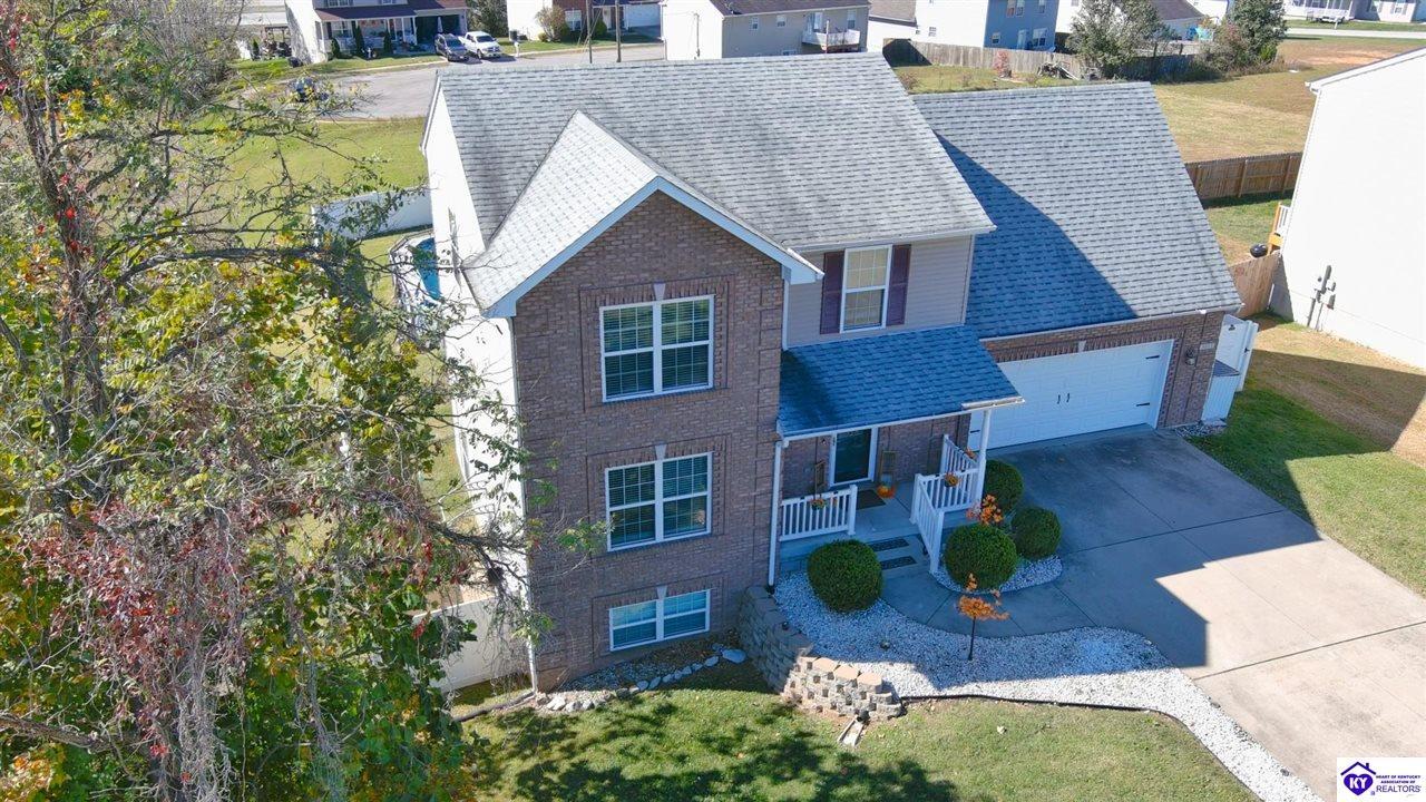 Realtor's notes: WOW! Seller will pay up to $7,500 of buyer's closing costs and is including a Home Warranty of seller's choice. Stunning 4-Bedroom, 3.5-Bath Two-Story Home with Finished Walkout Basement & Pool! These sellers have style! Step inside this beautifully maintained home where comfort meets elegance. The main floor welcomes you with a warm, inviting living room featuring a cozy corner fireplace, flowing seamlessly into the dining area and spacious kitchen—complete with a convenient island, modern updates, and all appliances included. Upstairs, the primary suite is truly a retreat, showcasing a custom decorative accent wall, and a spa-like ensuite with double vanity, separate shower, and a jetted tub. Two additional bedrooms and a full bath complete the upper level. The finished walkout basement offers incredible versatility—featuring a fourth bedroom (currently used as an office), another full bathroom, and a large family room that opens directly to the backyard oasis. Step outside to enjoy the fenced yard, above-ground pool with custom deck, and scenic views of the adjacent nature park—perfect for relaxing or entertaining! All this, conveniently located just minutes from Ft. Knox, Elizabethtown, and more! Don’t miss your chance to call this one home—schedule your private tour today!