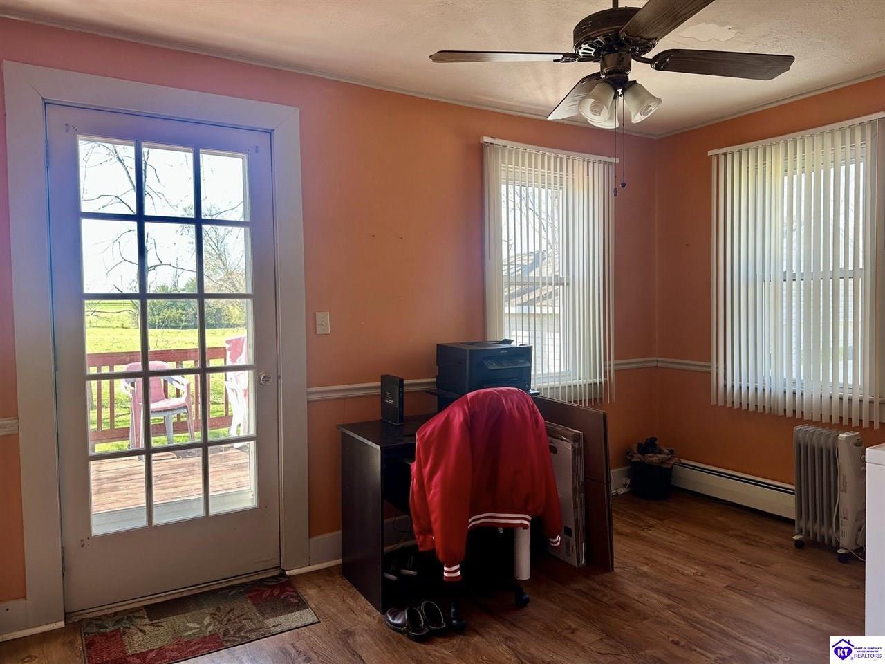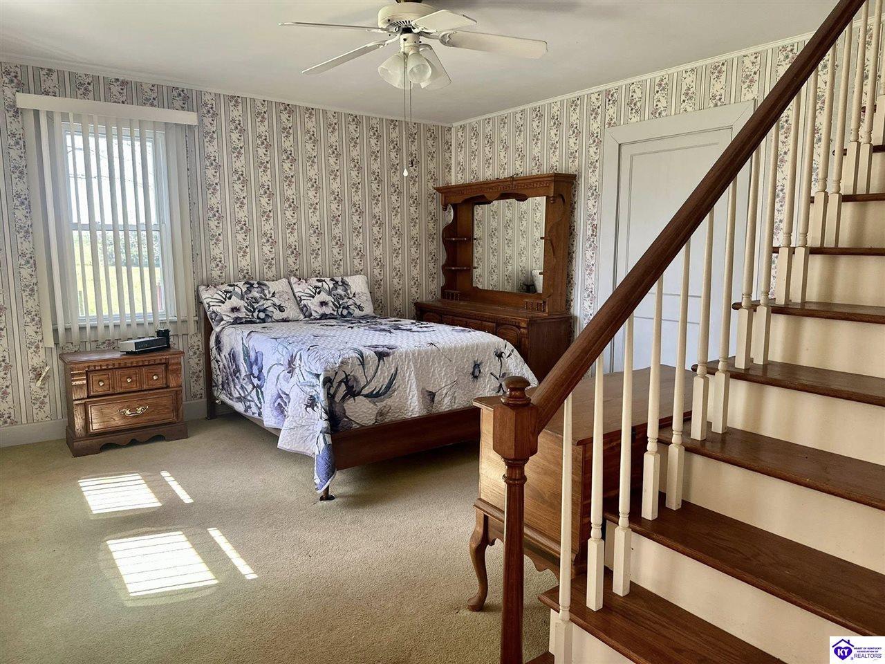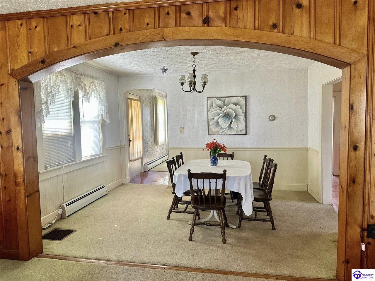 Realtor's notes: Experience timeless character and country charm in this inviting 3–4 bedroom home, conveniently close to town! The main level features a flexible bonus room currently used as a bedroom, a full bathroom, a dining room, and a utility room—ideal for everyday living. Upstairs, you’ll find three additional bedrooms and a second full bathroom. Original details such as arched doorways, glass doorknobs, vintage cabinetry, and hardwood floors hidden beneath some carpeting add warmth and personality, ready for your own personal touch. The walk-out basement offers plenty of extra space for projects or storage. Set on a 0.63-acre lot, the property also includes a detached two-car garage and a deck perfect for relaxing or entertaining. Washer, dryer, and kitchen appliances are included.