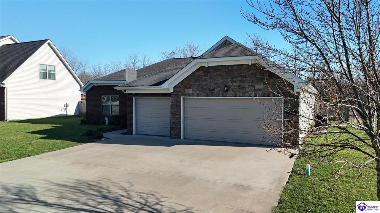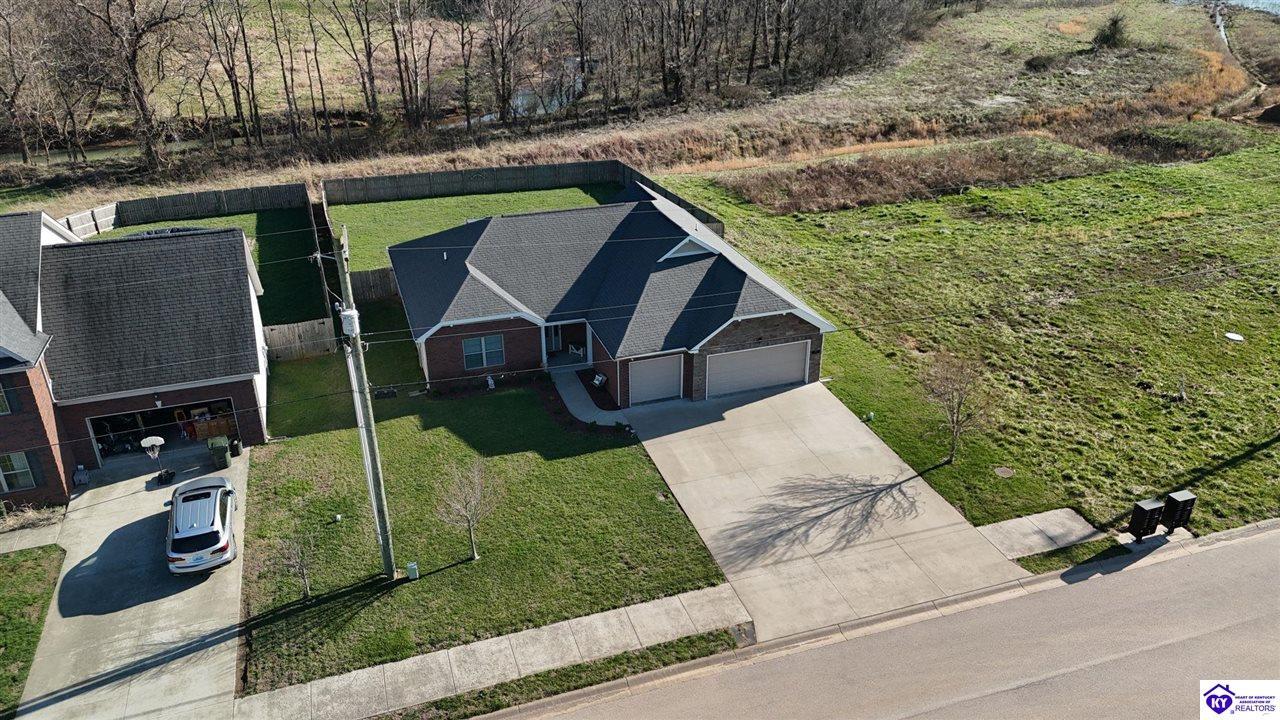 Realtor's notes: Well-maintained spacious 3-bedroom, 2-bath ranch offering 1,966 square feet of functional living space on a 0.39-acre lot in Vine Grove. Built in 2017, this home features a large foyer that welcomes you into an open floor plan with a large main living area, a designated dining room, and an eat-in kitchen, providing flexible options for everyday living. The split-bedroom layout offers added privacy, with the primary suite positioned separately from the additional bedrooms. Enjoy outdoor living in the fully fenced backyard. The attached 3-car garage provides ample space for vehicles, storage, or hobbies. Conveniently located near Fort Knox, this property offers both comfort and accessibility. Seller to provide a 2-10 resale home warranty plan with an accepted offer. Schedule your showing today.
