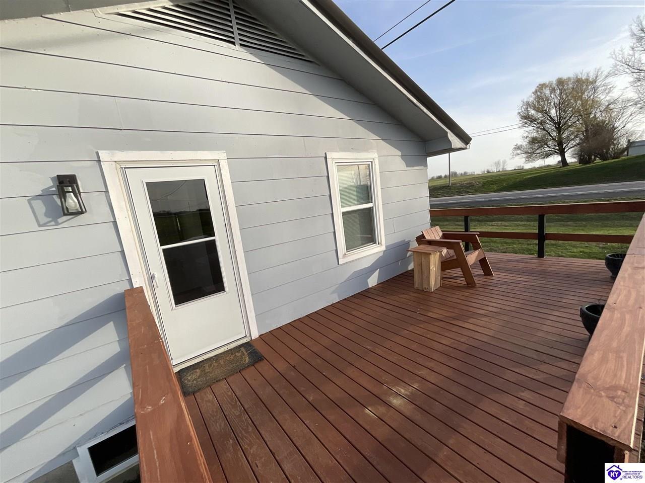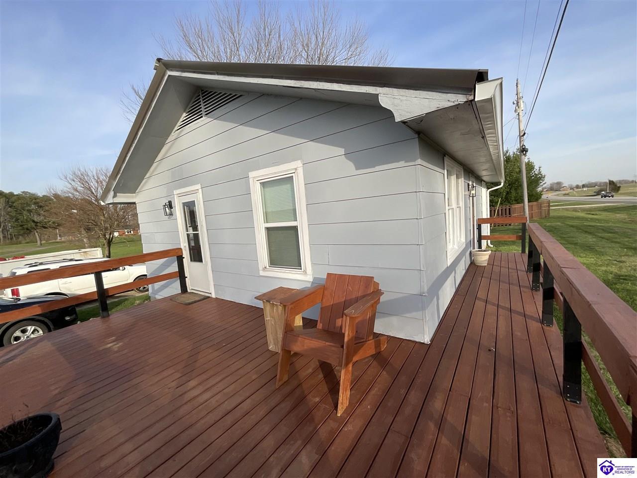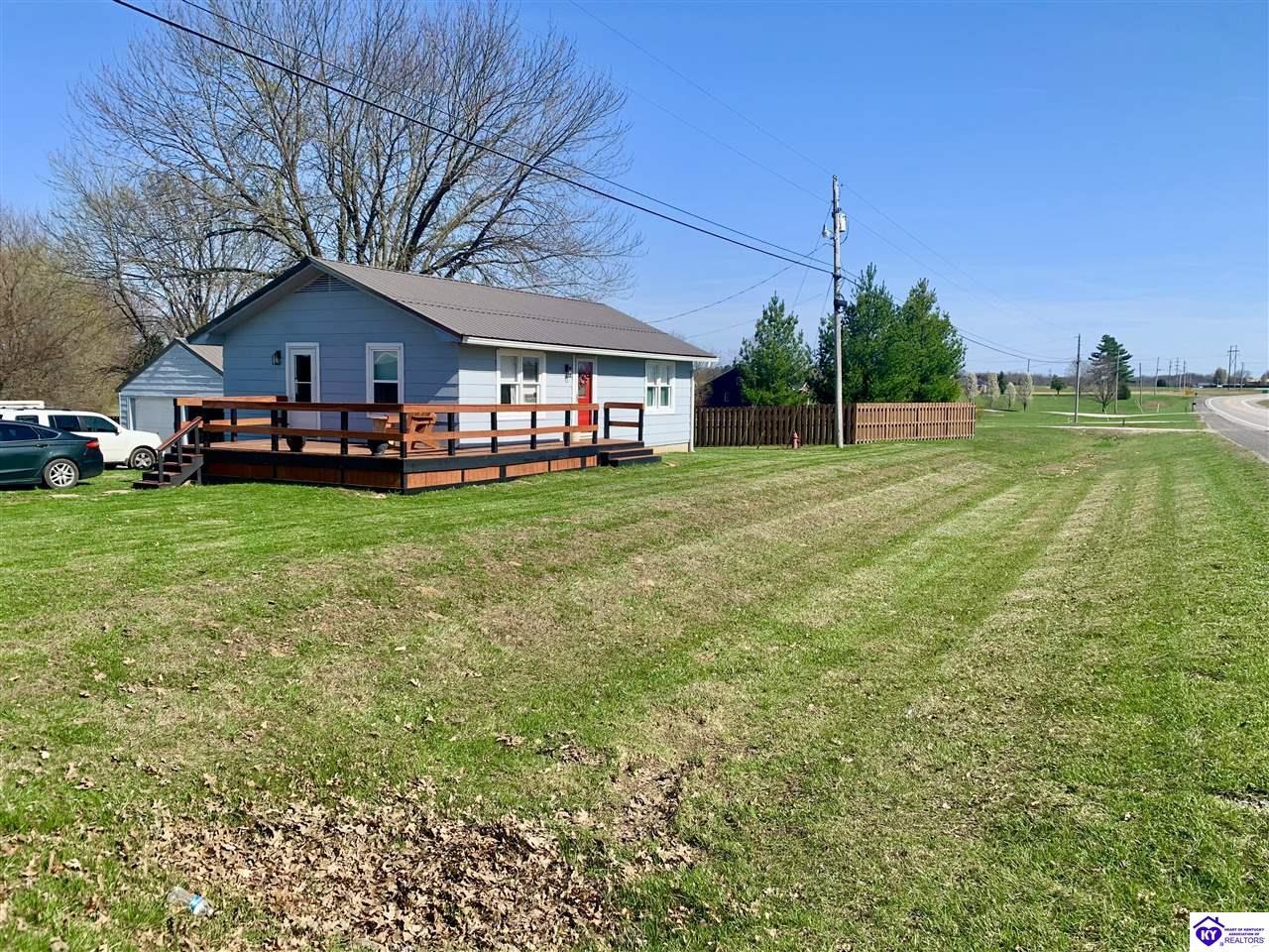 Realtor's notes: Looking for peaceful country living without sacrificing convenience? This charming ranch home at 2144 W Hwy 60 has it all! Perfect as a starter home or for downsizing, this 2-bedroom, 1-bath home offers 1,368 finished square feet plus the potential for a 3rd bedroom in the basement. Sitting on a .36-acre lot, you’ll love the scenic surroundings while still being just minutes from Hardinsburg’s stores and restaurants. Step outside and enjoy the brand-new wraparound porch/deck—perfect for morning coffee or evening relaxation. The backyard is made for gathering, complete with a fire pit and plenty of space to enjoy the outdoors. Need storage or a workshop? The detached 2-car garage with newly added electric has you covered! Plus, with abundant storage throughout the home, you’ll have room for everything. Located in a safe, well-established area with consistent nearby law enforcement presence, this home offers both comfort and peace of mind. Don’t miss your chance to enjoy country charm with everyday convenience!
