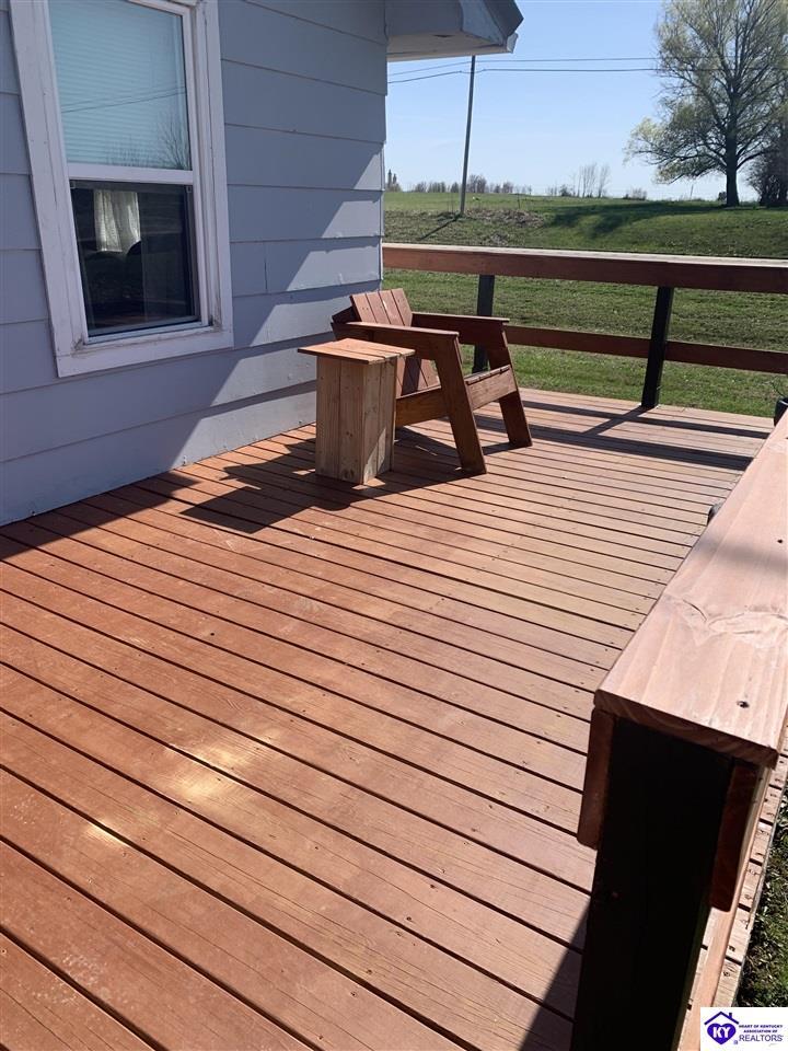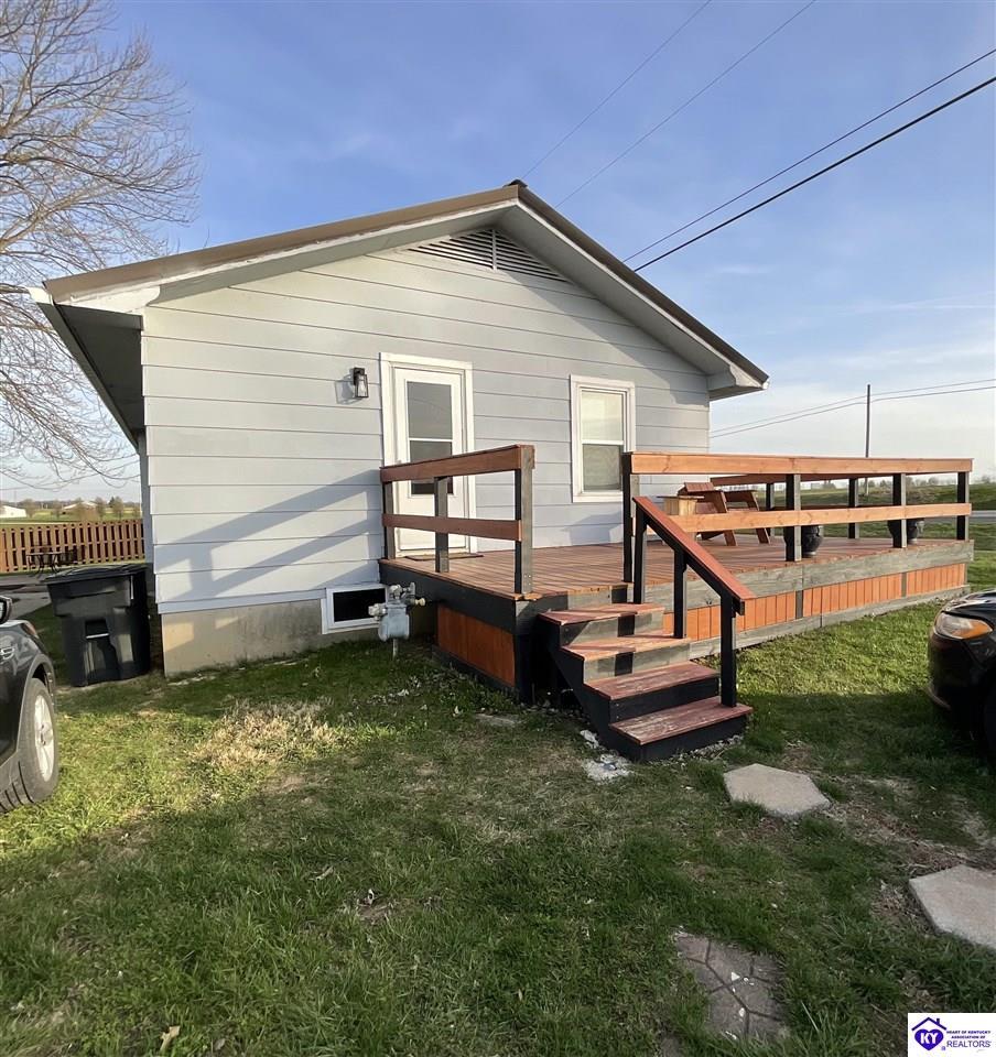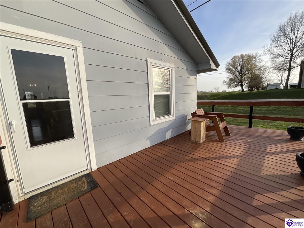 Realtor's notes: Looking for peaceful country living without sacrificing convenience? This charming ranch home at 2144 W Hwy 60 has it all! Perfect as a starter home or for downsizing, this 2-bedroom, 1-bath home offers 1,368 finished square feet plus the potential for a 3rd bedroom in the basement. Sitting on a .36-acre lot, you’ll love the scenic surroundings while still being just minutes from Hardinsburg’s stores and restaurants. Step outside and enjoy the brand-new wraparound porch/deck—perfect for morning coffee or evening relaxation. The backyard is made for gathering, complete with a fire pit and plenty of space to enjoy the outdoors. Need storage or a workshop? The detached 2-car garage with newly added electric has you covered! Plus, with abundant storage throughout the home, you’ll have room for everything. Located in a safe, well-established area with consistent nearby law enforcement presence, this home offers both comfort and peace of mind. Don’t miss your chance to enjoy country charm with everyday convenience!
