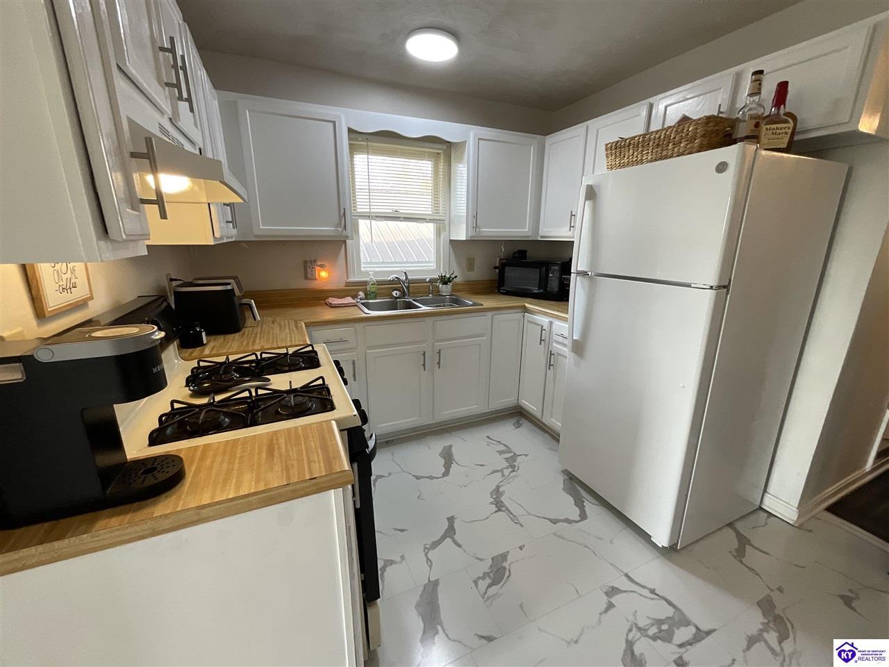 Kitchen Refrigerator, Self-Cleaning Oven, Smooth Top Range, Solid Surface Counter Top