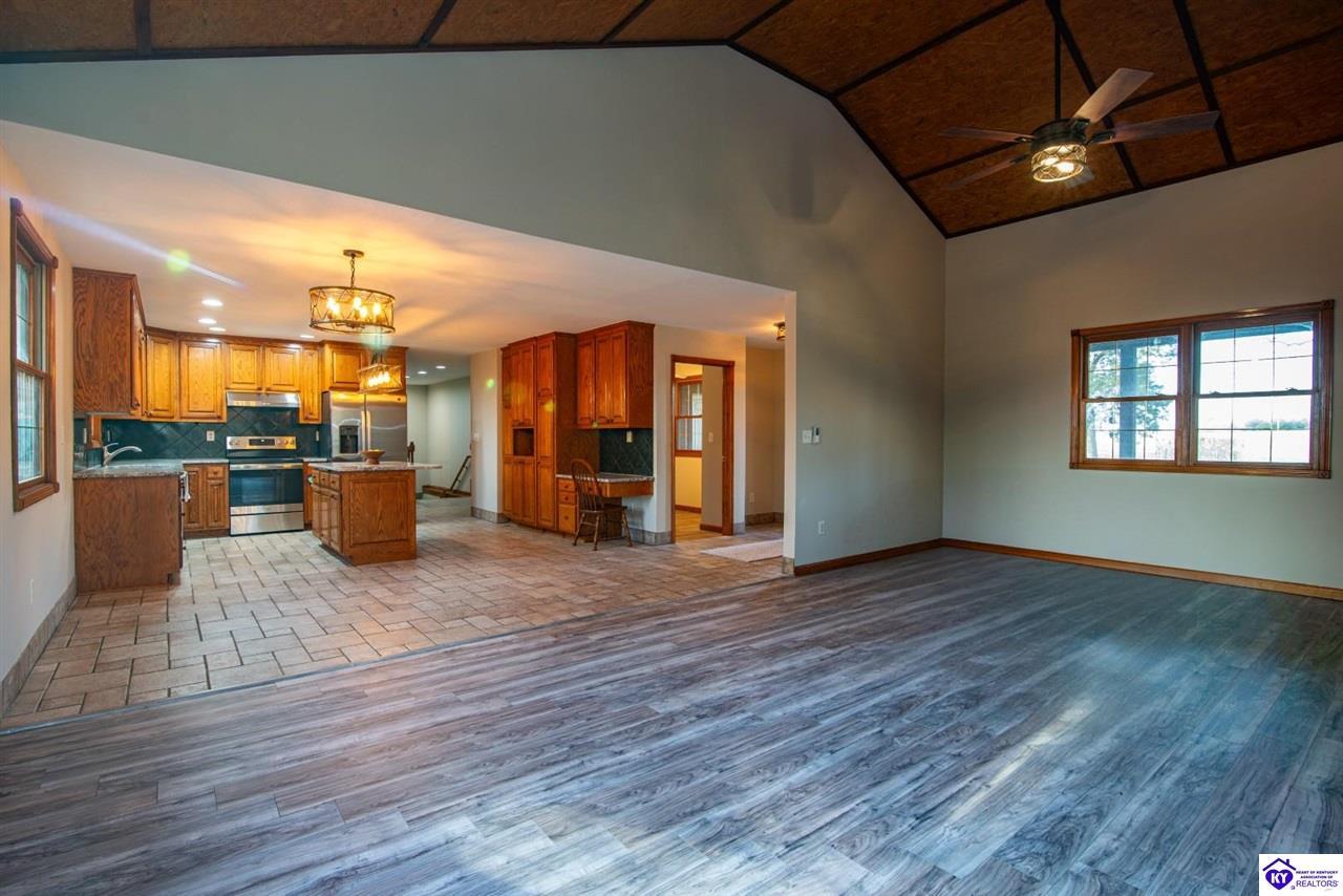 Realtor's notes: NEW PRICE !!! Don't miss out on this GREAT OPPORTUNITY!!!– 20 SCENIC ACRES with woods and open fields| Hunter’s Paradise & small Working Farm If you’ve been searching for the perfect blend of prime hunting land and open grounds for livestock, this is it. Situated on 20 beautiful acres in a private, serene setting, this property is ideal for outdoorsmen, small farmers, or anyone looking to live off the land. The acreage features mature woods, creating excellent habitat for wildlife. Deer and turkey are frequently seen on the property, making it a hunter’s dream. A stocked pond adds to the recreational appeal, while the hayfield, barn, and horse corral provide everything needed for a productive farm.. Spacious updated cedar ranch style home with almost 3000 sq ft finished with full finished walk-out basement with lots of windows for plenty of light. 4 bedrooms 2.5 baths plus office which could be used as 5th bedroom if needed. Open Concept living room with stone woodburning fireplace, large kitchen with lots of custom built in cabinets with new granite countertops, stainless steel sink, all new en-suite kitchen appliances, new faucets and plumbing. New toilets, new lighting and ceiling fans-new storm doors, new LVP flooring and carpet in bedrooms and stairway, fresh custom paint throughout. Huge family room in basement great space for pool table, game room etc. 3 car garage with new garage doors and opener. Fenced backyard, kid and pet friendly with large deck. IMMEDIATE POSSESSION